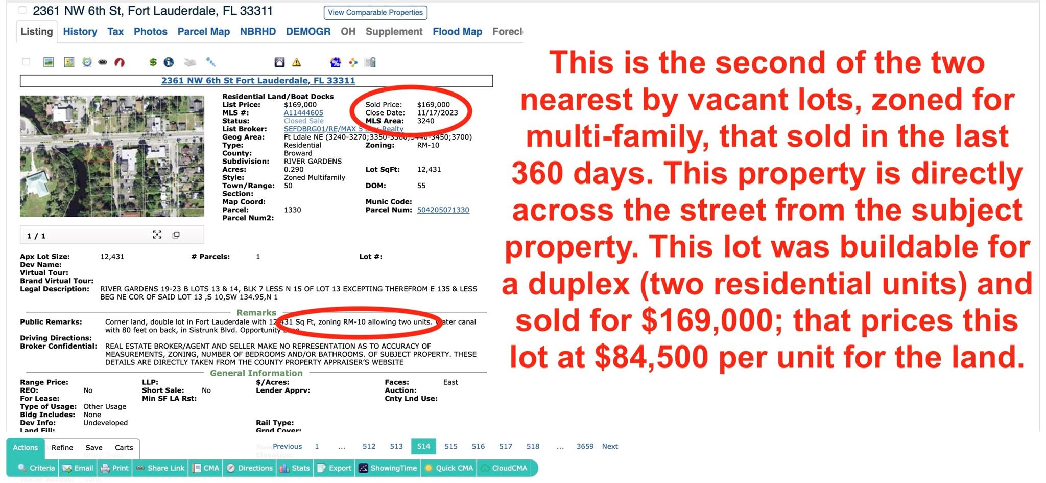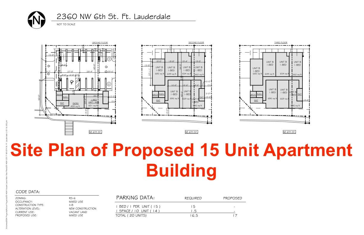 Rare opportunity on rapidly developing Sistrunk Blvd. Drive Sistrunk: see surge of construction. 1/4 acre corner lot. 15 units can be built by right: Land has been entitled. Site plan for 15 large 1 bed/1 bath units. 7-9 of the units can possibly be 1 bed w/dens or 2 bed. Permits have not been pulled. Use site plan, customize or design your own. Recently sold comps in area:$66.7k-$84.5k per unit for land. Active comps in area:$60k-$99k per unit for land. Subject property under $50k per unit; OVER $250k OFF market value. New 1 bed apts nearby rent:$1.6k-$2.3k. New 2 bed apts nearby rent:$2.4k-$3k. Construction cost $2.2M+/-. All in cost:$3M+/-. Value once built:$4M+/-. $1M+/- instant equity. Potential 10%+/- cap rate. Opportunity zone. Huge tax benefits. Seller will finance or joint venture