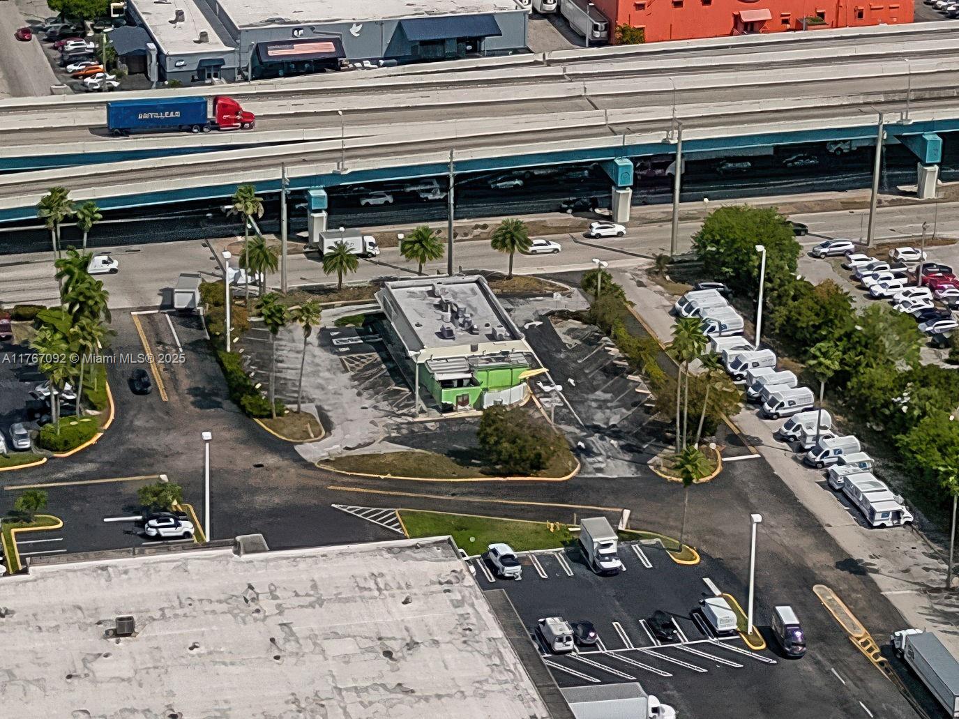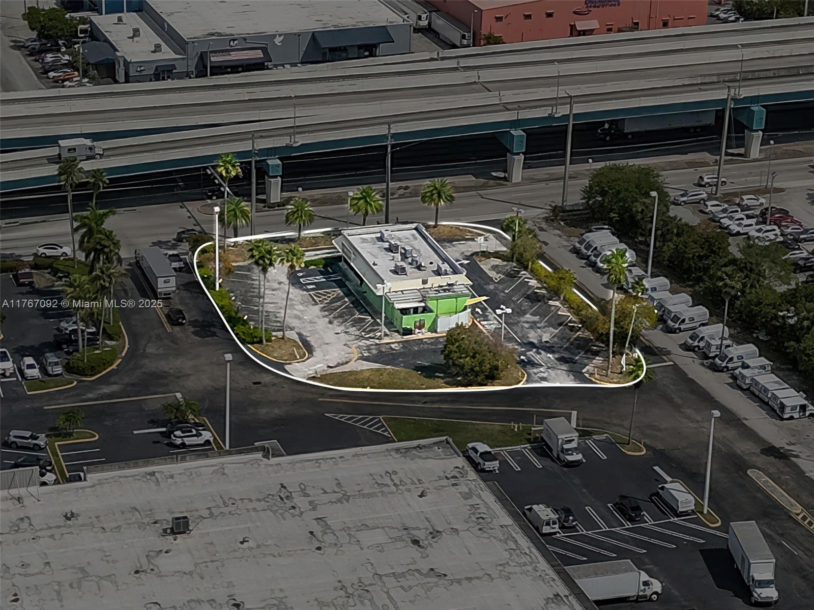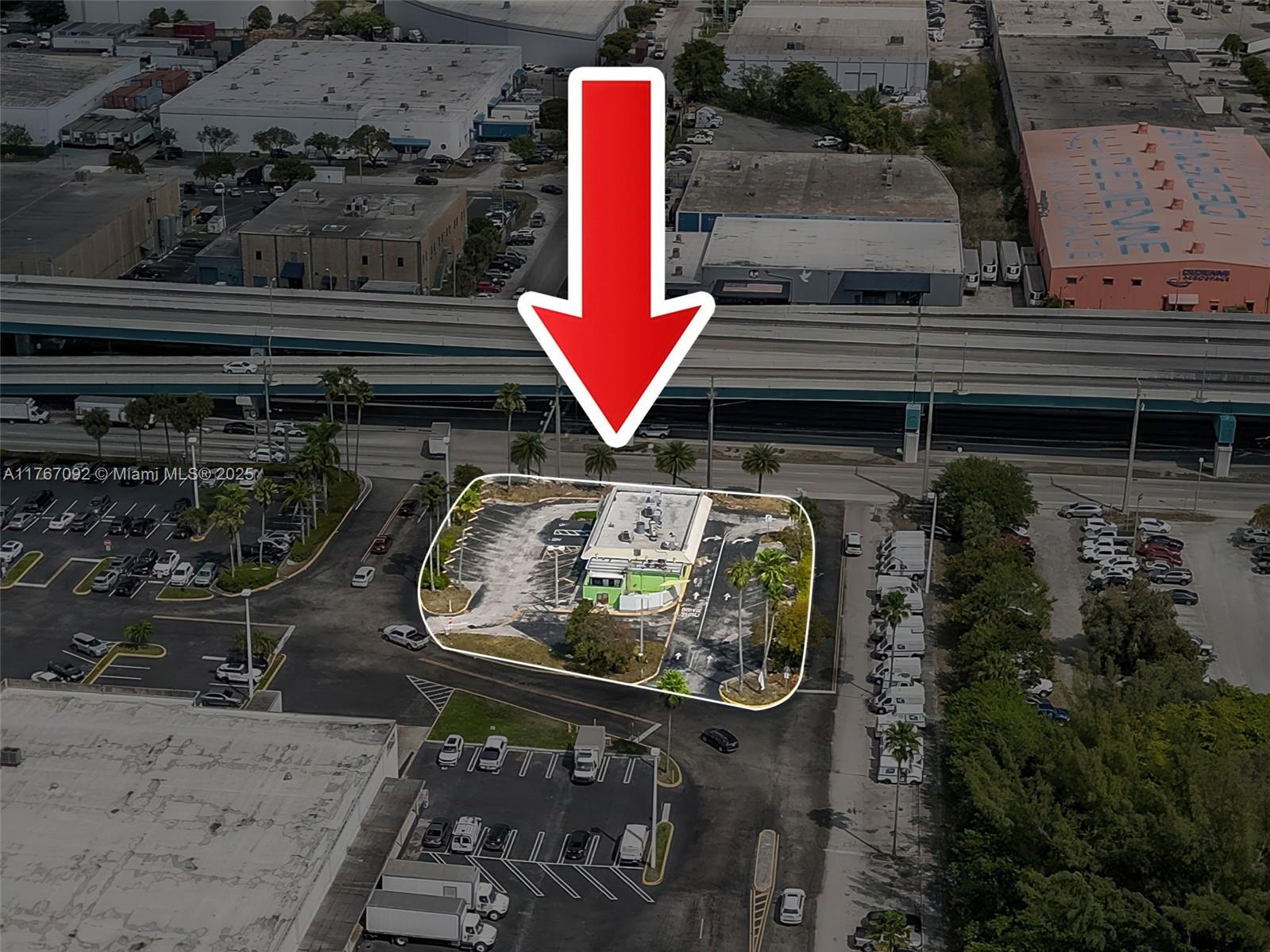 Prime roadside visibility on NW 25th Street adjacent to Palmetto Expressway. The 20,473 SF lot is situated at a high-traffic, signal-controlled intersection, provides convenient access for both east and westbound traffic. Its strategic position and flexible zoning allows for various uses, including medical offices, food services, storage, and providing an opportunity to maximize redevelopment potential with flexible height restrictions based on usage, parking ratios, and the height must not exceed the width of 25th St. There is a 3,508 SF building originally designed as a fast-food restaurant featuring a drive-thru is located in a federally designated Opportunity Zone. Located at the entrance to a 600,000 SF office and industrial business hub and adjacent to Jackson West Hospital