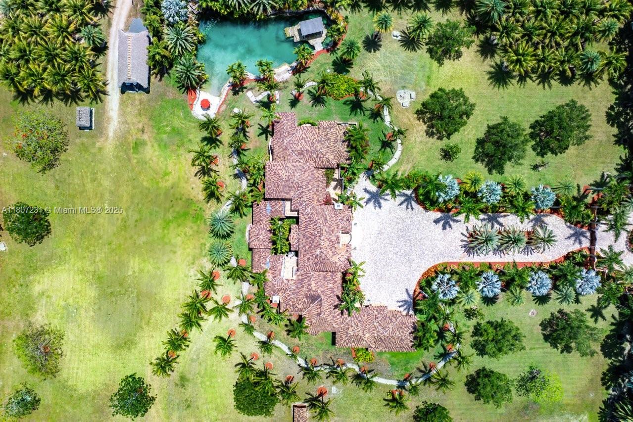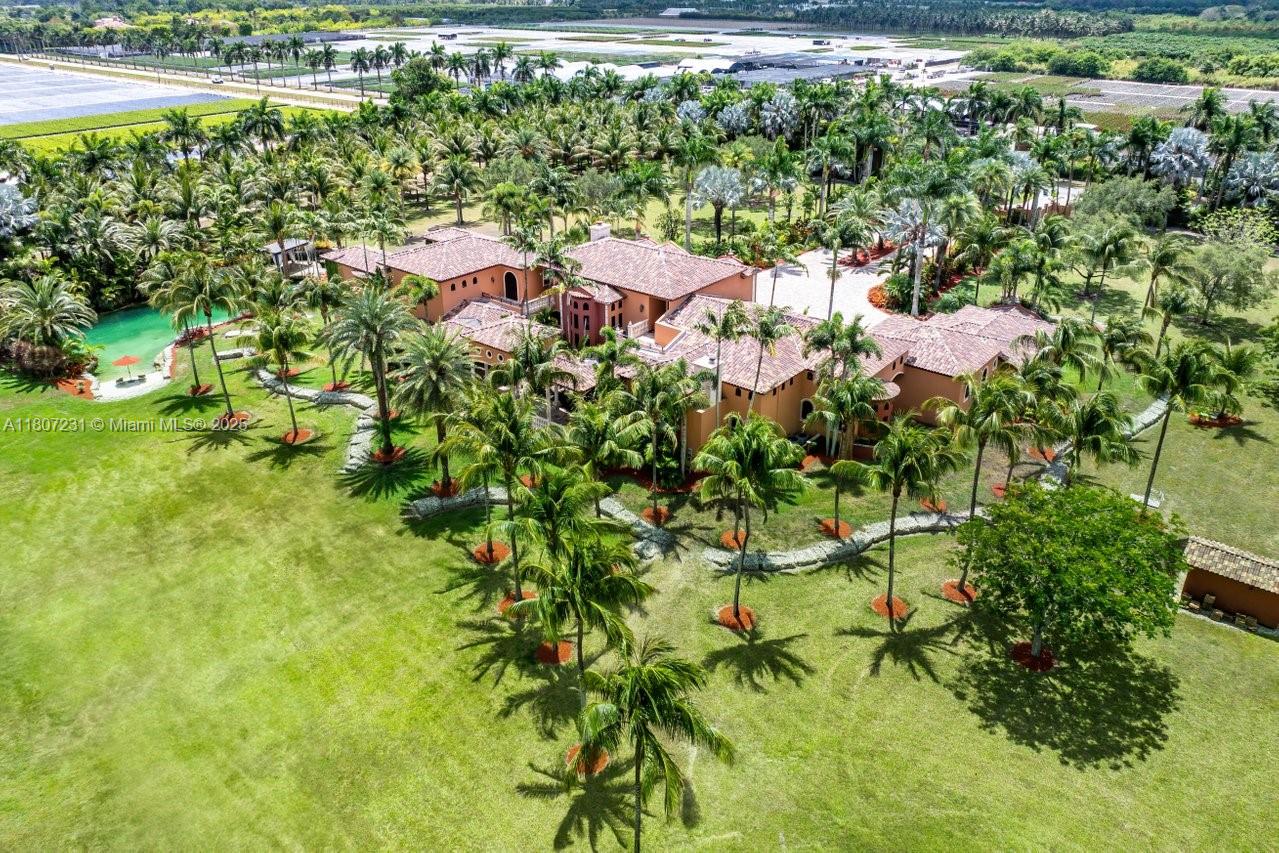 One-of-a-kind 6BD/5BA/2HB Mediterranean Redland Estate on 10 pristine acres on Redland Country Club golf course. Custom-built compound w/ 16,219 total sq ft of unparalleled luxury & functionality. Swimmable grotto w/ 10-foot cascading waterfalls, beach, & world renowned landscaping by Jungles B's Ben Bistrong. Entertainers kitchen w/ built-in hibachi grill, butler’s pantry & breakfast nook. Crestron smart home system, impact windows, a 5-car garage, & a temperature-controlled 800-bottle wine room. In-laws/guest suite, summer kitchen, large gym, media room w/ full bar, endless storage: supply room, tackle room, & walk-in closets throughout. Ag tax benefits w/ palm tree farm. Near Redland’s best: wineries, orchid farms, fruit stands, & private airport. Short drive to Keys & MIA Airport.