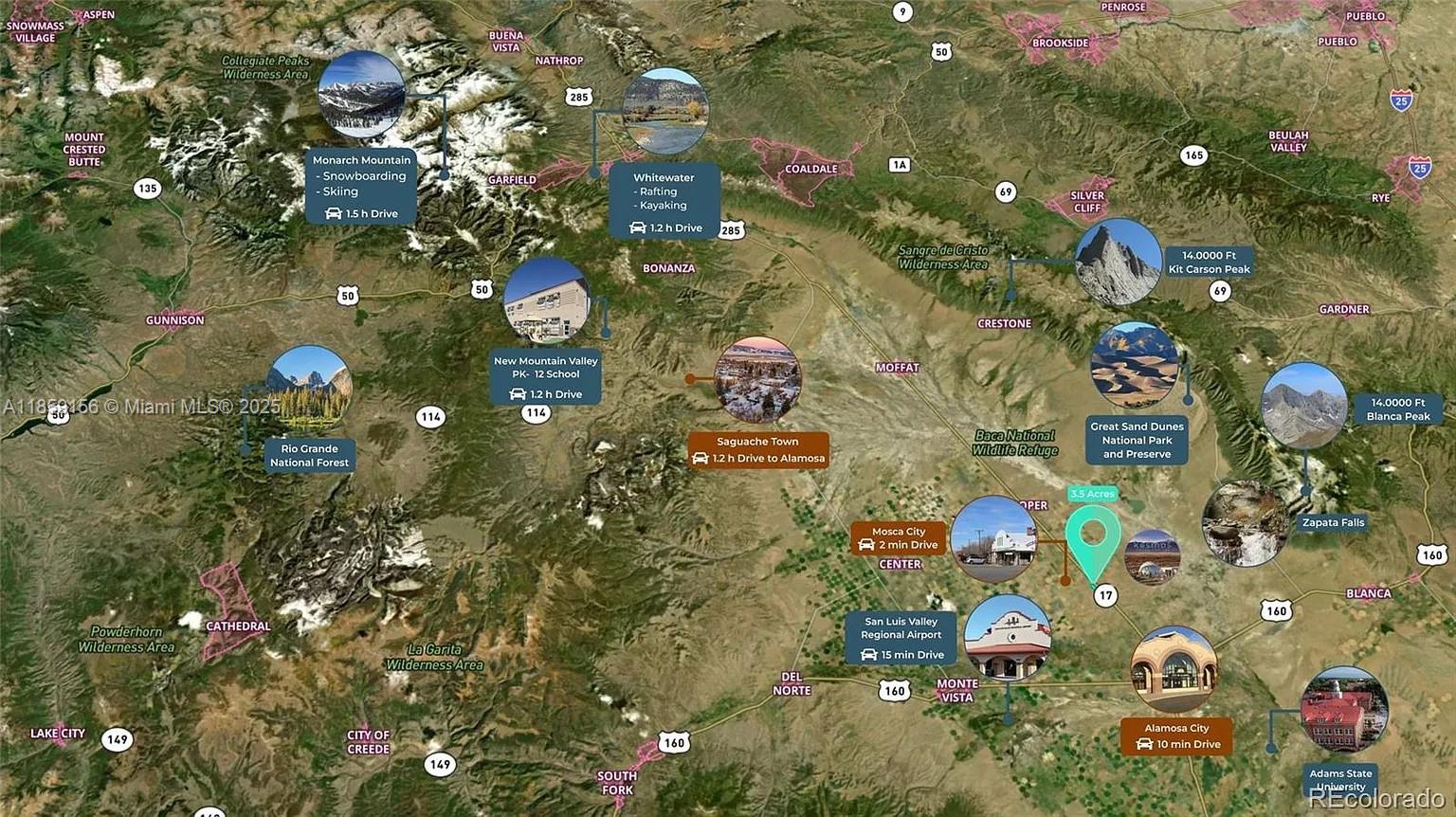 PROPERTY NEAR LAST ELECTRICITY POLE, WELL, AND COUNTY-MAINTAINED ROAD ACCESS (LANE 2 N) ON 35.01 ACRES – 10 MIN FROM ALAMOSA, 2 MIN TO MOSCA! Includes 25 GPM well permit, driveway with address, full survey (6 monuments), and electricity scheduled Q3 2025. No HOA, easy permits. Well serves 3 homes + 1 acre irrigation – ideal for horses, cattle, or gardens. Water augmentation available. Flat, build-ready land for stick-built, modular, or sustainable homes like Hempcrete. Naturalia Construction can install septic (~$20K/4BR) and manage your build. Location perks: gas, groceries, USPS in Mosca; airport, Walmart, hospital, and university in Alamosa. Near Great Sand Dunes, hot springs, skiing, rafting, and new Stargazing Resort. Stunning 360° views and prime development potential!