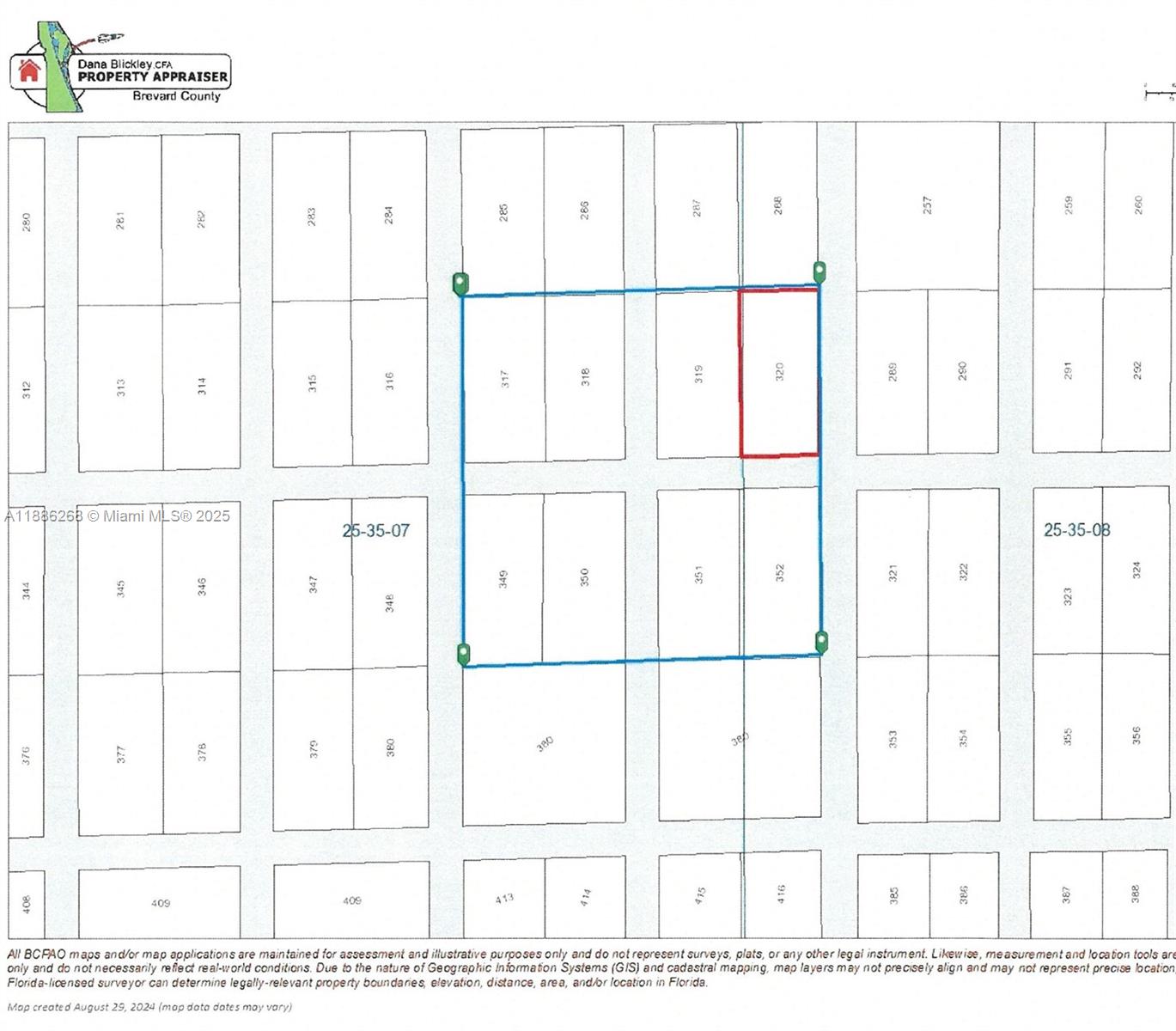 Investment Opportunity – 8 Residential Parcels in Brevard County! Looking for a prime piece of Florida land? This package includes 8 adjoining parcels in Brevard County, zoned GU (General Use) and designated 0010 – Vacant Residential Land (Single Family, Platted). Each parcel is approximately 1.25 acres (±54,450 sq ft), offering plenty of space and future potential. With no current road access, this land presents a rare opportunity for savvy investors or future development as the area grows. All eight parcels are being sold together. Brevard County Account Numbers: 2500349, 2500350, 2500351, 2500352, 2500365, 2500366, 2500367, 2500368 Seize the chance to secure your piece of Brevard County today!