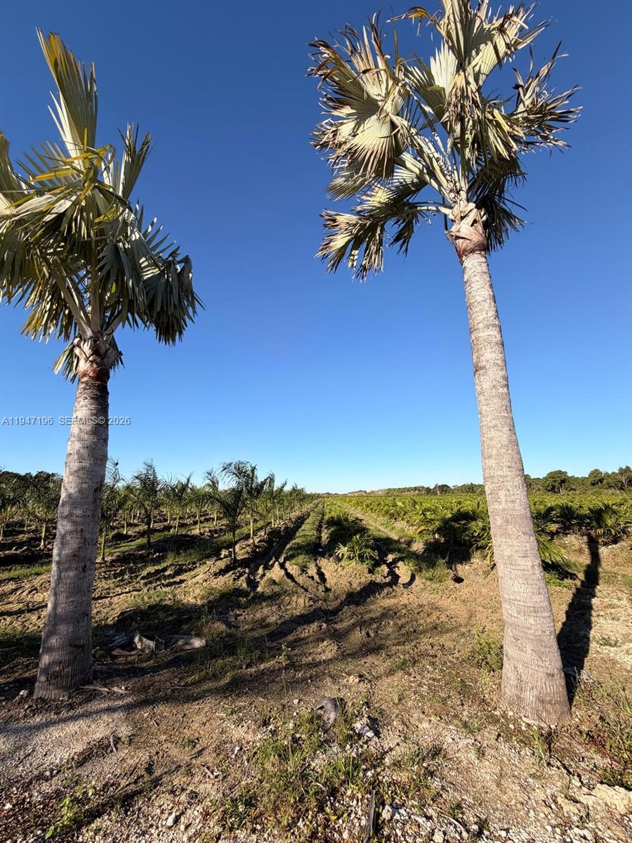 Exceptional opportunity to own nearly 20 acres of productive agricultural land, ideal for farming, nursery operations, or long-term investment. The property features high-quality clay soil that naturally retains moisture, significantly reducing the need for irrigation. The land is planted with a substantial inventory of established and mature palm trees, including approximately 3,000 Silvestre palms, 1,500 Royal palms, and 4,000 Triple Christmas palms, offering immediate agricultural value and strong income potential. Included in the sale are a tractor and two 500-gallon agricultural sprayers, both equipped with new motors, providing ready-to-use equipment for ongoing operations. The property is fully equipped with electricity and water already connected, allowing for seamless continuation or expansion of agricultural use. Seller financing available, offering flexible options for qualified buyers. A rare opportunity to acquire a well-prepared, income-producing agricultural property with essential infrastructure already in place.