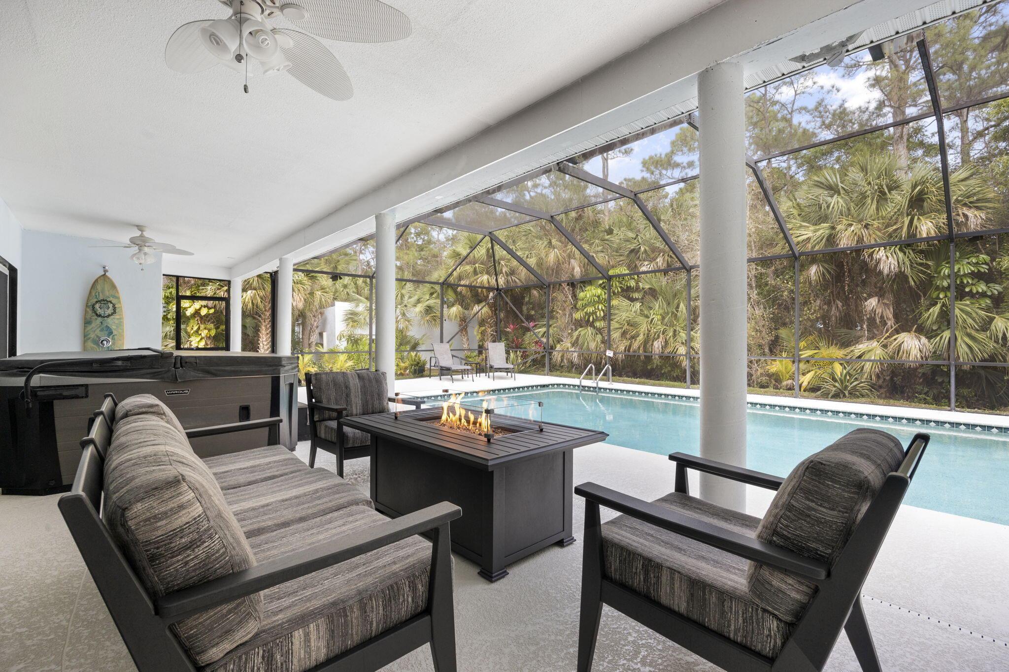 Home available for short term rentals- please contact agent. Beautiful Home In Jupiter Farms on 330' x 330'' private land. Sprawling ranch with Oversizedmaster suite and two additional family bedrooms. gorgeous Kitchen with center island, pendant lights granite counter. Stone fireplace in dining area and living room. Covered Lanai with patio and hot tub leads to screened in pool area. Extra storage in the detached 2 cargarage. This home is available September 1,2023. Furnished as photos show or unfurnished. Application fee is $75. per person