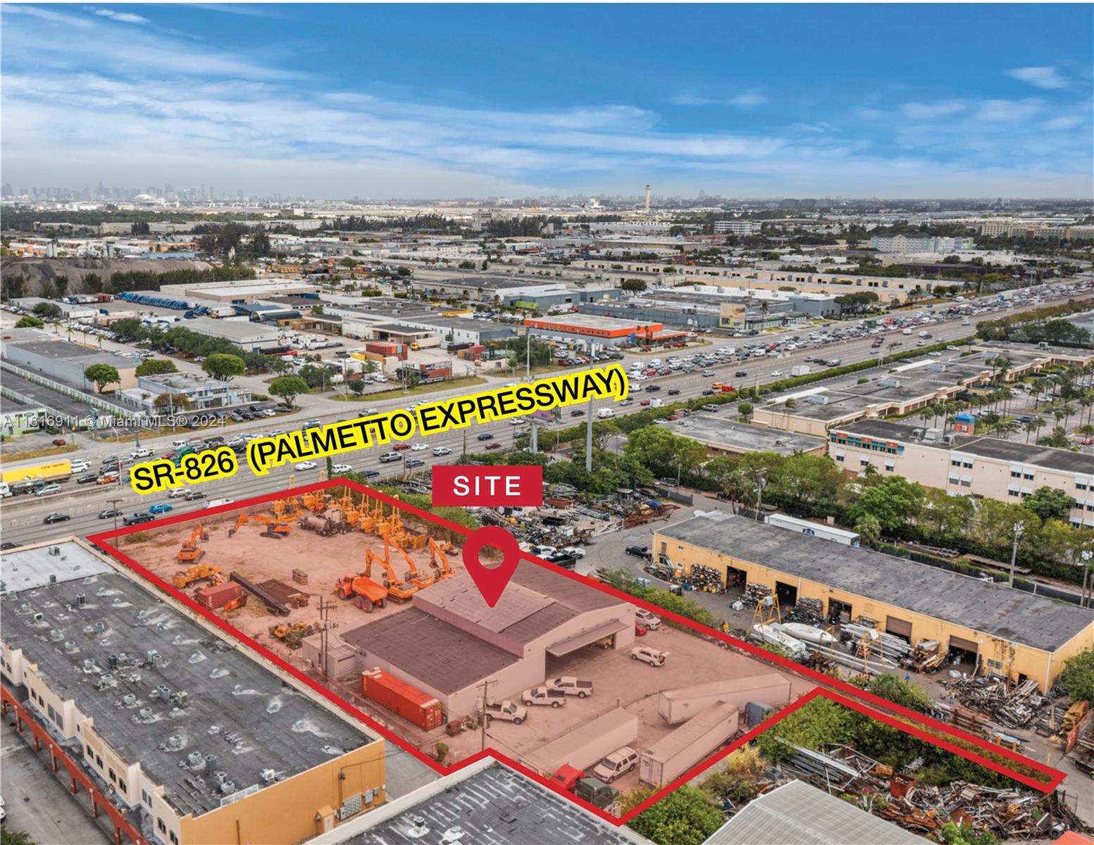 Property Features • 8,507-SF industrial building currently used as heavy equipment sales and storage facility, will be delivered vacant • Lot size: 60,984 SF (1.4 AC) • Zoned light manufacturing • Direct frontage to SR-826 (Palmetto Expressway) • Easement provides access to SW 79th Avenue via covenant running with the land • Asking price: $9,000,000 for sale or $40,000 per month for lease Location Features Doral, FL is one of the most sought after industrial markets in the country. According to CoStar, Q1 2024 vacancy rate was at a decade low 2.4%. The property’s positioning on the SR-826 (Palmetto Expressway) provides ample signage opportunity with ease of access to both north south and east west highway systems.