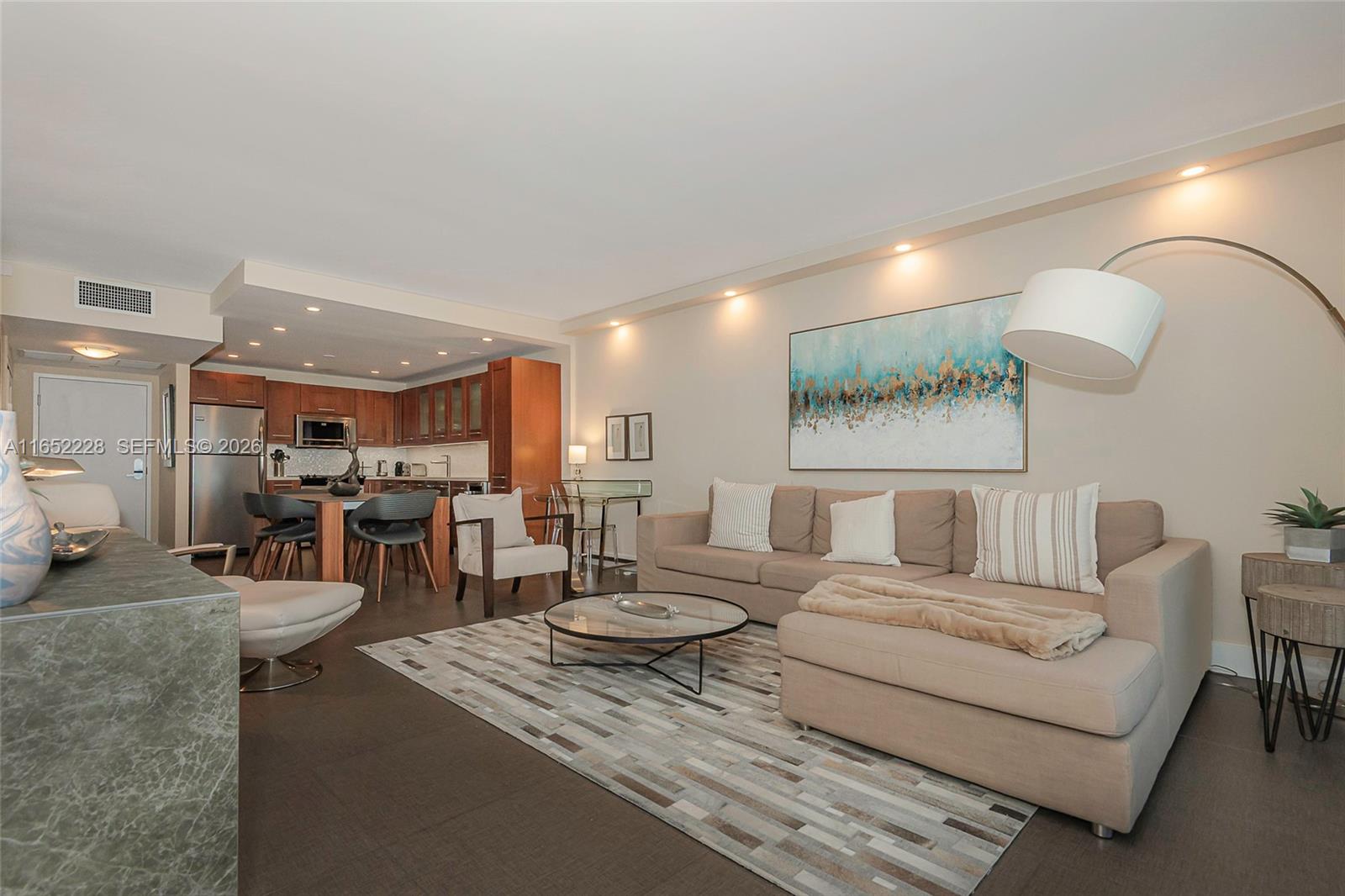 Renovated 1 Bedroom + 1 Den/Bedroom, 1.5 bath condo with balcony boasting sweeping oceanfront views. High quality finishes. Fully furnished. Washer/dryer in unit. One of the best lines in the building, this spacious condo boasts a sunny northeastern exposure. Electricity, cable, WiFi, water and valet with 1 parking spot included. Laundry room on every floor. Situated inside the same building as the luxurious 1 Hotel, Roney Palace residents enjoy the best of South Beach with access to 3 oceanfront swimming pools, a hot tub and beach service. Full-time security, onsite management office.Pricing is dynamic and may vary according to seasonal demand, lease commencement date, and lease term. Please contact listing agent for current availability and pricing