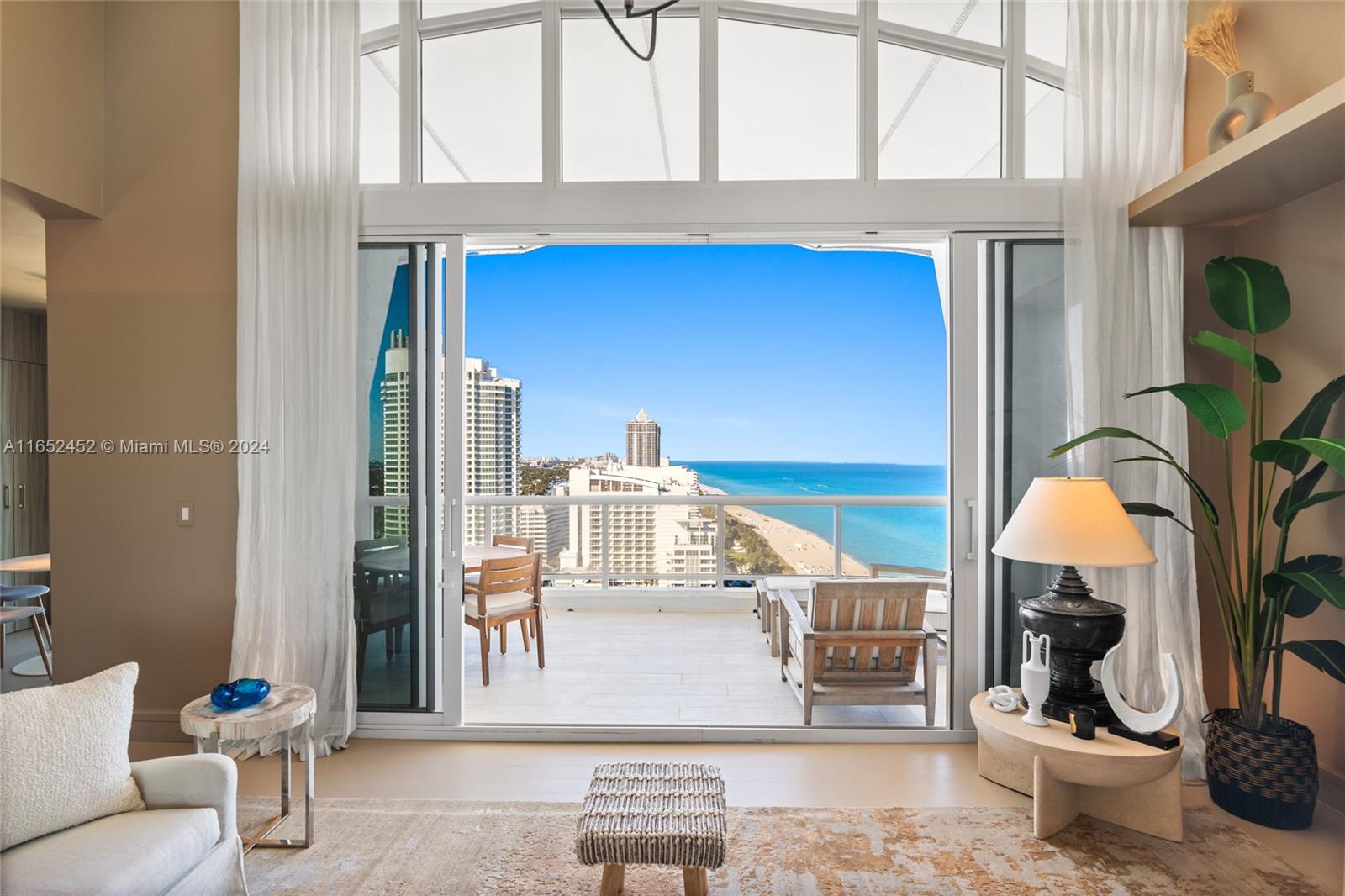 Experience luxurious living in this newly remodeled penthouse at La Tour condominium. Revel in breathtaking, unobstructed views of the ocean, city, and bay from this professionally designed 2/2 residence featuring 14' ceilings, an open eat-in kitchen, marble bathrooms, and 2 spacious balconies. Furnished or unfurnished option is available. La Tour a boutique building offers top-tier amenities: oceanfront pool, hot tub, sauna, gym, meeting room/party room, 24-hour concierge, on-site management, and more. Exclusive living with just 3 apartments per floor and only 63 units in the building. Perfectly situated close to hotels, dining, and shopping, this property is ideal for anyone looking for coastal charm and easy access to amenities. Click the virtual tour link to see a video.