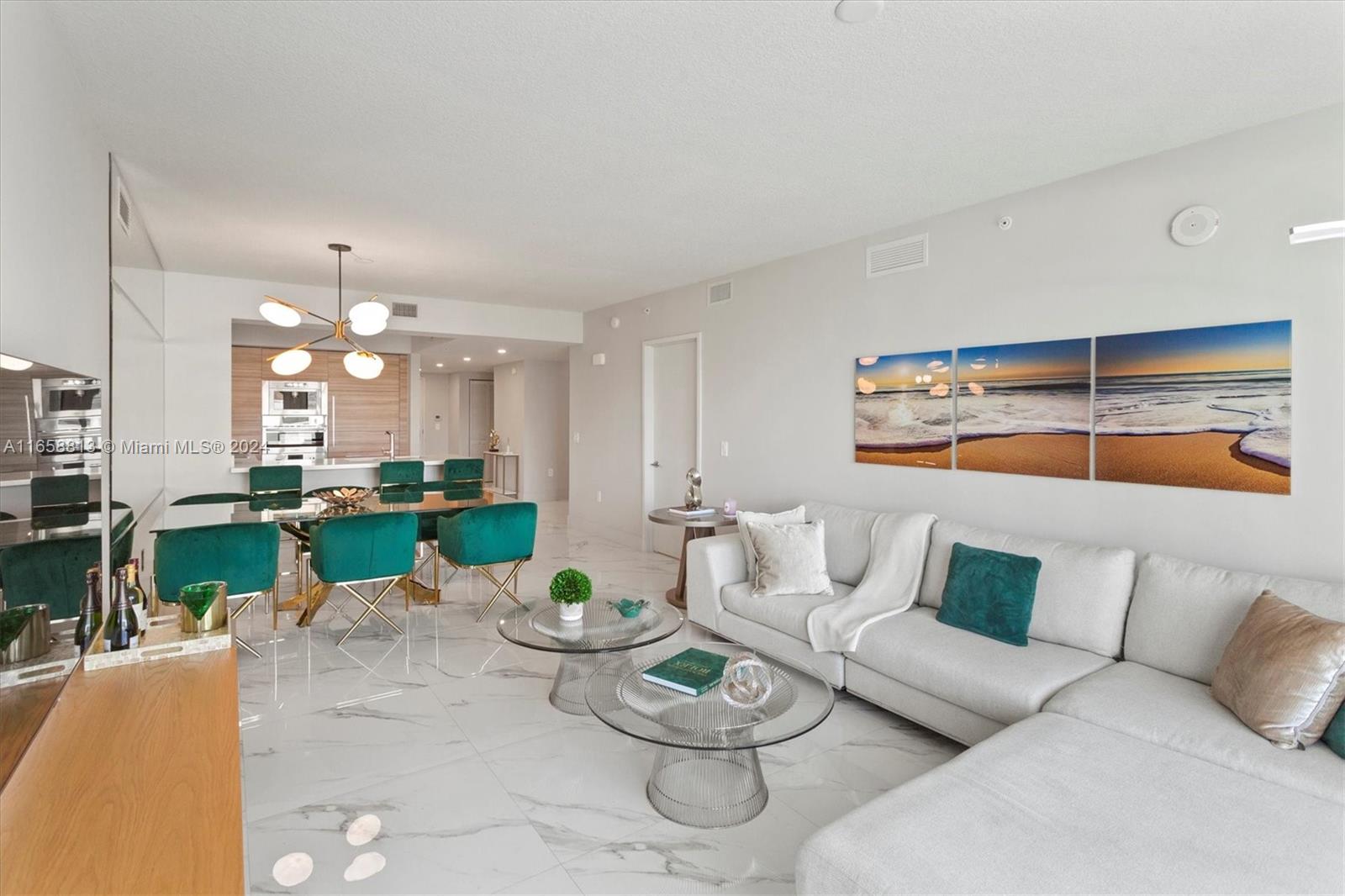 Welcome to phenomenal living in this 2 bedroom+Den/3 full bathroom unit at Parque Towers! Step inside and be greeted by a spacious kitchen with sleek countertops and plenty of storage space. The open concept living area is perfect for entertaining. Primary bedroom is very spacious and complete with not one, but two closets! The en-suite bathroom is a true oasis, with a luxurious separate shower and tub. The second bedroom is perfect for guests complete with its own private bathroom. Unit has been tastefully furnished, creating an inviting atmosphere. From the balcony enjoy views of the Sunny Isles Skyline. Building boasts great amenities including pools, gym, theatre, guest suites, and more!