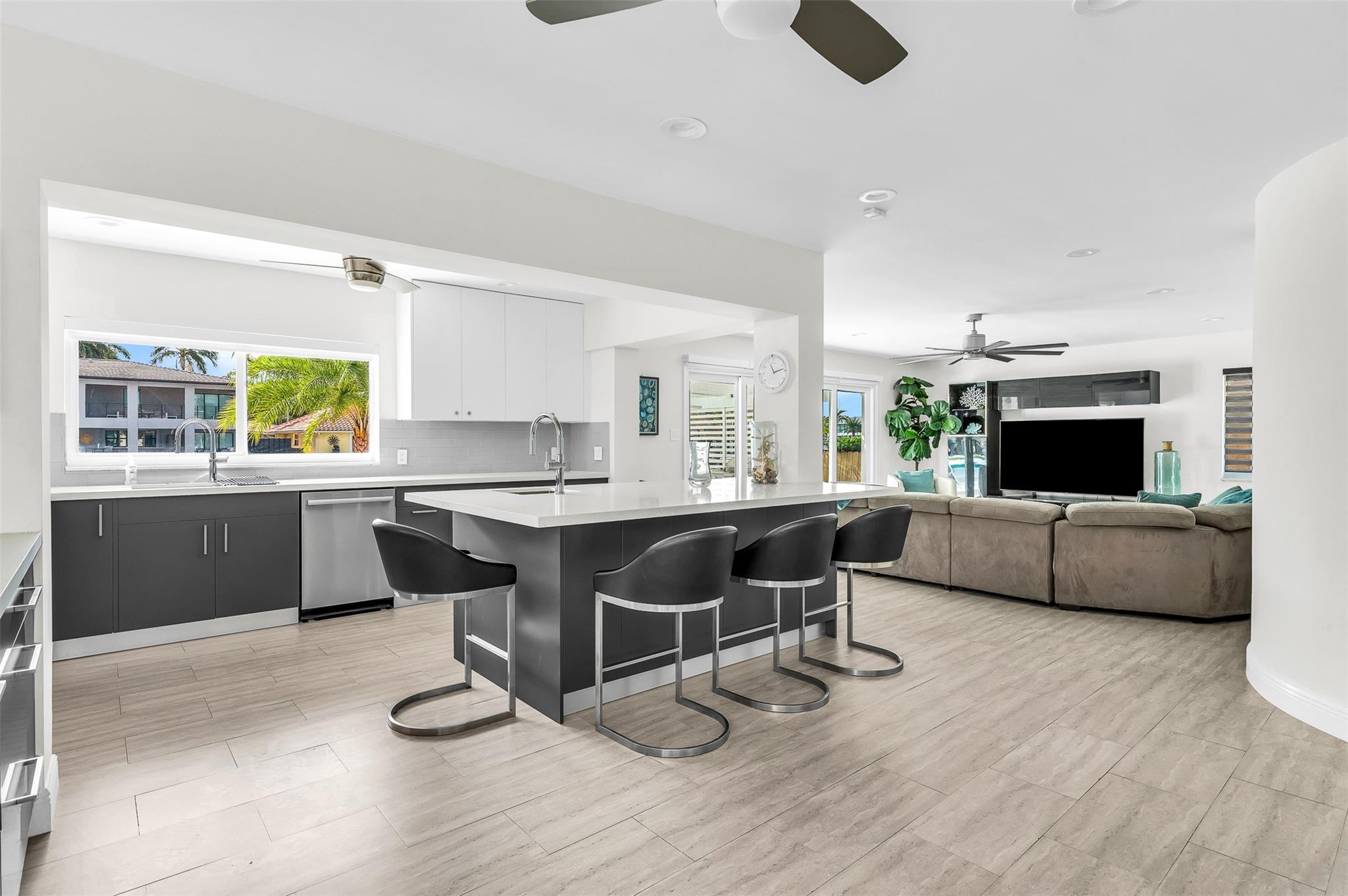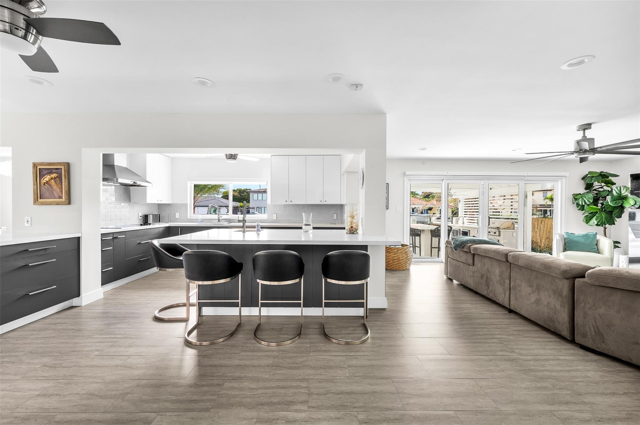 Fully furnished waterfront house with a heated pool. This 2 level house features an en-suite bedroom on the first level and 4 bedrooms on the second floor. Boasts with a fully equipped kitchen, laundry room, designated office space, pool table ans spacious living area, TVs in every bedroom, etc. House boasts with stunning water views, heated pool, brand new pool deck, summer kitchen, boat dock and outside entertaining area, 80 ft waterfront on a deep water canal and no fixed bridges. Tenants are welcome to bring boats. Nestled in a quiet family friendly neighborhood, minutes from the beach, restaurants and shopping. In high rated school district . Rental rates vary from $20,000-25,000/month , depending on the season. available May-mid January