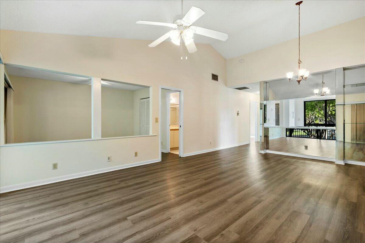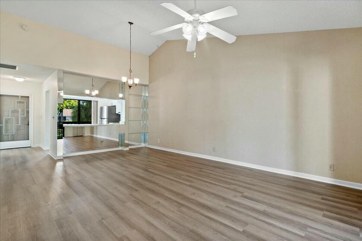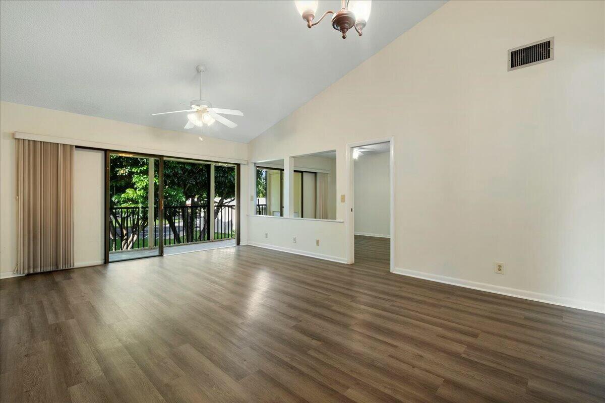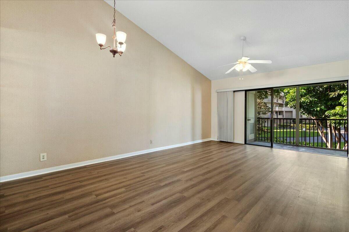 This charming unfurnished, 2 bedroom 2 bath condo is located in the desirable and sought after ALL AGE community of Domaine Delray in East Delray Beach, in walking distance to the beach, restaurants, shops and grocery stores and less than a 5 minute drive to Atlantic Avenue. The community offers a swimming pool, spa, barbecue area with a grill, and plenty of guest parking. Each bedroom has its own bathroom, providing added comfort and functionality. The second bedroom/den can be used as a home office. The kitchen was recently updated with new appliances and refaced cabinets and offers plenty of space for cooking and entertaining. The condo boasts a vaulted ceiling in the open living area. Updated vinyl flooring throughout the condo gives it a fresh and clean look. The screened patio