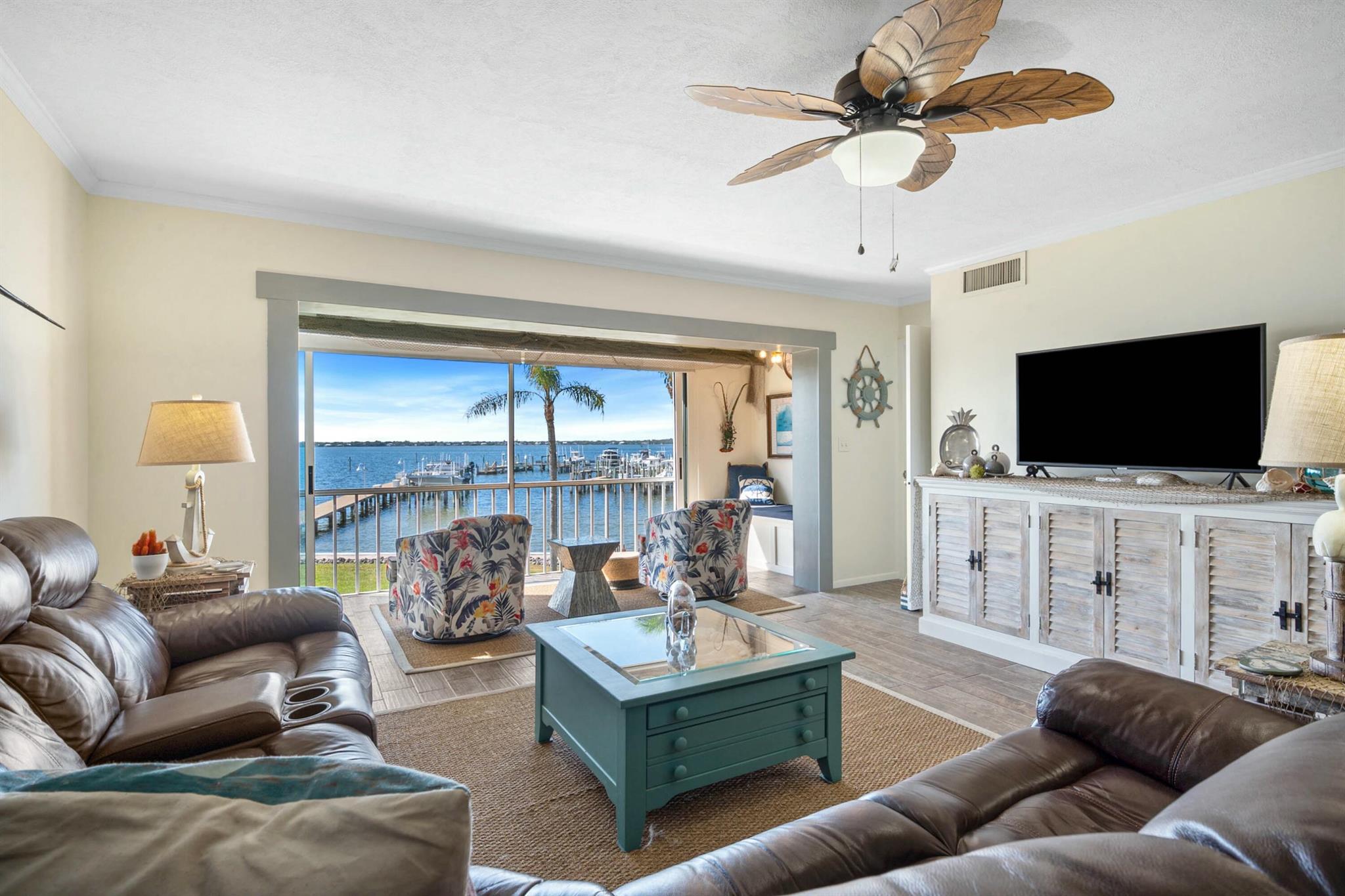 Get out of the snow and come tour the Treasure Coast as you stay in this beautiful riverfront 2 BR/2 BA condo for seasonal rent Jan-March 2025( April negotiable); updated throughout; Master Bedroom with walk in closet and open-air balcony off master for viewing river; This condo is located between the Indian River and the Atlantic Ocean; all utilities included in price of this unit; numerous restaurants located in close proximity with Publix 1/2 mile away; COME AND ENJOY BEAUTIFUL HUTCHINSON ISLAND SOUTH!!! YOU WILL HAVE BEACH ACCESS with clubhouse and heated pool on HUTCHINSON HOUSE EAST. Only one drawback as WEST POOL IS UNDER CONSTRUCTION. Price Adjustment included for this reason. COME ENJOY!!