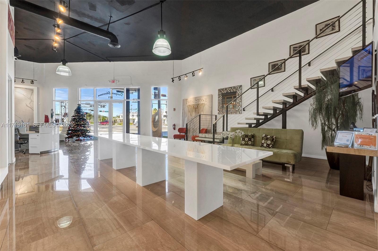 This property offers a unique combination of offices, workstations, showroom, and warehouse all within an 8,697 square foot lot. The building itself spans 10,287 square feet and features three bathrooms, two air conditioning units, a conference room, two workstations above the conference room, and one office downstairs. Upstairs, you will find 11 workstations and five private offices. Additionally, there is a bay door that measures 14 feet high by 13 feet wide. This versatile space is ideal for a variety of businesses looking for a professional and functional work environment.