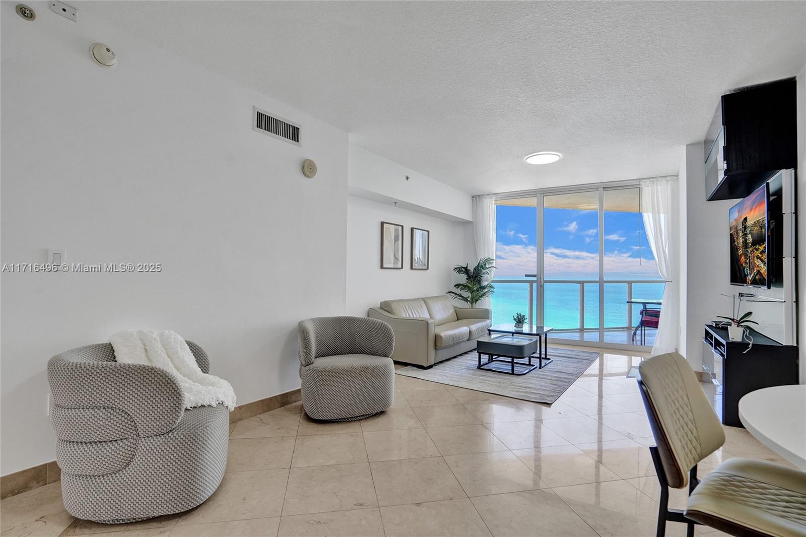 Available MAY 3,2026.Fully furnished and equipped spacious unit offers a long-term rental option with high floor ocean & city views that inspire. Inside, you'll find quality marble throughout, custom doors & fixtures, powder room & breakfast nook. Residents here love the fact of having the ocean below, but also the conveniences of this location. The Pier and restaurant are an amazing place to entertain - parking (valet), pool, gym, billiards, meeting rooms and many new friends await here at La Perla Ocean Residences.. Minimum rent is 180 days. The ongoing constriction in the building is currently affecting the pricing. Call listing agent for detail information.