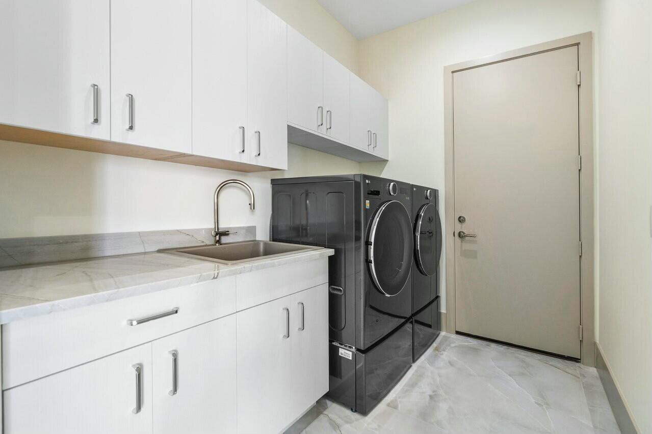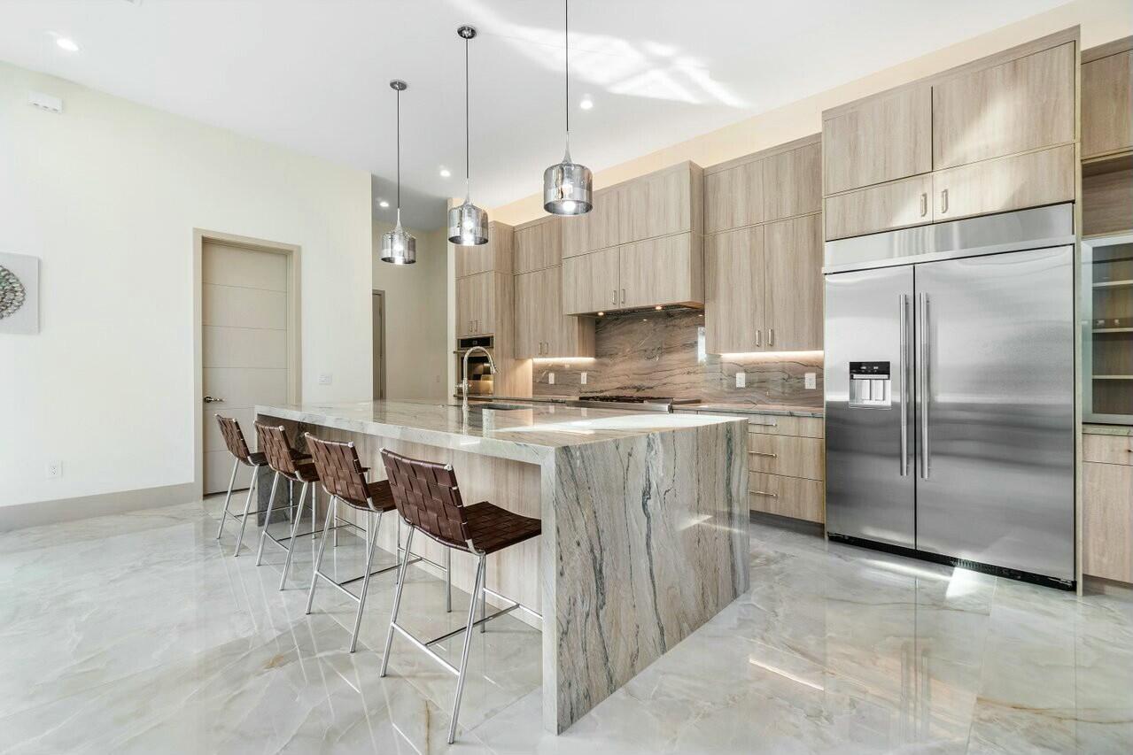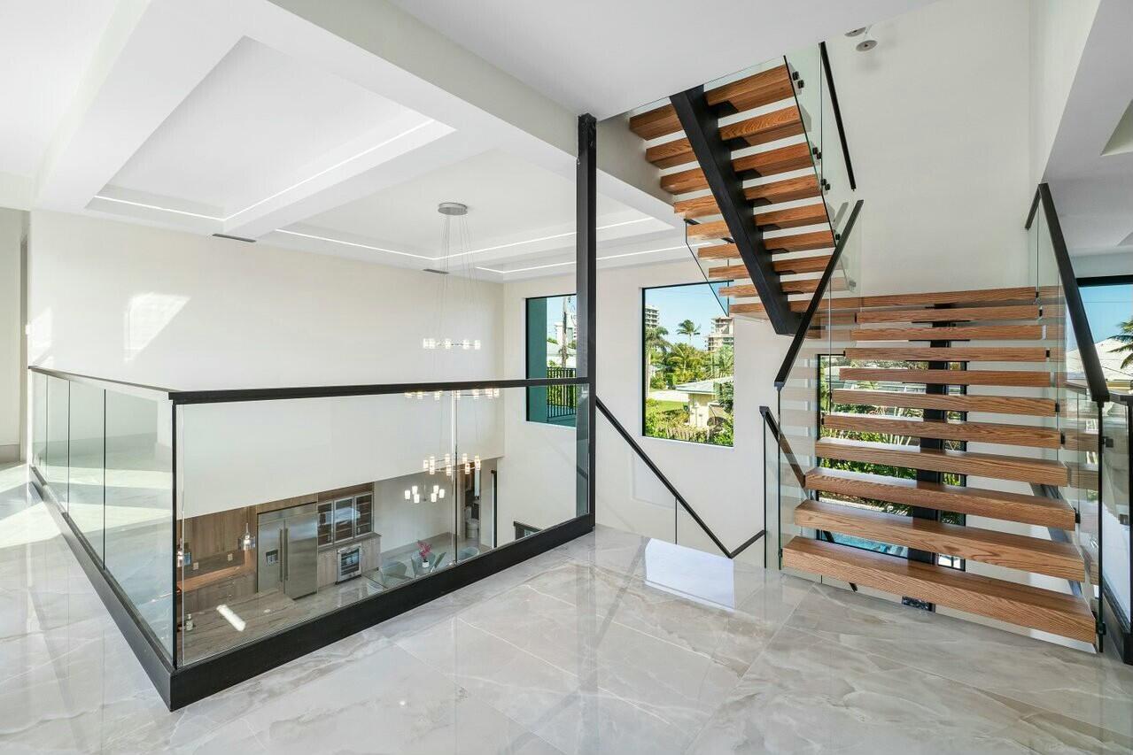 Your new lifestyle will exceed your expectations in this eloquently designed contemporary beach estate. Its offerings include; a grand gated entry with plenty of parking for friends and family, and 3 garage spaces with plenty of height to add lifts for more luxury car space. Upon entry of the oversized double custom doors you will be greeted with 25 foot ceilings boasting ample natural light, and highlighted by custom floating staircase and modern yet elegant fixtures. The north side of the estate features a meticulously designed custom kitchen with 12 foot ceilings, highest quality appliances and fixtures, thoughtfully designed to provide you with ease for entertainment and indoor outdoor Florida living. The south end of the main level includes an inviting in-law suite withoversized