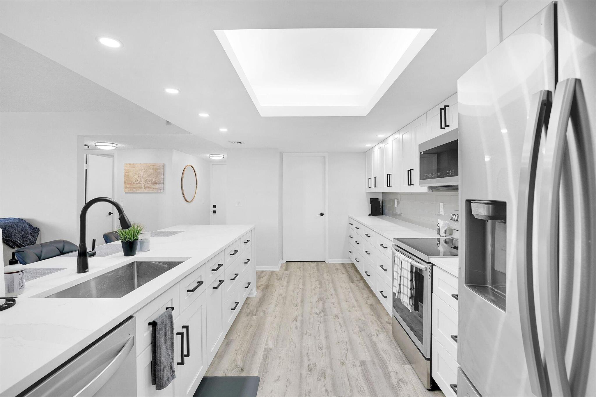 Completely renovated kitchen in this stunning 2/2 short-term rental at Delray Racquet Club. The open-concept kitchen flows seamlessly into the dining and living areas, making it perfect for both cooking and entertaining. All kitchen appliances and cookware are high-end. The unit also features a full-size washer and dryer. The guest bedroom is furnished with two twin beds, while the master bedroom boasts a brand new king-size bed. This condo is within walking distance of a variety of dining options, Target, Whole Foods, medical offices, and more. Easy access to I-95 and just minutes from the beach! The community offers a brand-new fitness center, pool, hot tub, and tennis courts.