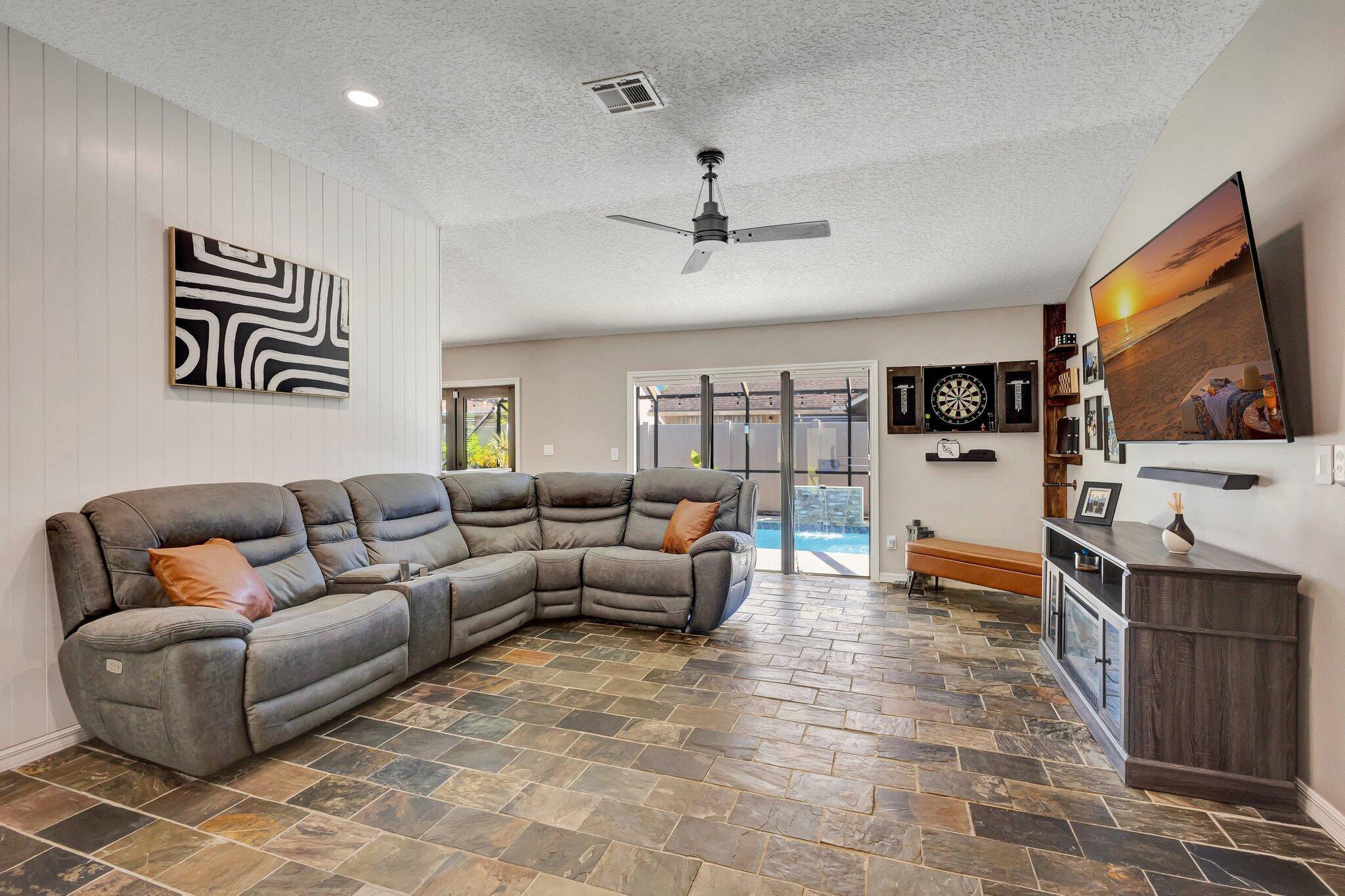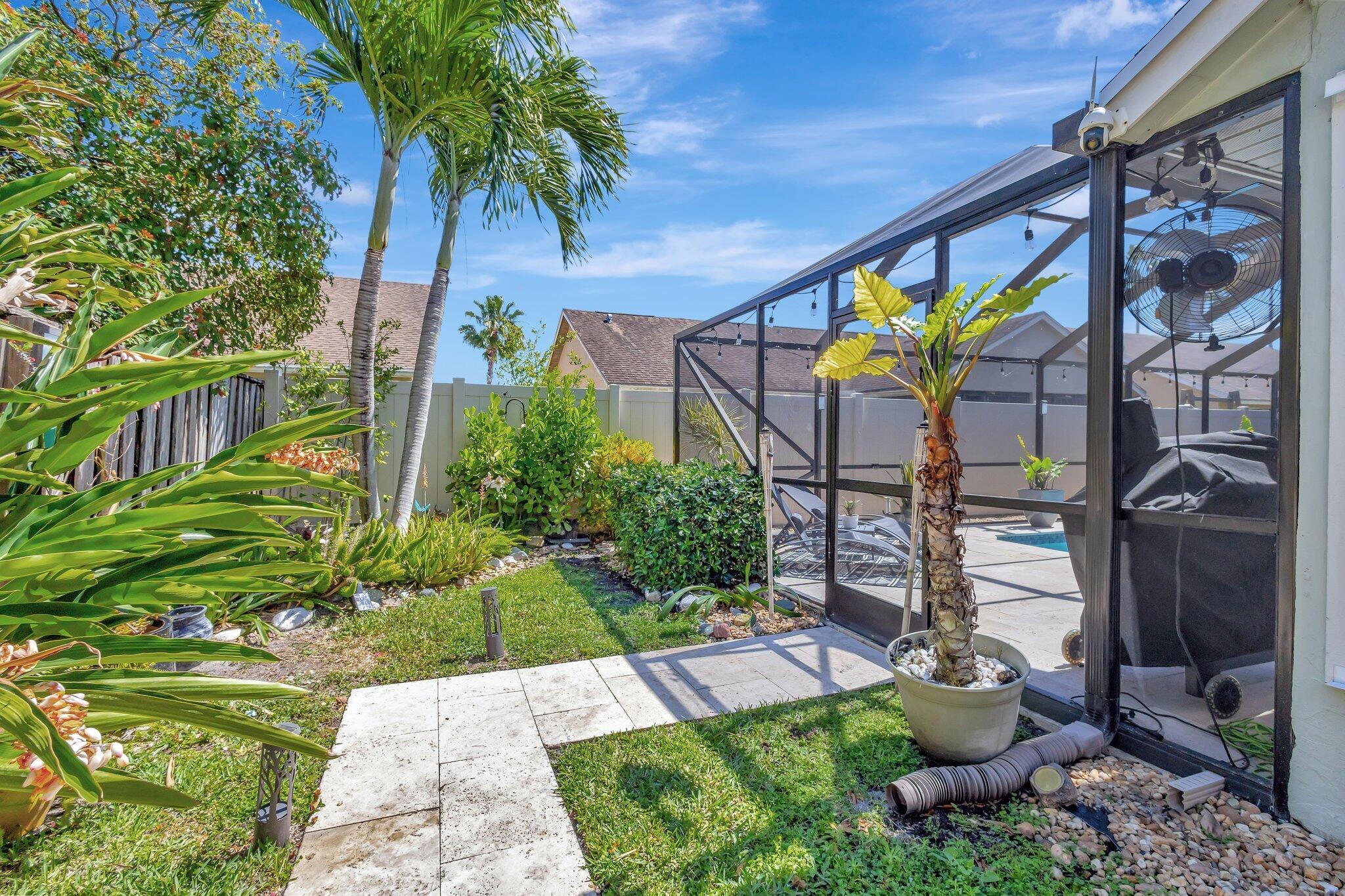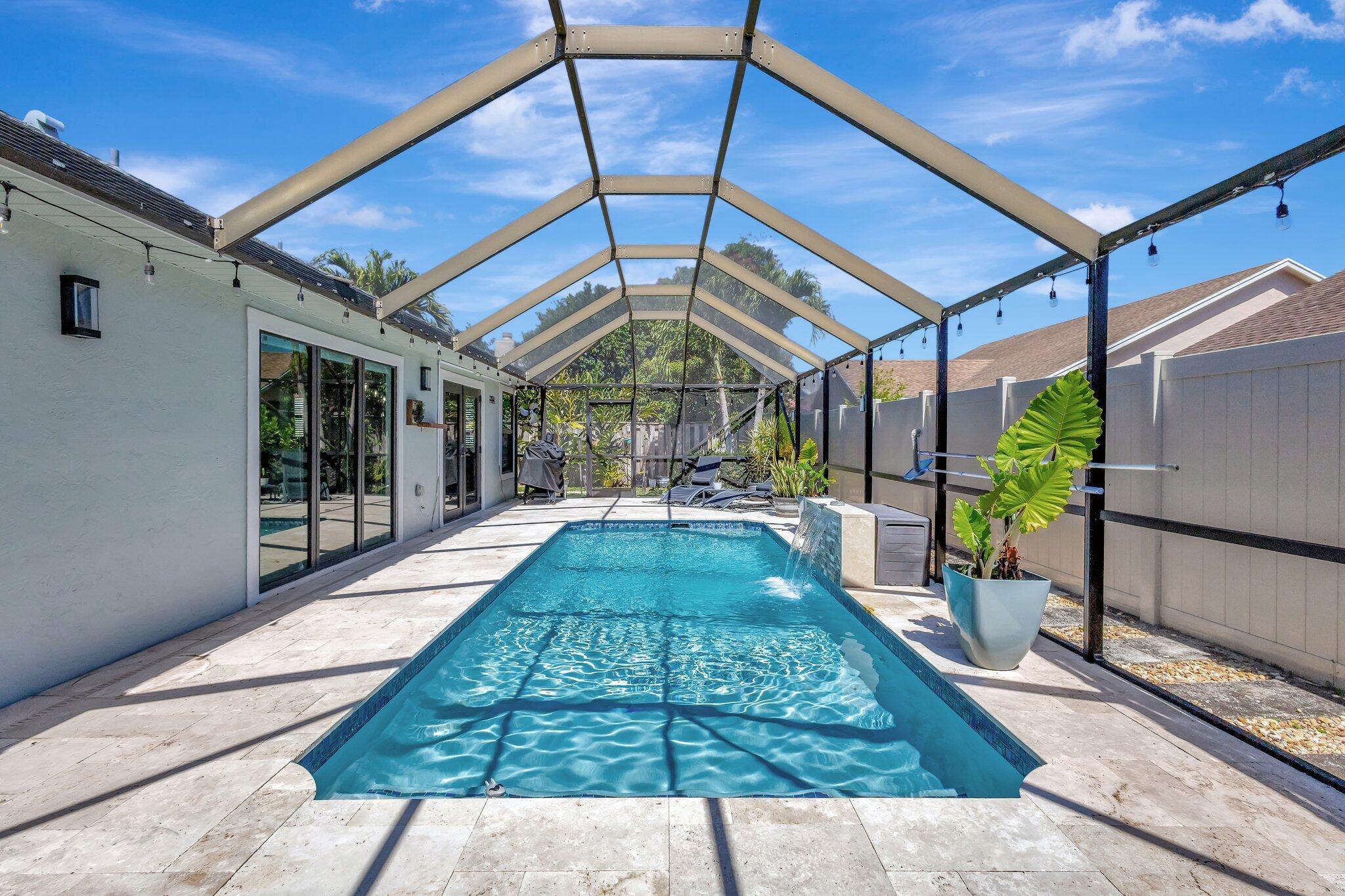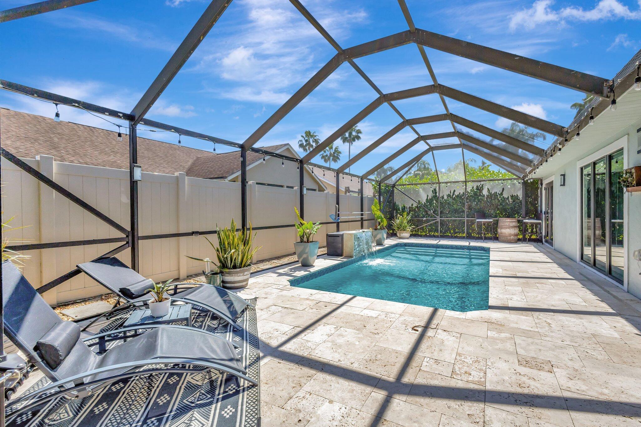 Stunning single-family home for rent in the heart of Wellington, Florida. This beautifully upgraded 3-bedroom, 2-bathroom residence offers a spacious open floor plan filled with natural light, high ceilings, and stylish finishes throughout. The expansive great room seamlessly connects to a screened-in patio that features a private heated pool with a tranquil waterfall--perfect for year-round outdoor entertaining and relaxation. Inside, you'll find natural slate flooring in the main living areas and luxury vinyl plank flooring in all bedrooms--no carpet. The gourmet kitchen is a chef's dream, equipped with stone countertops, stainless steel appliances, custom cabinetry, and a built-in Bar/Cafe area ideal for both everyday living