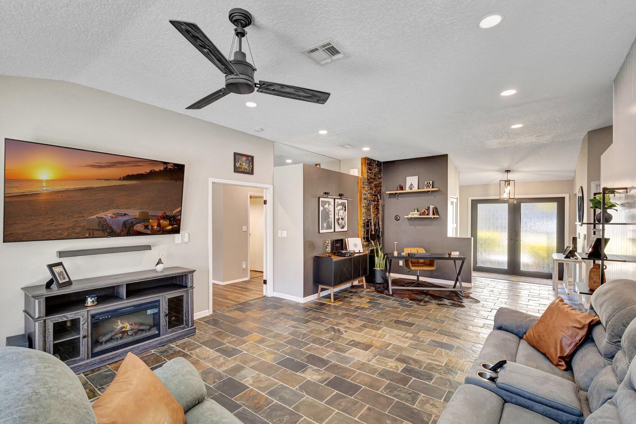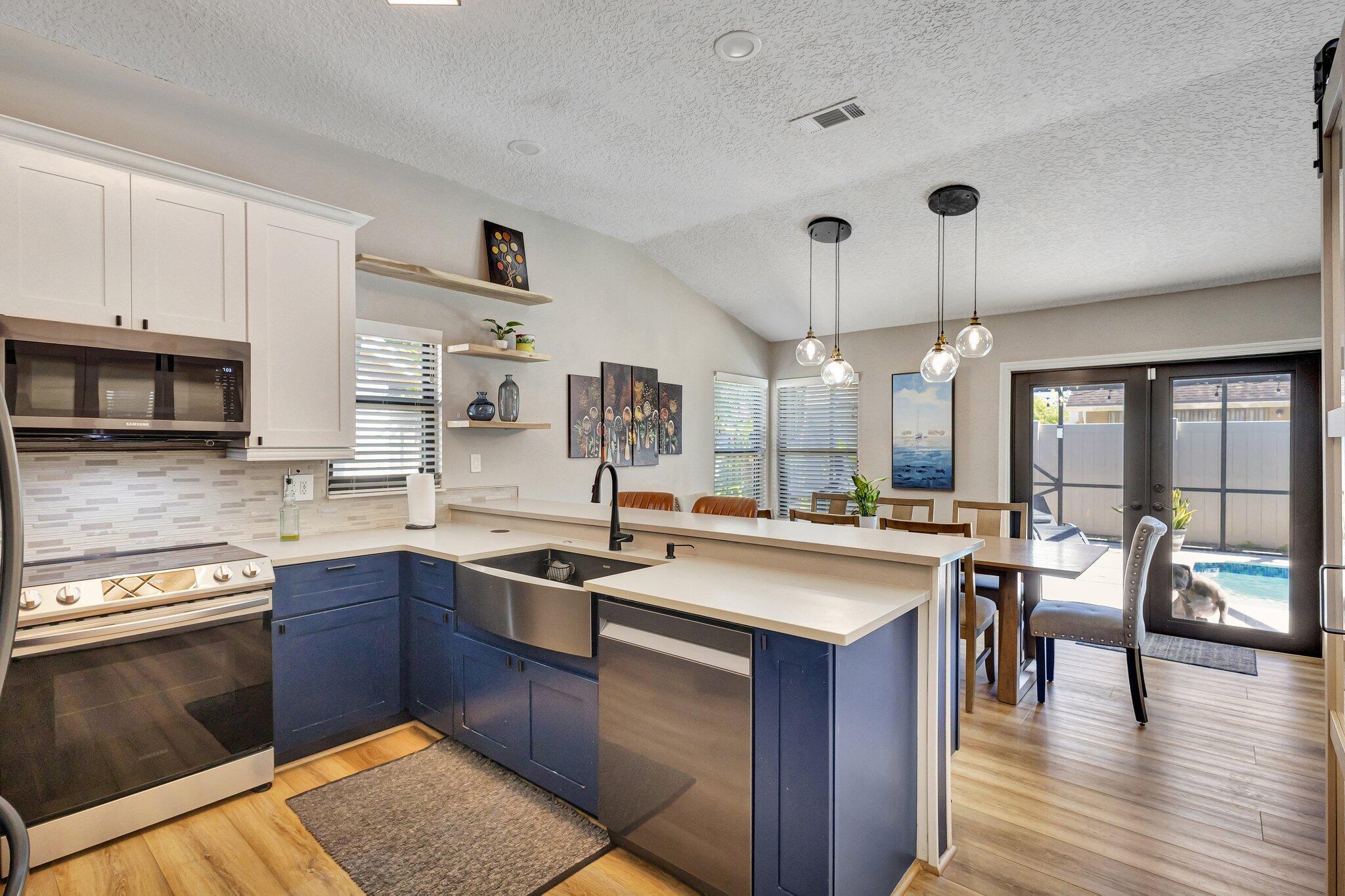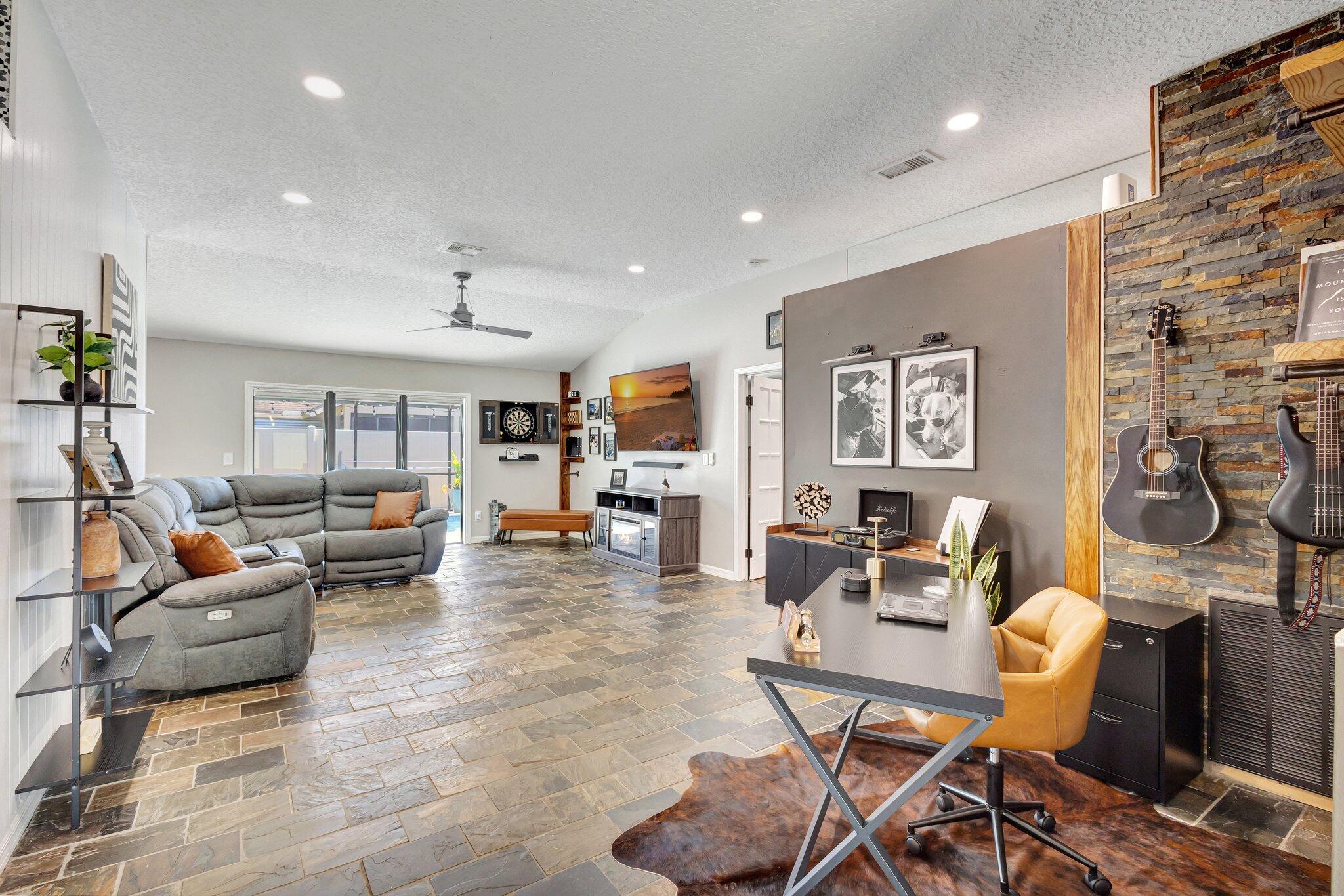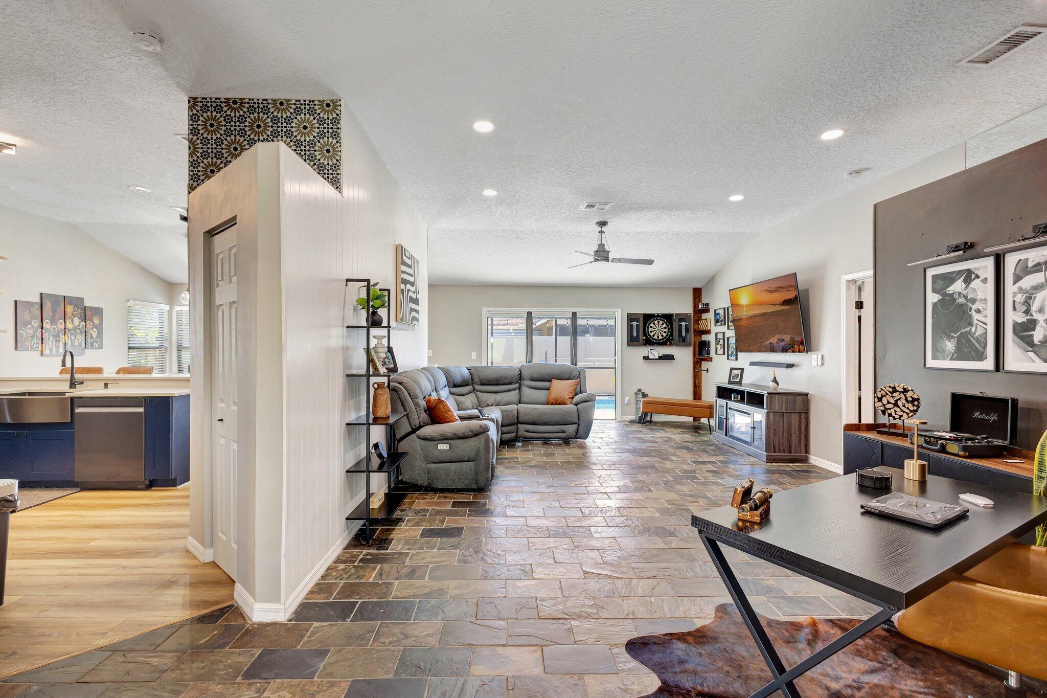Stunning single-family home for rent in the heart of Wellington, Florida. This beautifully upgraded 3-bedroom, 2-bathroom residence offers a spacious open floor plan filled with natural light, high ceilings, and stylish finishes throughout. The expansive great room seamlessly connects to a screened-in patio that features a private heated pool with a tranquil waterfall--perfect for year-round outdoor entertaining and relaxation. Inside, you'll find natural slate flooring in the main living areas and luxury vinyl plank flooring in all bedrooms--no carpet. The gourmet kitchen is a chef's dream, equipped with stone countertops, stainless steel appliances, custom cabinetry, and a built-in Bar/Cafe area ideal for both everyday living