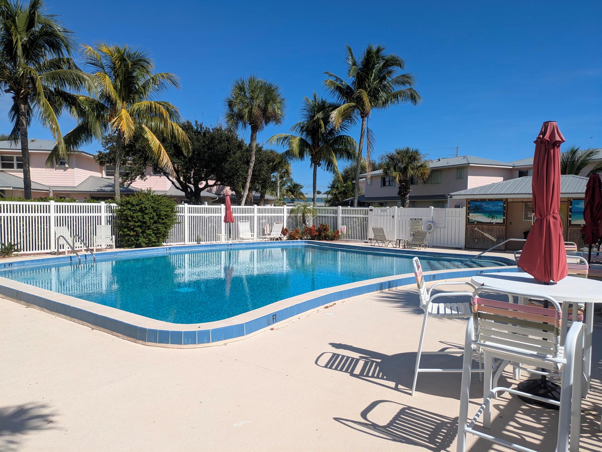 Furnished rental walking distance to the beach! Updated kitchen with white cabinets and granite counters, stainless steel appliances. 1 bedroom and 1 full bath on the 1st floor 2nd bedroom and 2nd full bath on the 2nd floor. Washer and dryer in the unit. Instant hot water heater. Two fenced patios. Community pool. 1 car Carport and a 2nd designated parking space are included. No Pets.