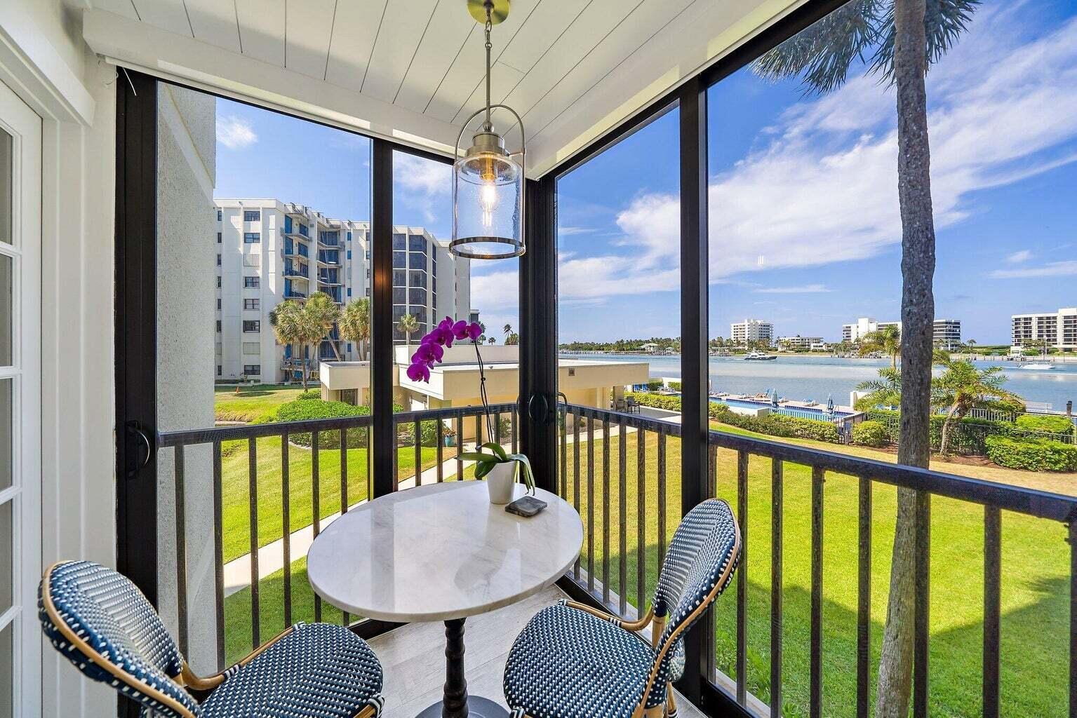 Completely renovated coastal-styled condo with unobstructed Caribbean blue Intracoastal views! Offered turnkey furnished, including designer furnishings, artwork, linens and fully outfitted kitchen. The architecturally re-imagined floorplan offers a split bedroom design, custom bar and service area with backlit, glass paneled cabinetry, dual beverage coolers, gorgeous quartzite countertops and upgraded stainless appliance package. Move right into this light and refreshing home and instantly sense the luxurious south Florida lifestyle it offers. Amenities include a day dock/fishing pier, sandy beach areas for kayak and paddle board storage, inside bike and board storage, tennis courts, heated pool right next to the Intracoastal Waterway, community Weber grills and a modern clubhouse