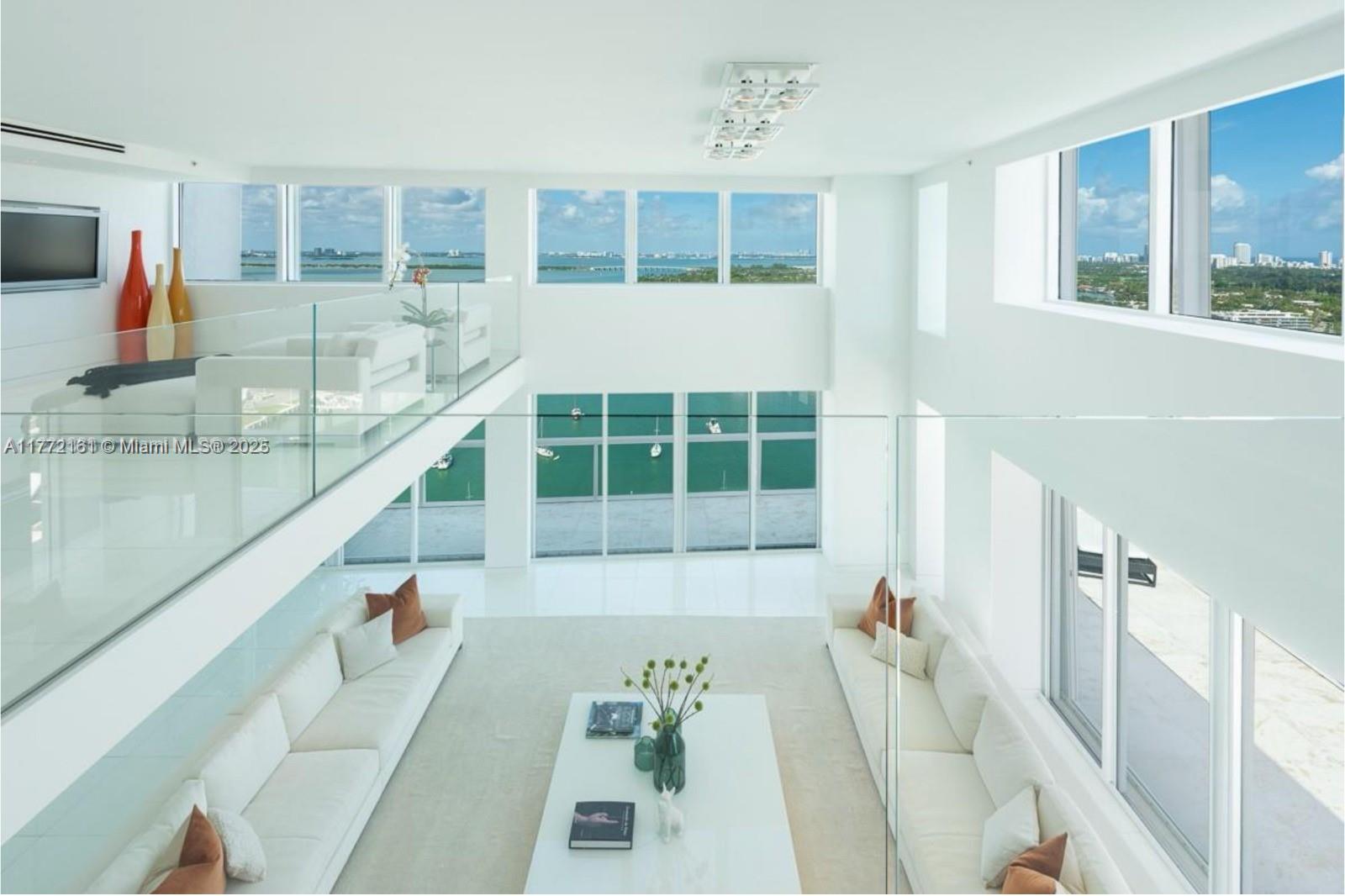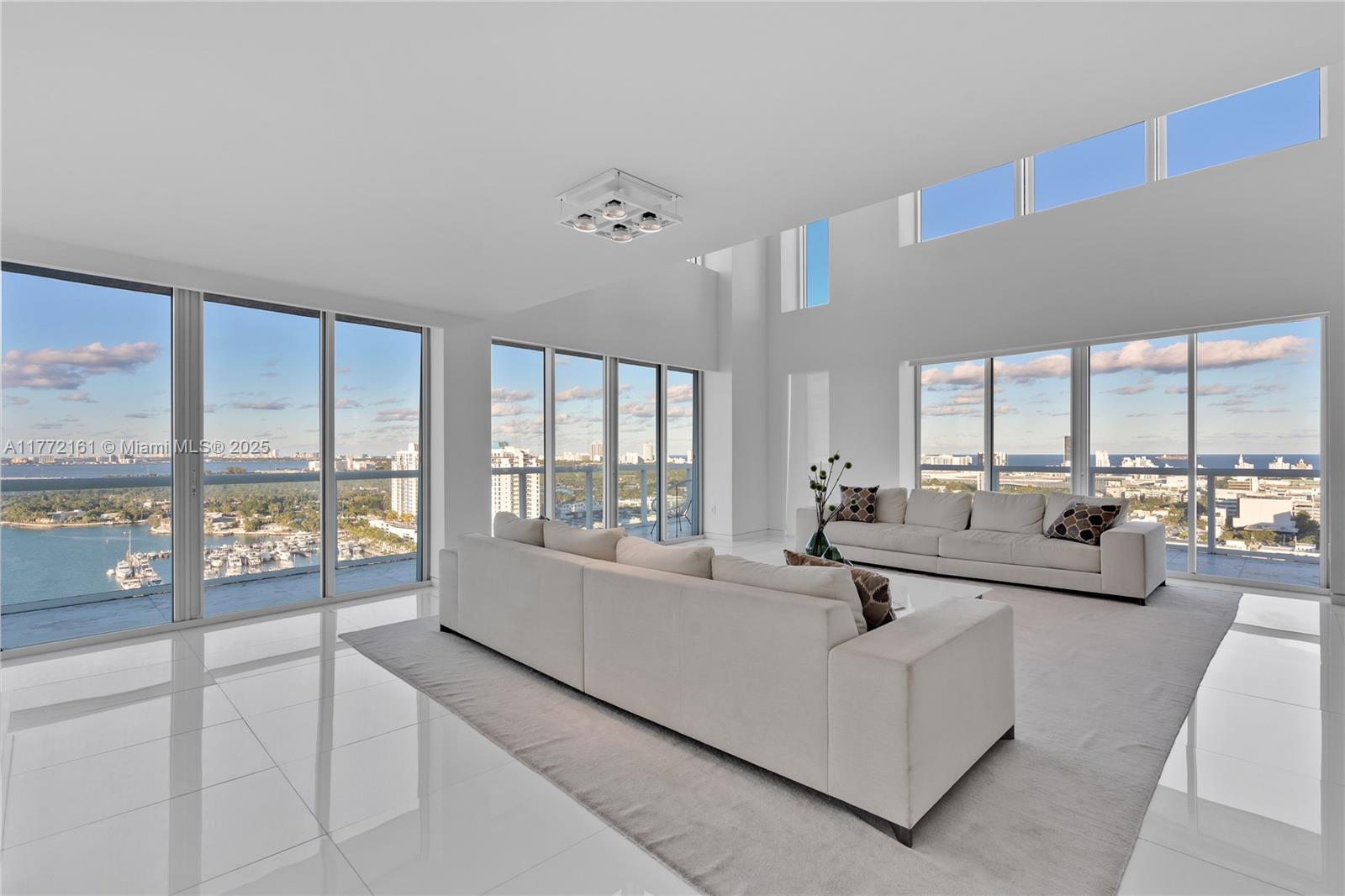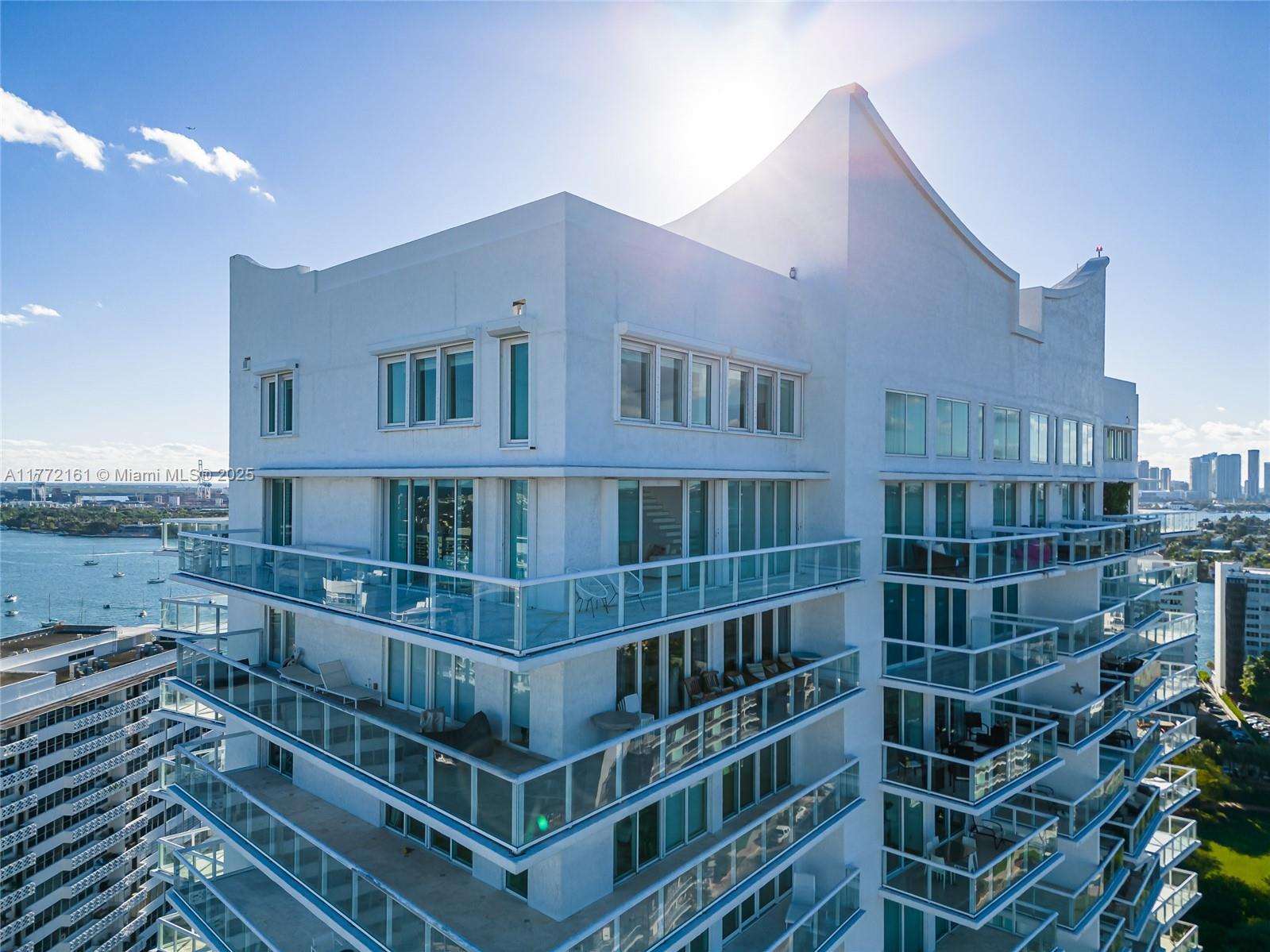 Elevate your lifestyle in the corner Penthouse at the Grand Venetian, a lux boutique bldg. The unique, furnished 3-BR residence spans nearly 5,000 sqft w/ breathtaking water views of the bay, ocean, & Miami skyline from every window. Beautiful open floorpan w/ impressive 20ft ceilings & expansive wrap-around balcony. Equipped w/ bespoke Arclinea chef's kitchen, Miele-LaPerla/SubZero appliances, climate-controlled wine fridge, Crestron/Lutron, & discreet surround-sound. Upstairs is dedicated to the master suite, featuring floating sitting room, fireplace, walk-in closets, & Waterworks spa bath & steam shower. Resort-style amenities- Front desk, cabanas, gym, BBQs, mini golf, tennis/pickle court, valet & pool w/ hot tub & towel service. Best Location! Steps from The Standard & Sunset Harbour