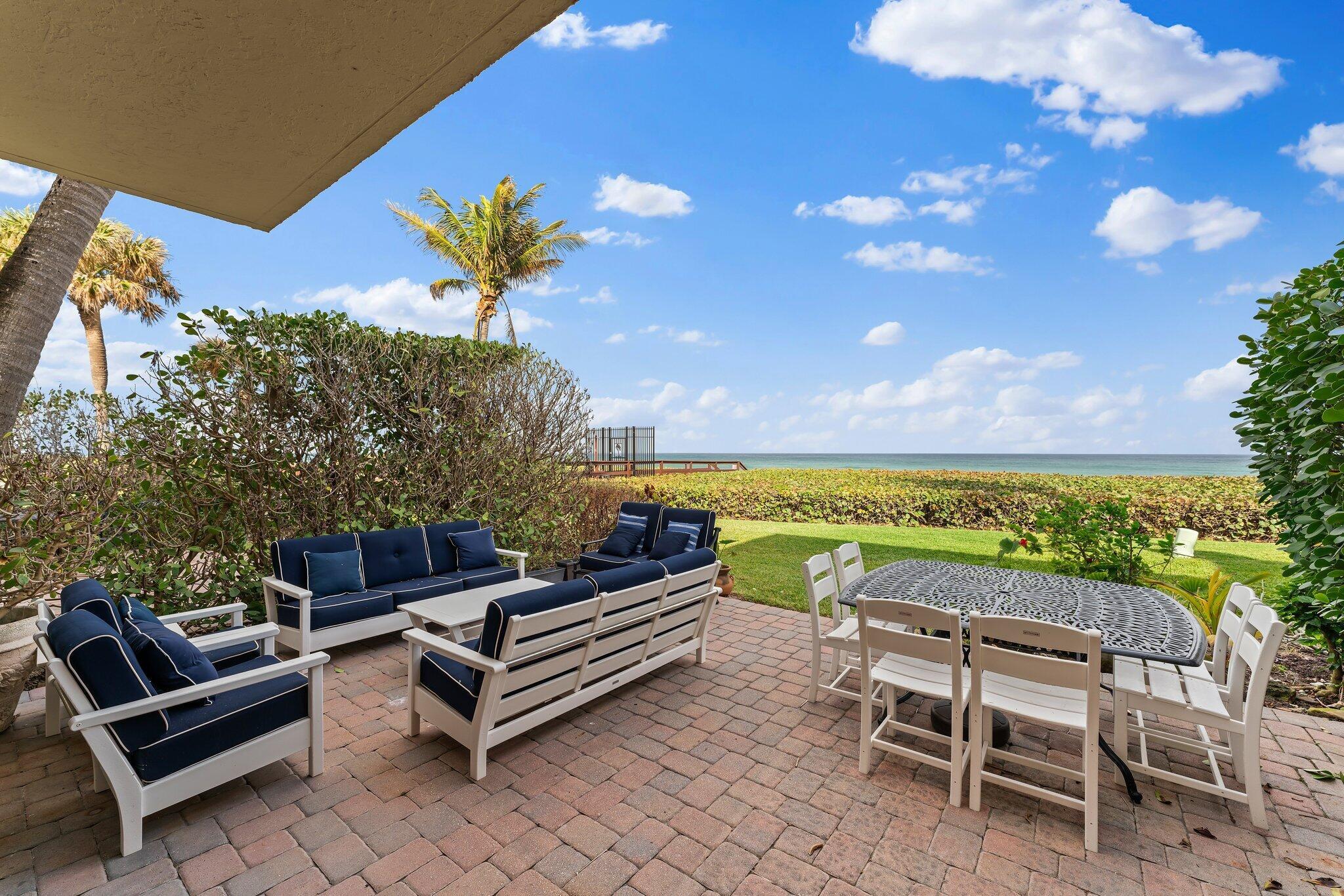 Rare direct oceanfront 3-story turnkey townhome with an interior elevator. AVAILABLE FROM JUNE till DECEMBER 2025. One of just 11 units with fantastic panoramic ocean views from living areas and master. Very private, just steps to pristine beach, located in a gated community. Pelican Lake just outside the community gate. Close to great restaurants and shopping. The newly renovated North Palm Beach Country Club down the street is open to the public and offers exceptional golf and tennis facilities.