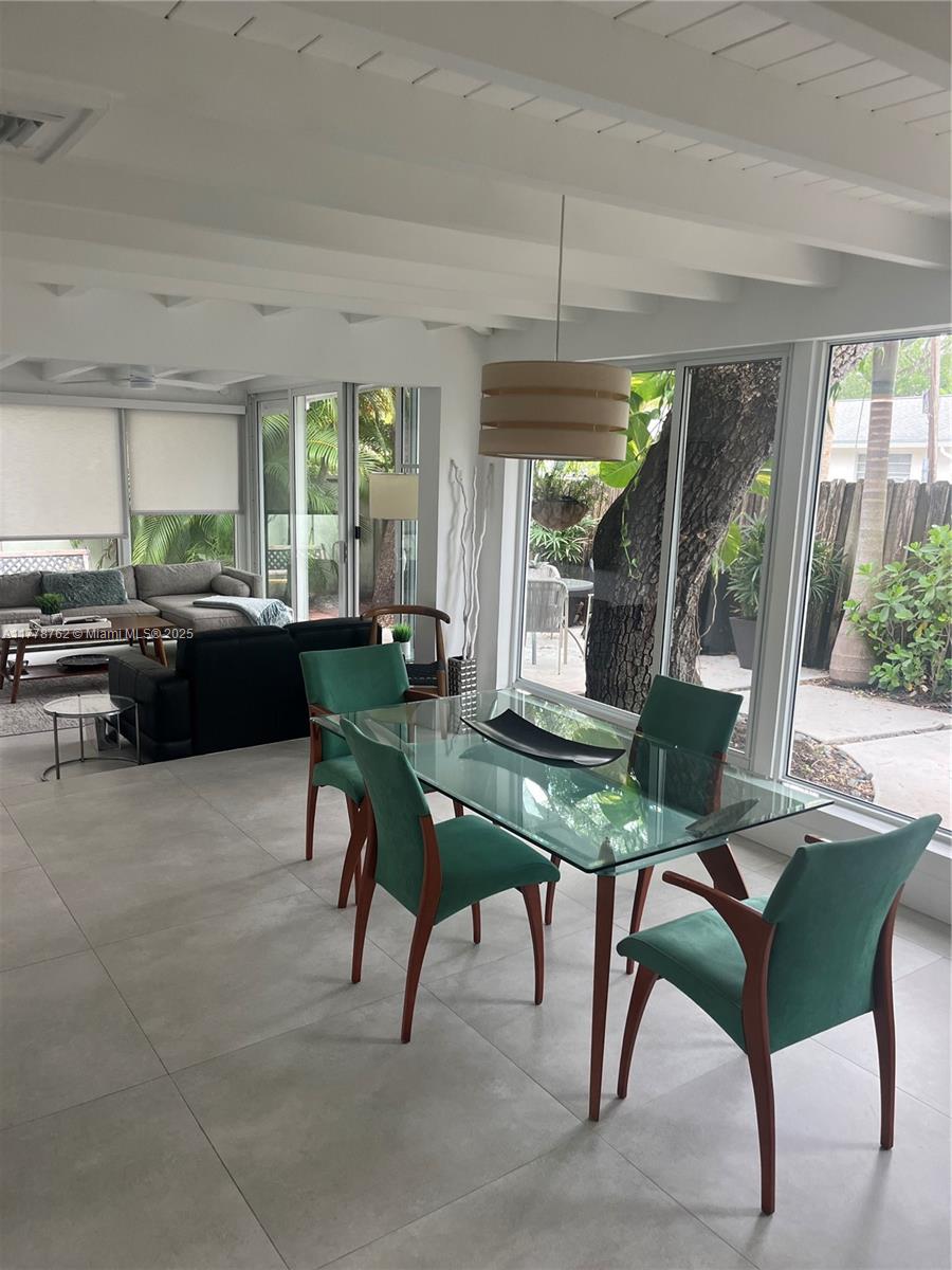 Beautiful furnished home recently renovated immerse in nature. Interesting design with lots of light. 3 bedrooms 2 bath and additional separate office. Open Kitchen facing one of the two living areas. The second living room area is connected with dining room accentuated by ceiling wood beams and large floor to ceiling sliding impact windows. Location location location.......Centrally located near Las Olas Blvd Airport/Seaport Also near Brightline Train to WPB and Miami, downtown and the beautiful beaches. Property all fenced in and private. For boaters there is no fixed bridges. Across deep water canal and park.