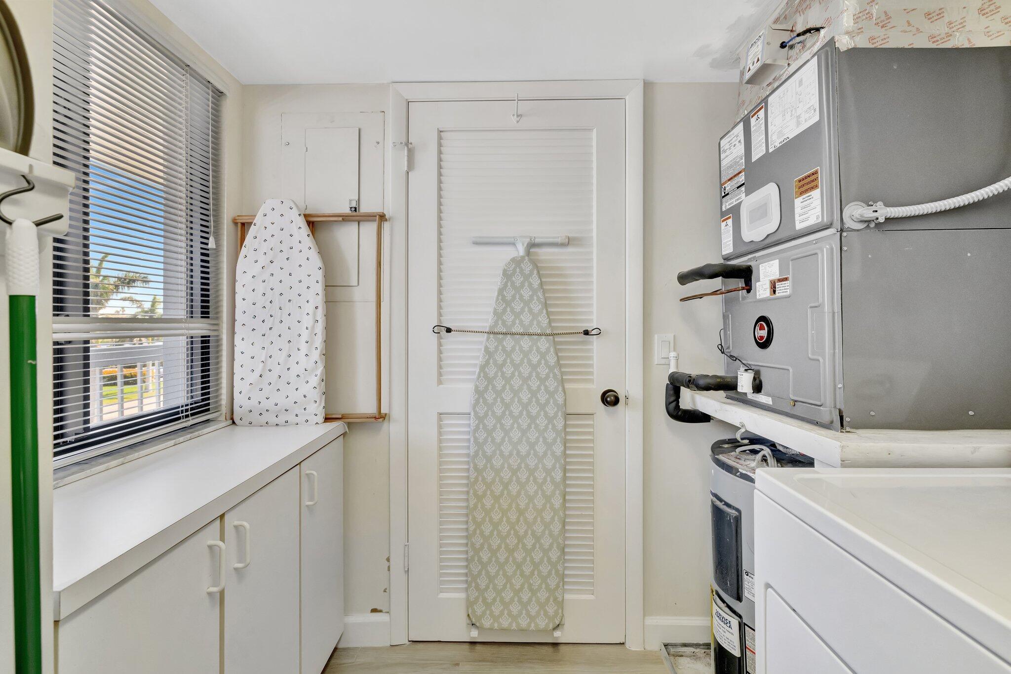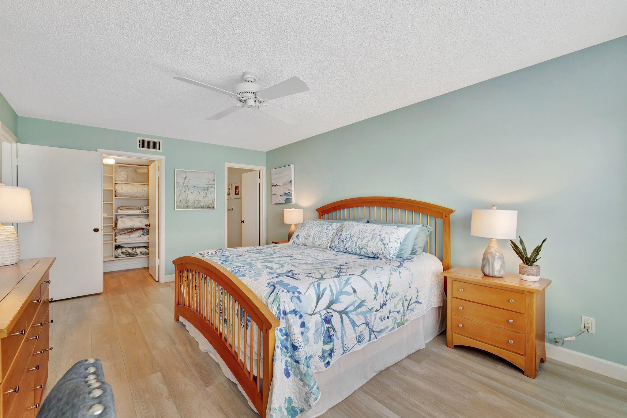 This furnished third-level home on the Indian River, Hutchinson Island, presents an incredible rental opportunity. It exudes a nautical ambiance with two bedrooms each with a walk-in closet and two bathrooms. The living area, primary bedroom, and screened balcony offer breathtaking views of the river. Returning from a fun-filled day, drop your accessories in the spacious laundry room right at the front entry. Almost every comfort of home is provided, from pool/beach towels to a toaster. Inlet Village offers one covered parking spot, an elevator, gas grills, and a pool. You can relax by the pool, go to the beach, or explore the nearby towns of Stuart and Jensen Beach for golfing, biking, or engaging in local activities.
