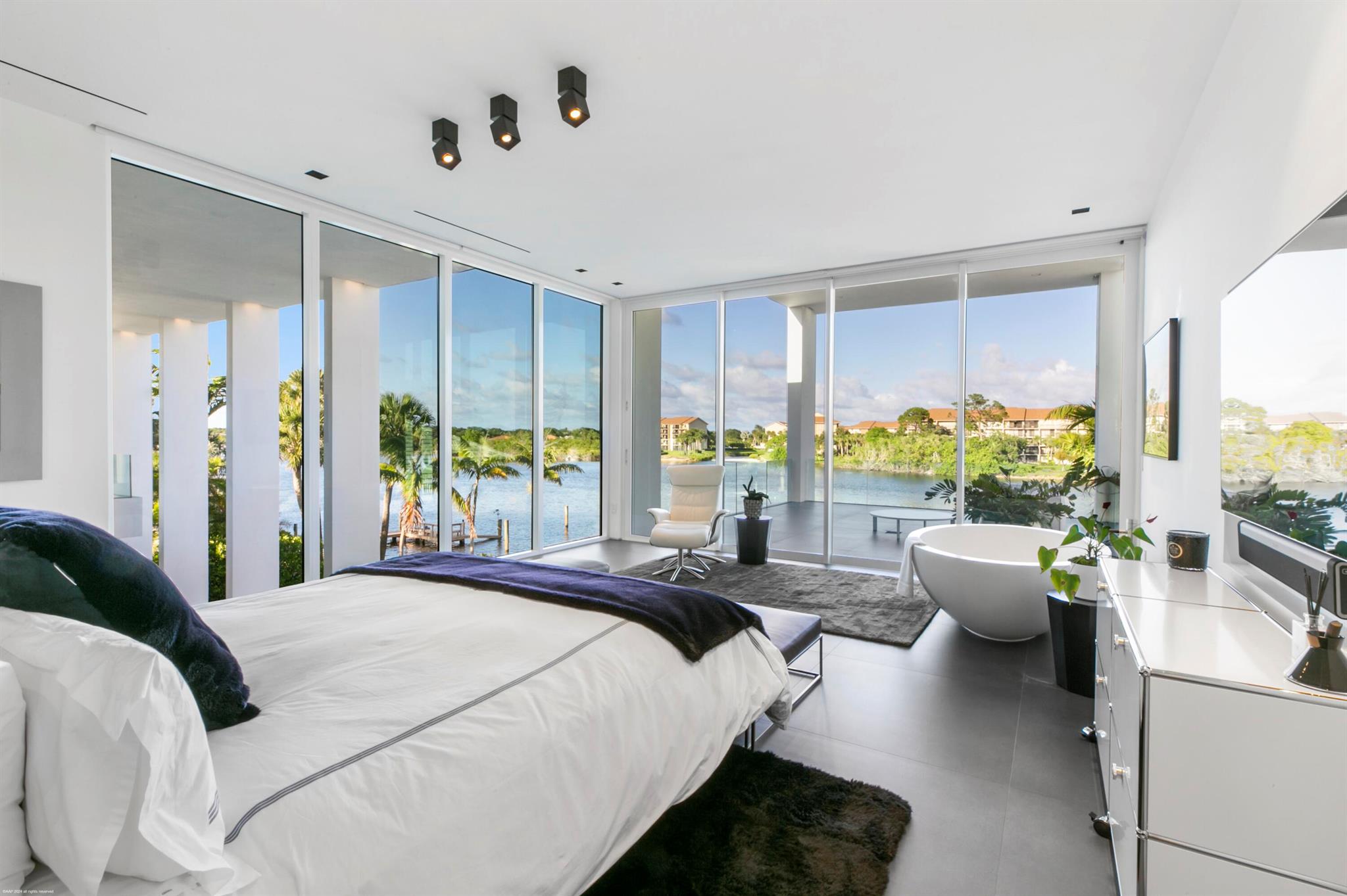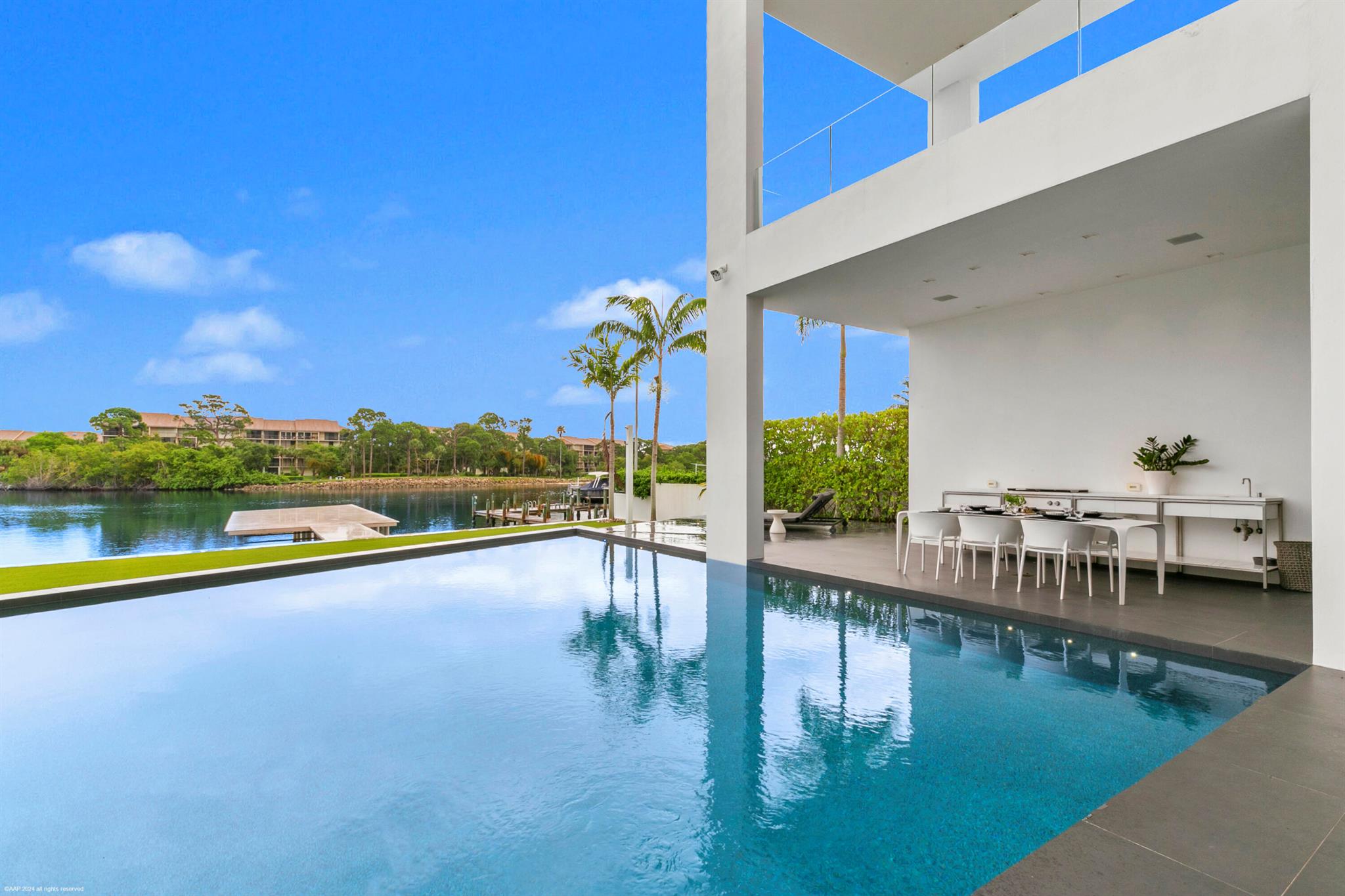 Nestled in prestigious Palm Beach Gardens, this stunning single-family home epitomizes luxury living with its gorgeous water views and ultra-modern design. Boasting a prime location, every aspect of this residence exudes elegance and comfort.Upon entering, you are greeted by an expansive foyer that leads seamlessly into the spacious living areas. The interiors are adorned with high-end finishes, including large format tile floors, custom Bizassa tiled bathrooms, designer light fixtures, and soaring windows and glass doors, creating an ambiance of sophistication with unobstructed views. The gourmet kitchen is a chef's dream, featuring state-of-the-art appliances, sleek cabinetry, and a center island perfect for culinary creations or casual gatherings. Adjacent, the dining area