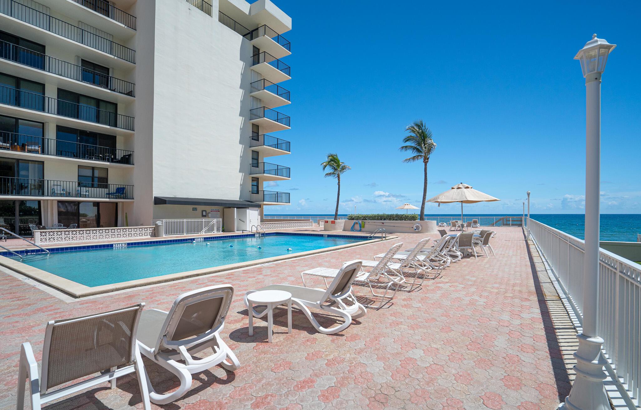 Stunning Ocean Views! This layout is extremely unique and desirable for the building as it is the Oceanfront unit. This lovely condo boasts a wide layout with 2 balconies totaling over 330 sq ft of outdoor space, each with beautiful views of the ocean. Complete Hurricane Impact Glass Sliders and Windows throughout. This building offers an oceanfront pool and deck, fitness room, personal storage, bike storage, and more. Located in the highly desirable South Palm Beach Island, you are surrounded by shops, restaurants, golf, and much more. Only 15 minutes from the airport and Worth Ave. Come and see for yourself!