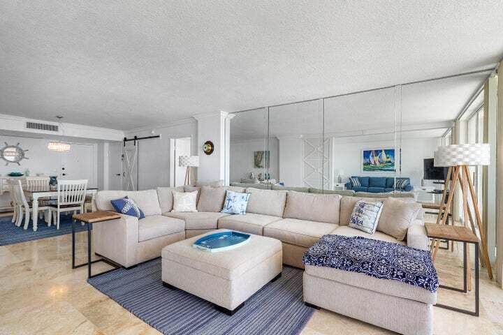 Spectacular Ocean Front Views on the top floor penthouse. Steps down to the Beach with this turnkey seasonal rental. The unit features travertine flooring, Master Bedroom spacious walk-in closet, Convertible 2nd Bedroom w/Queen size sleeper sofa with custom Shoji Screens enclosure. The amenities include, 24/7 front desk, fitness center, game room, business center, sauna, party room, onsite property manager, heated saltwater pool, tennis court, BBQ grills, gazebo, car wash area, covered garage parking. Minutes from Publix Supermarket, Ice Cream Shop, Dune Deck Restaurant, John G's, Benny's on the Beach, shopping, park and much more. Seasonal rental includes electric, water, Hotwire cable & internet. Tenants responsible for the short-term rental 13% tax. ALL AGES WELCOME.