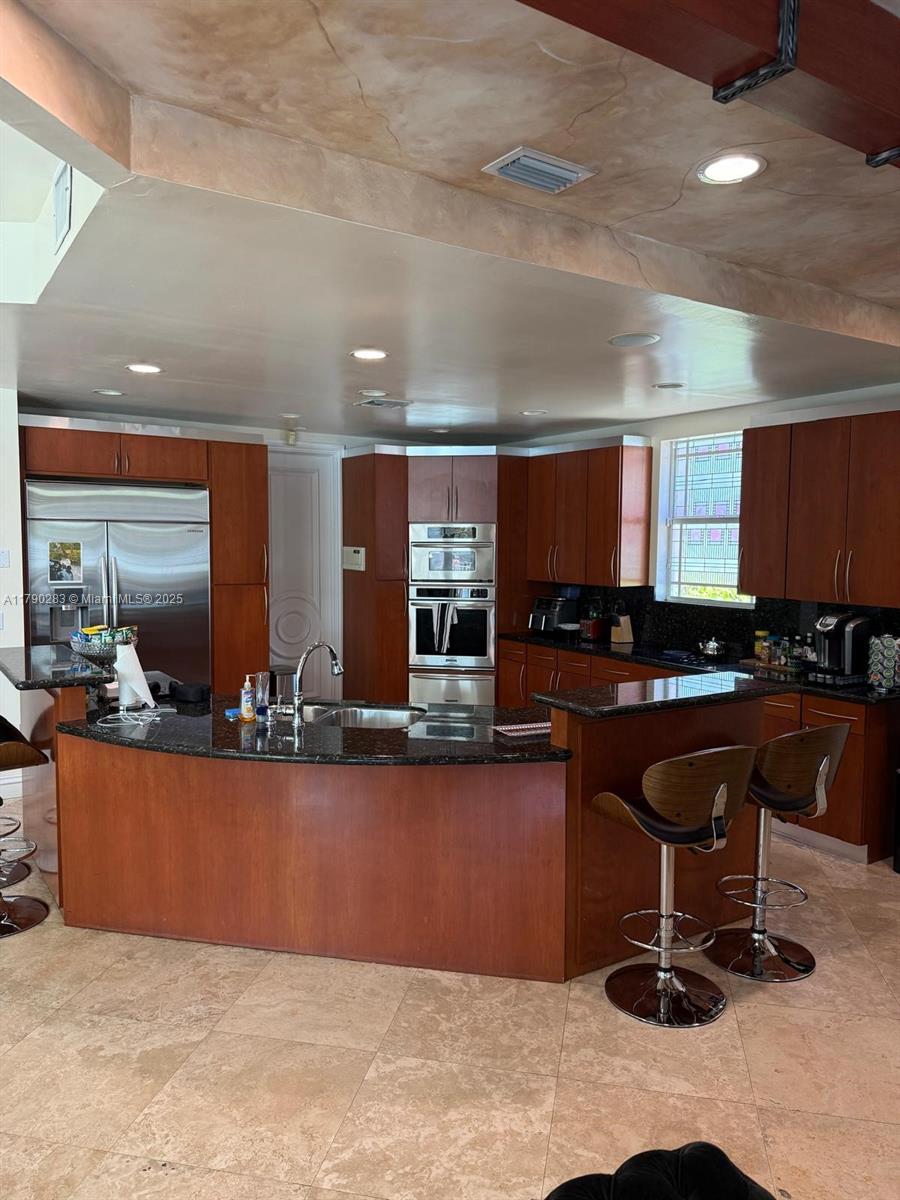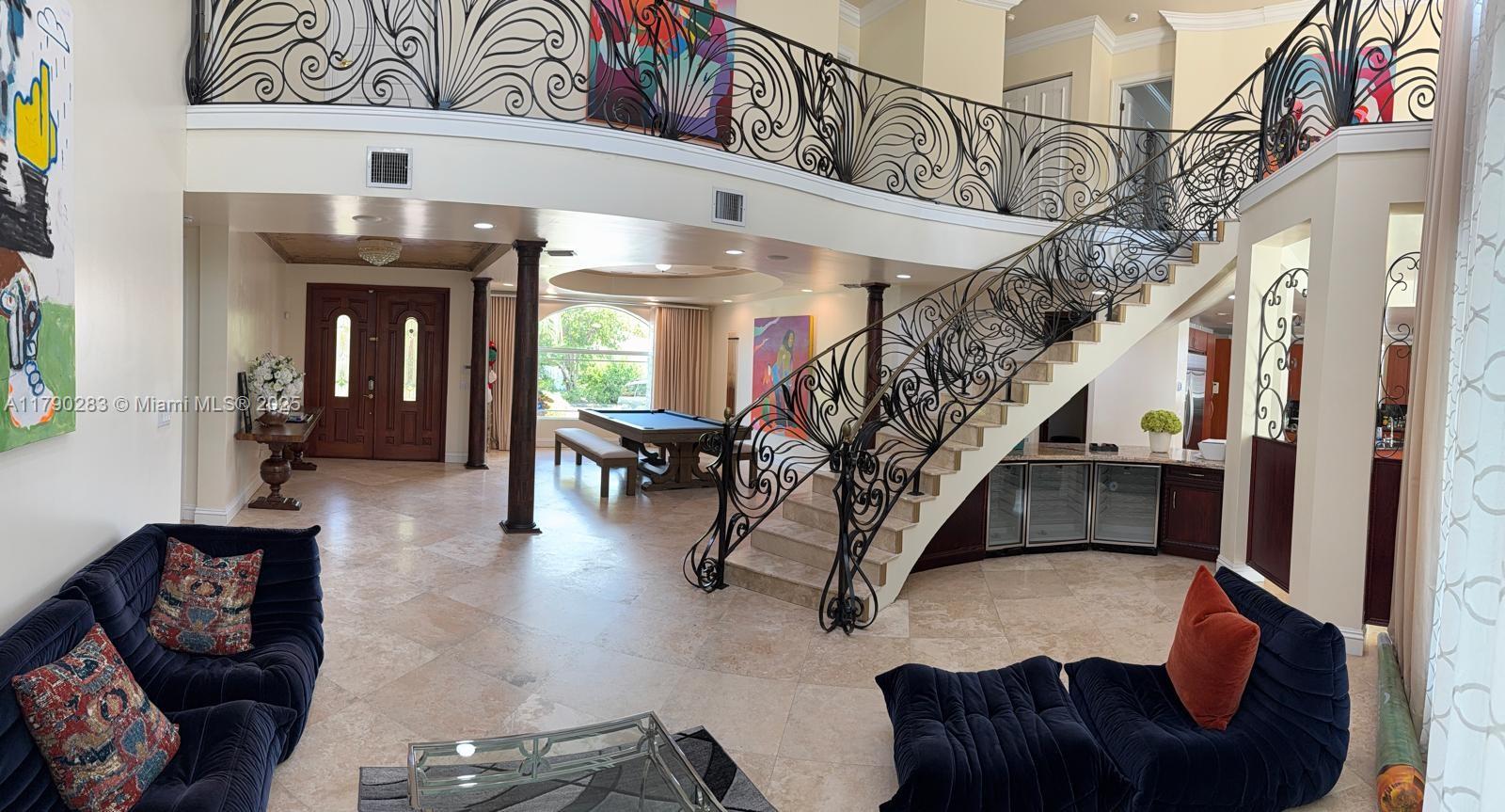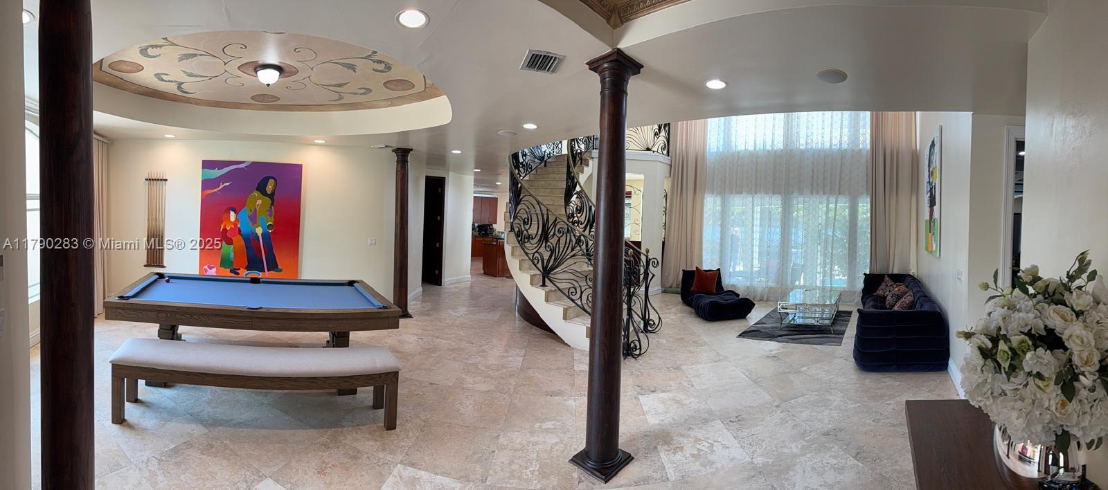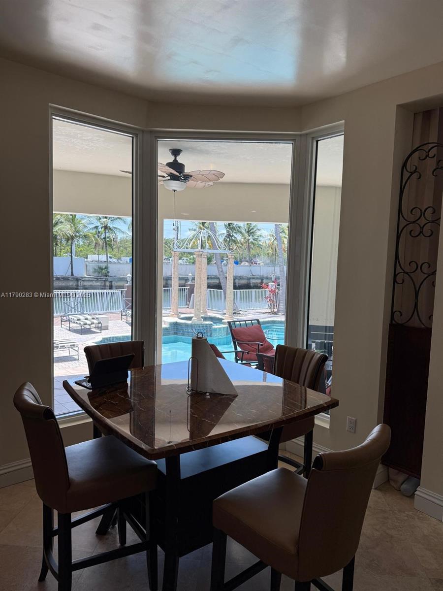 This fully furnished Dream House is the perfect home in the perfect location with a beautiful waterfront private dock! This home has very spacious 6 bedrooms and 5.5 bathrooms and an additional game room. Impact windows throughout the entire home, high vaulted ceilings, fully furnished and ready to live in comfortably. There is a big backyard area with a large pool and spa overlooking the water front and dock. Amazing huge dock able to accommodate two small boats and jet skis or one large boat along with jet skis. The beach is only a few minutes drive or can take your private boat in less than 6 minutes or so. Very central location in the middle of everything. Close to Oleta Park, Aventura Mall, and grocery centers.