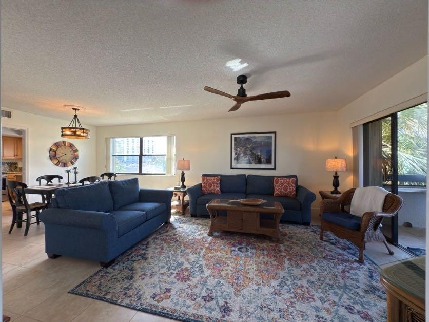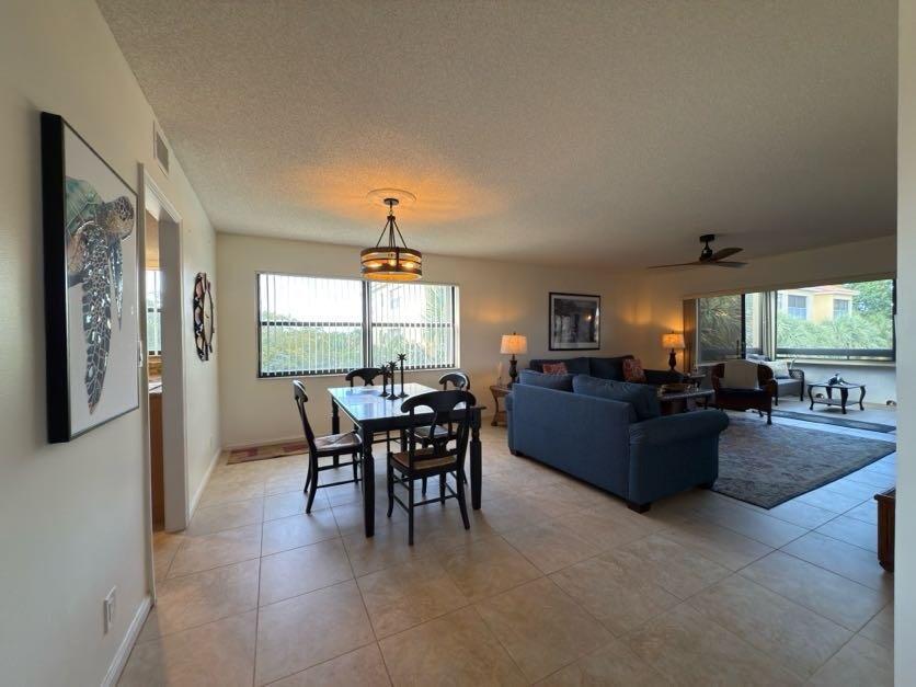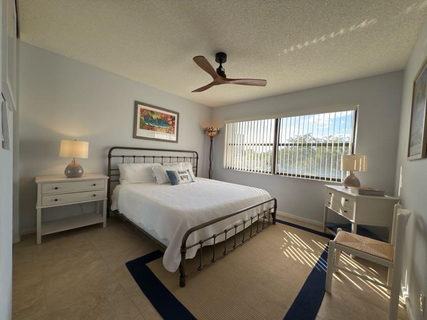 Live the ultimate Florida lifestyle in this beautifully furnished 2-bedroom, 2-bathroom condo located in the heart of Juno Beach. Situated on the top (3rd) floor of a well-maintained, elevator-equipped building, this bright and airy end unit offers stunning panoramic lake views and an abundance of natural light.Enjoy tile flooring throughout, including the screened balcony--perfect for sipping your morning coffee or winding down with a sunset cocktail. The updated kitchen features granite countertops, wood cabinetry, and stainless steel appliances. Both bathrooms are equally upgraded with elegant granite finishes. A full-size new washer and dryer adds to your convenience, and the smart split-bedroom floorplan ensures privacy and comfort.