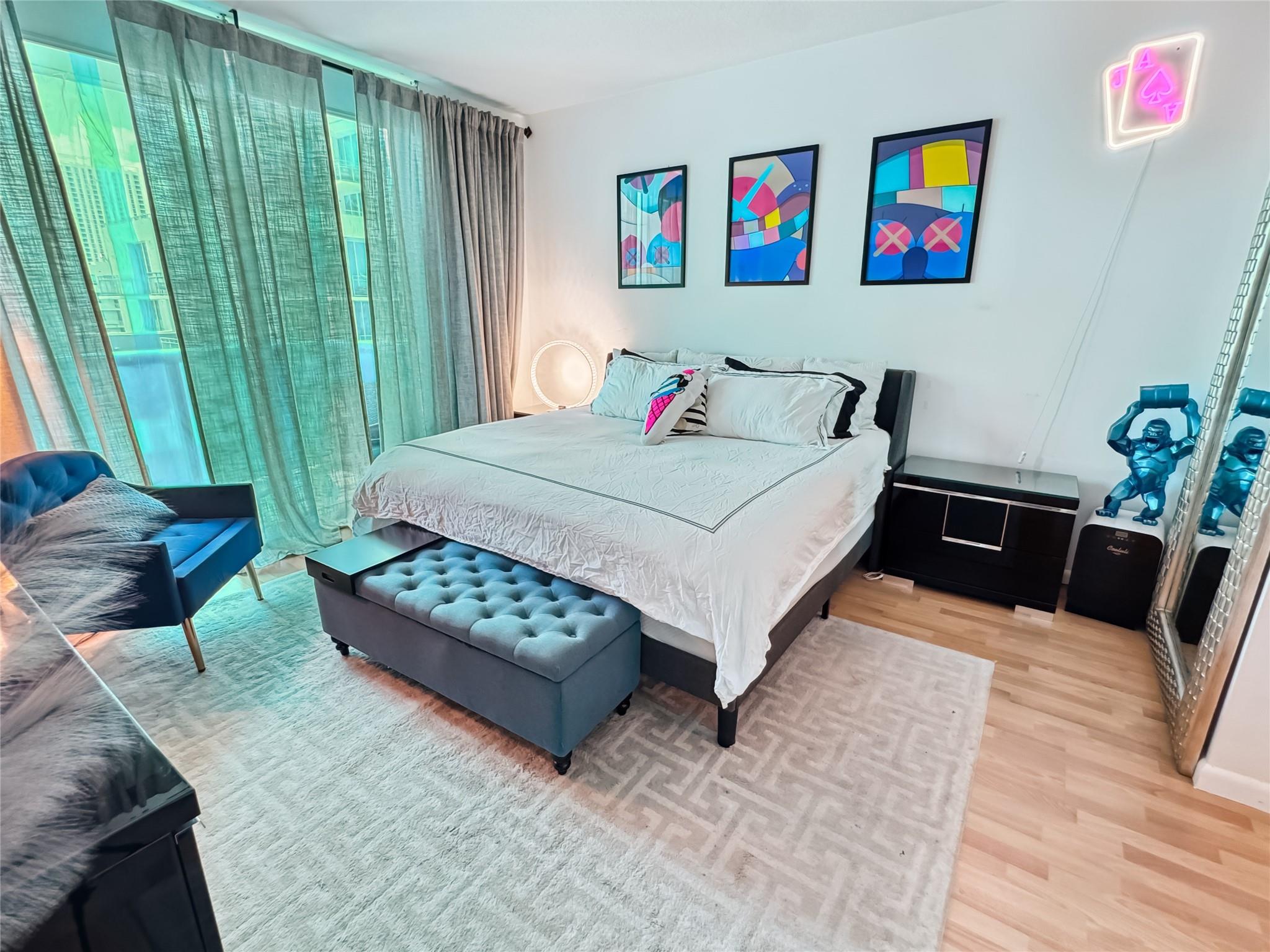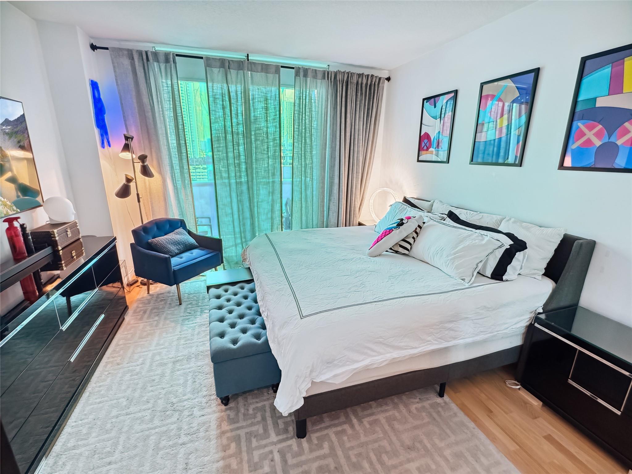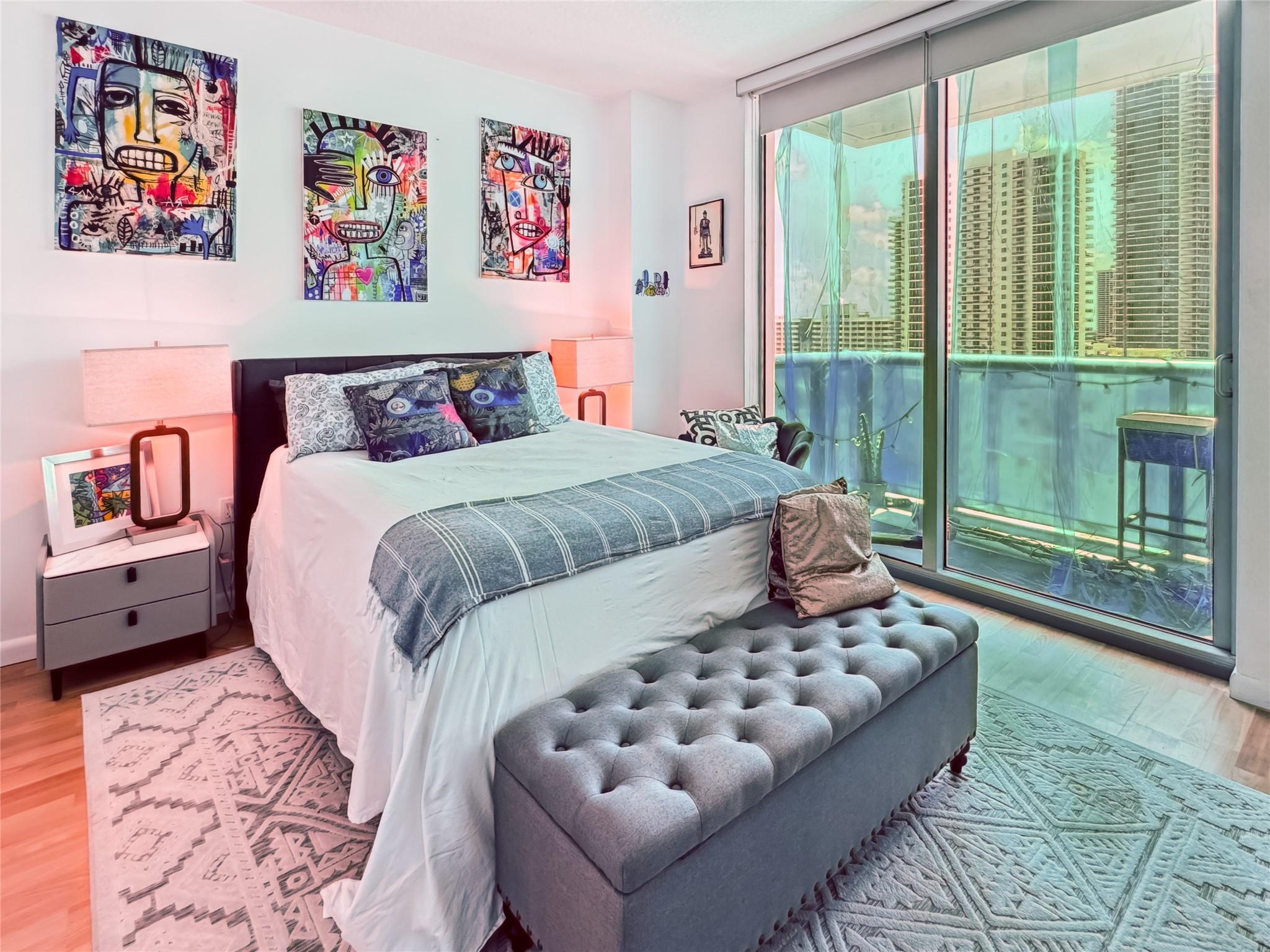 Beautiful furnished condo at Gallery Art in Edgewater. Floor plan features a split two-bedroom, two-bath plan with en-suite baths for both beds PLUS a bonus office space off the kitchen. Spacious balcony looks south with peeks at Biscayne Bay. All rooms have HUGE sliding glass doors to the outdoor space. Wood floors and ceramic tile throughout. Designer kitchen with stainless-steel appliances features a breakfast bar and dining room. High ceilings afford a contemporary open feel. HUGE washer & dryer are included. Building currently undergoing renovations that should be complete by the anticipated July 1 move date.