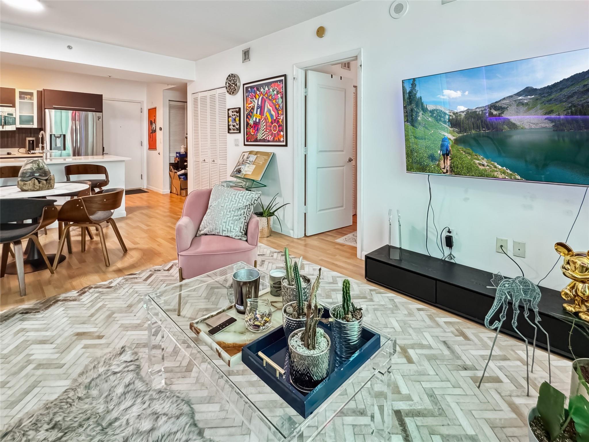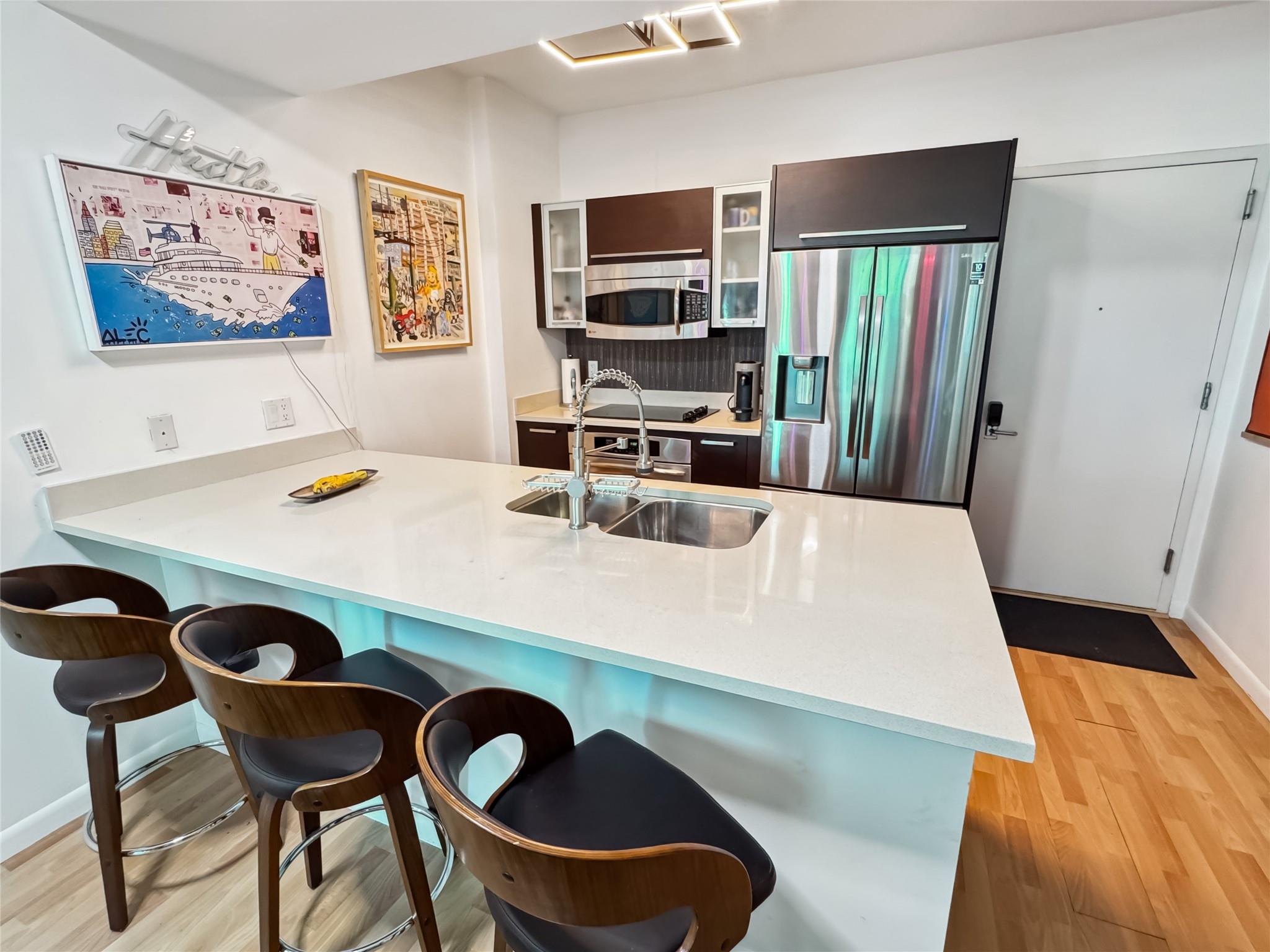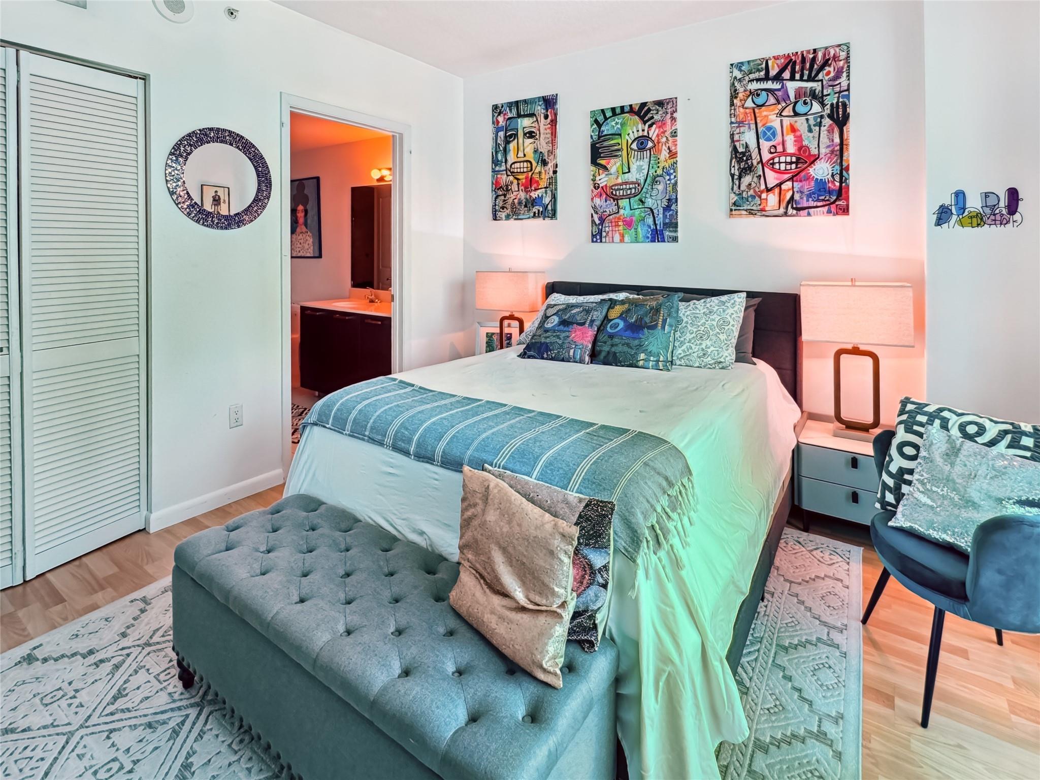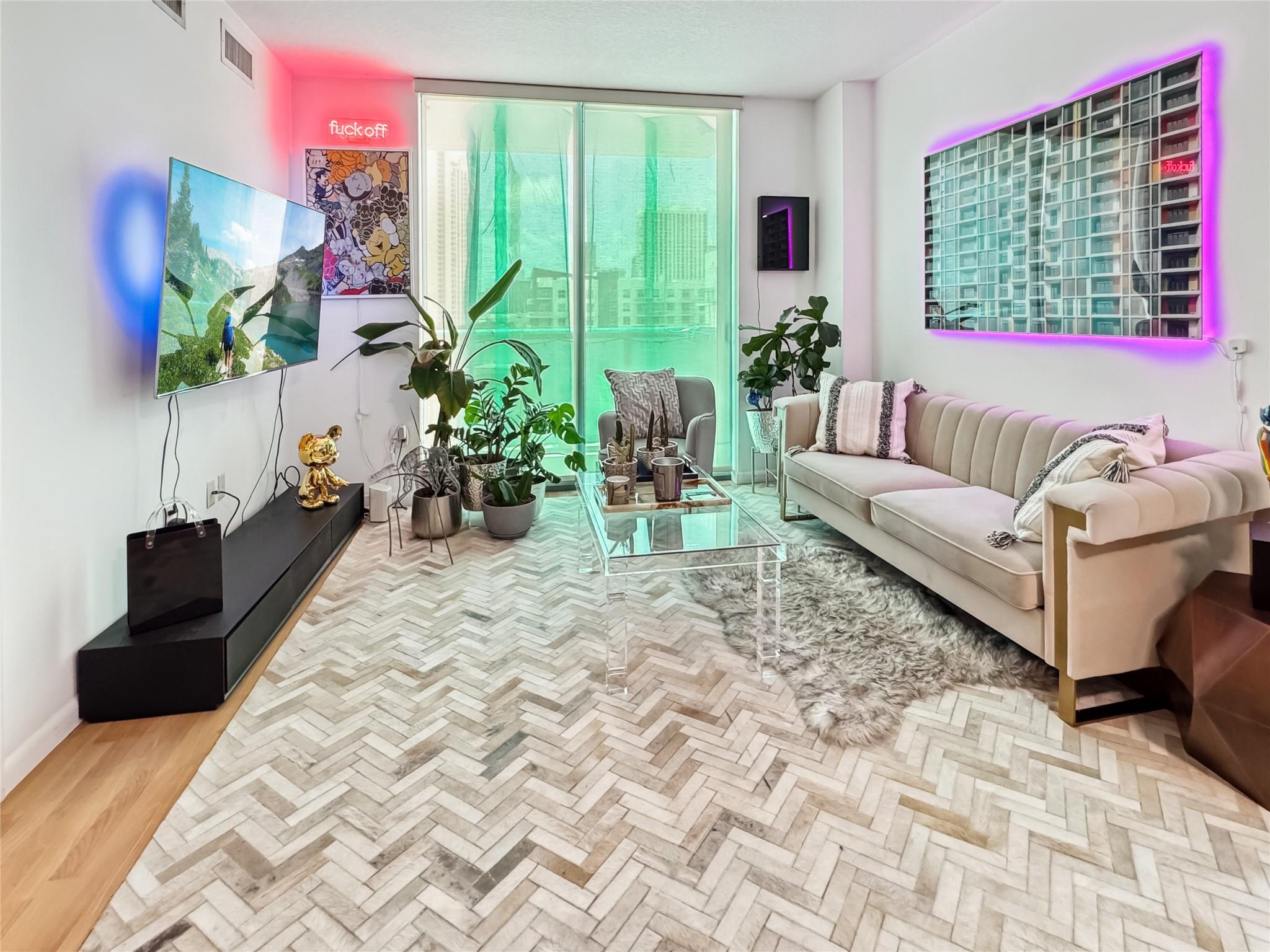 Beautiful furnished condo at Gallery Art in Edgewater. Floor plan features a split two-bedroom, two-bath plan with en-suite baths for both beds PLUS a bonus office space off the kitchen. Spacious balcony looks south with peeks at Biscayne Bay. All rooms have HUGE sliding glass doors to the outdoor space. Wood floors and ceramic tile throughout. Designer kitchen with stainless-steel appliances features a breakfast bar and dining room. High ceilings afford a contemporary open feel. HUGE washer & dryer are included. Building currently undergoing renovations that should be complete by the anticipated July 1 move date.