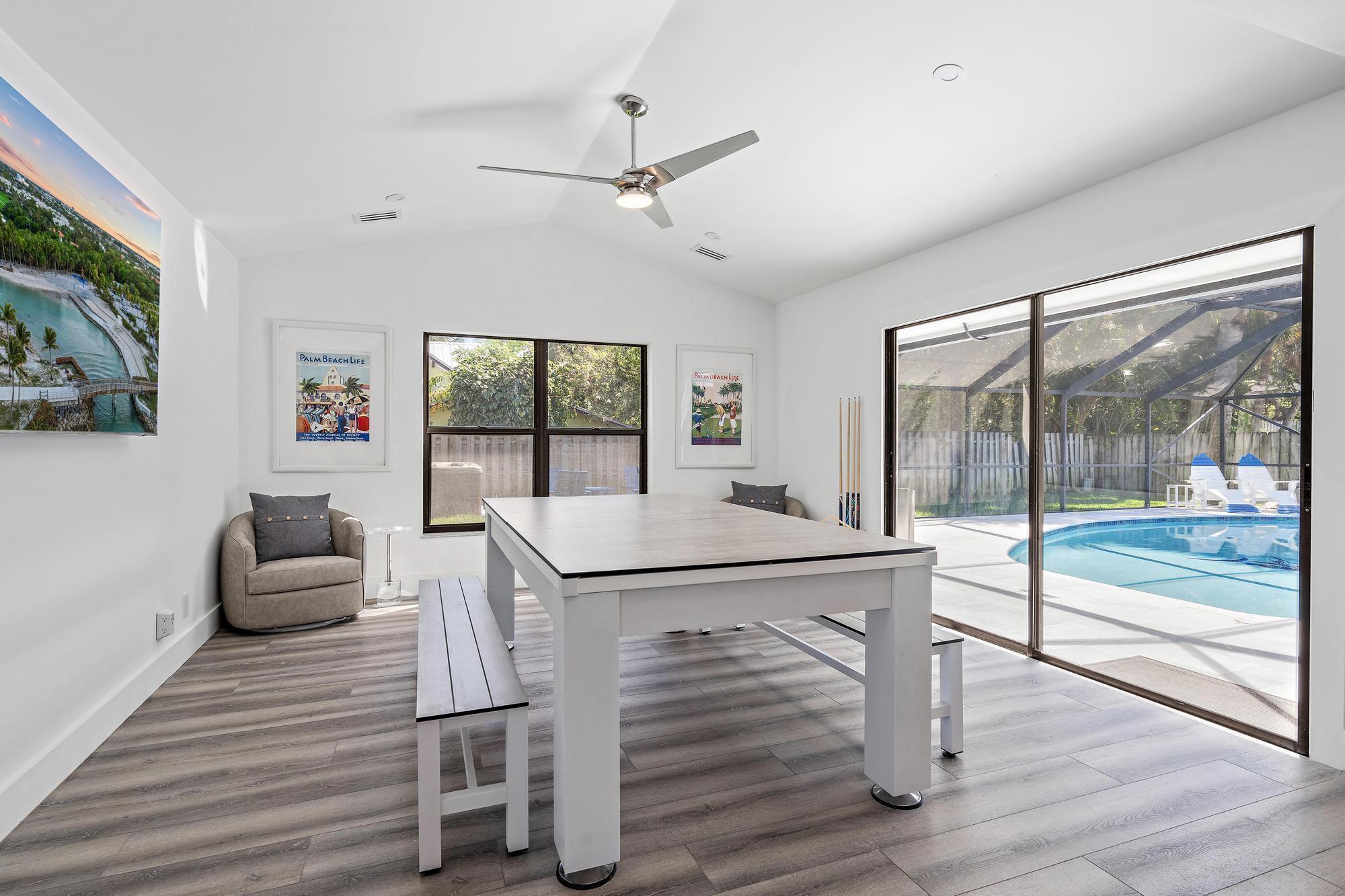 Terrific Single Family Pool Home close to everything has to offer. Easy stroll to Jupiter Beach, Kayaking, Paddleboarding, Dubois Park, the Jupiter Lighthouse, Charlie & Joe's Lucky Shucks, U-Tiki, Guanabanas, Square Grouper, Golf, Fishing, Marinas and more. Enjoy completely remodeled interiors that provide a relaxed coastal vibe. Split floor plan features 3 well-appointed bedrooms, 2 baths and an open living space with large sliding glass doors that lead out to the pool, spa and yard. Terrific amentites include a grilling station, outdoor shower, screened pool, outdoor dining area, 2 car garage and more. Terrific spot to learn about all that Jupiter has to offer. Avail Furnished off-season at $8500/mth or $25,000/mth in season or Furnished annual at $12,500/mth.
