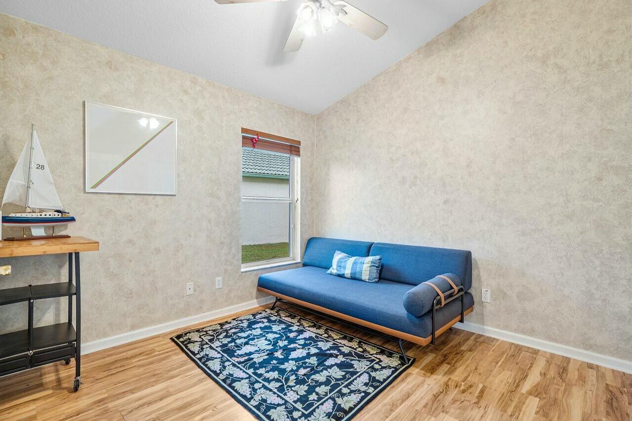 Open floor plan with high ceiling full of natural light. The gated community of Wellington's Edge has beautiful trails and is conveniently located near A-rated schools. Walking distance from the Wellington mall, restaurants, shopping and entertainment. This is the most desirable layout of the single story single family home in Wellington Edge with two large sliding glass doors, a large patio, separate laundry room and an oversized garage. Residents enjoy access to three swimming pools, tennis courts, a fitness center and a playground.