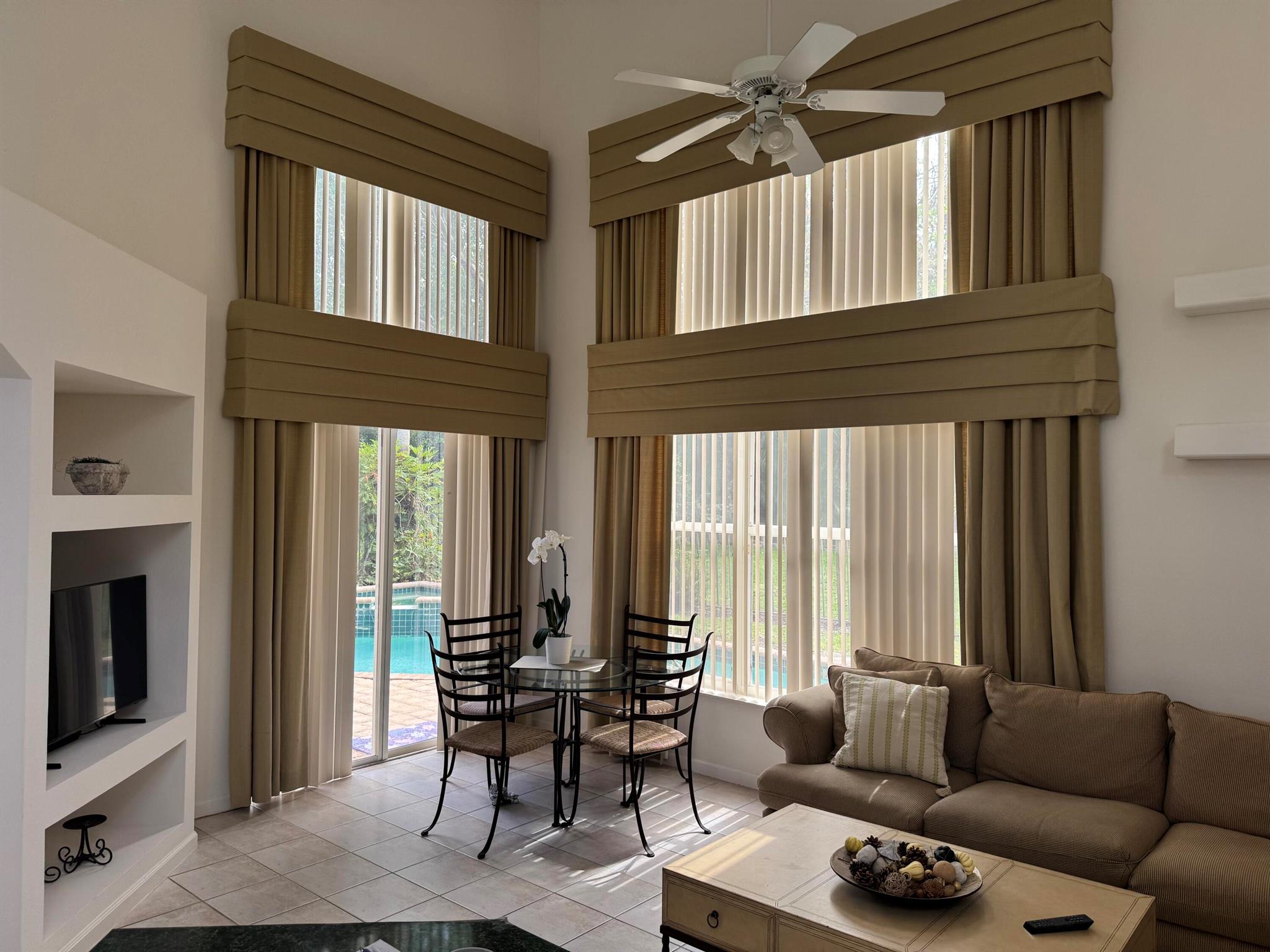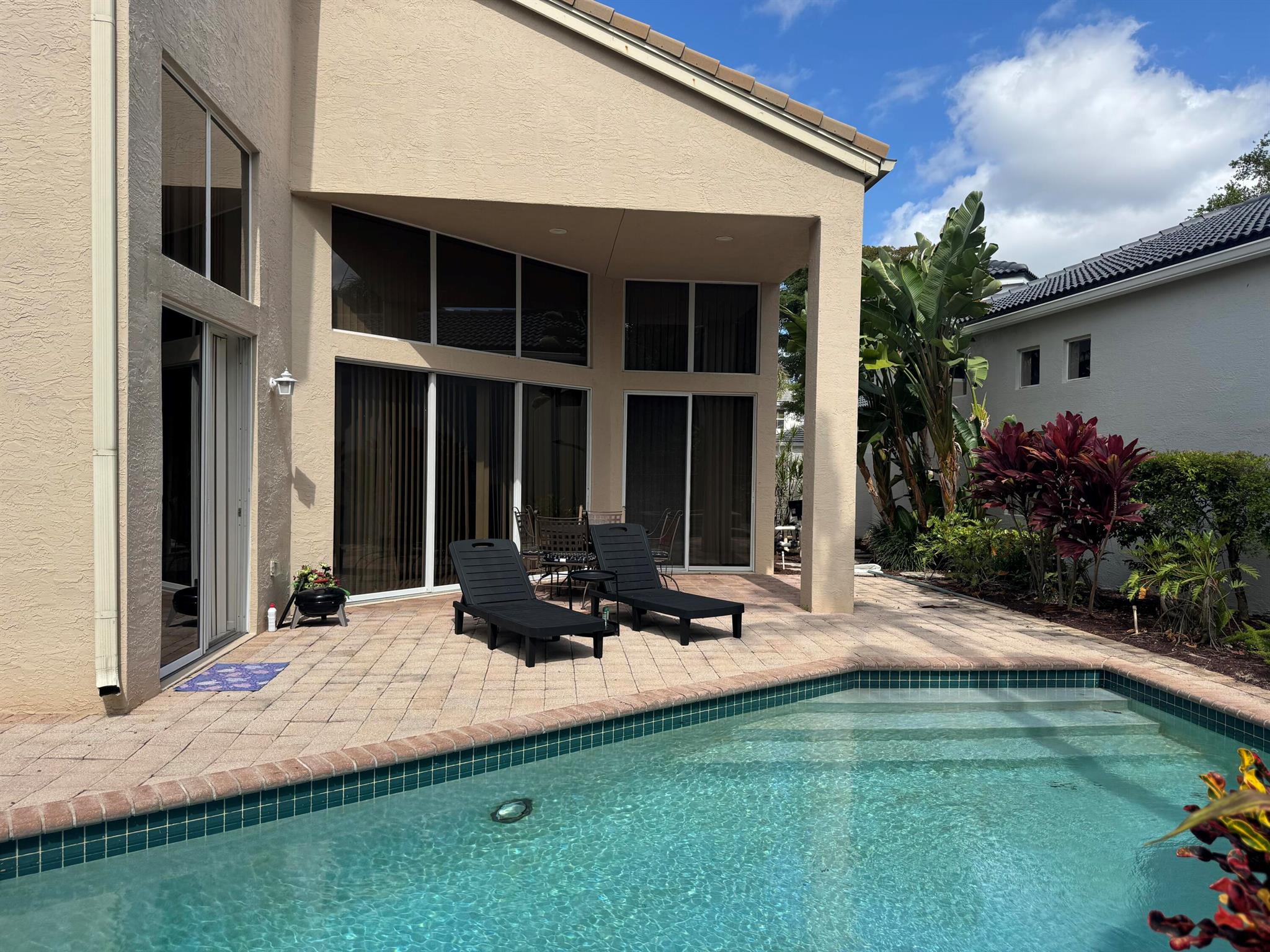 Spend the winter in paradise in 2026 and enjoy all the amenities BallenIsle has to offer. Property currently has a tennis membership, owner will upgrade to SPORTS with GOLF PRIVILEGES at owners expense. Primary retreat on MAIN LEVEL with KING SIZE BED along with one additional bedroom or home office on main level. Upstairs you will find 2 bedrooms and Jack and Jill bathroom plus loft area. Brand new luxury vinyl flooring in 2nd bedroom downstairs, stairway and upper level. Kitchen opens to family room overlooking private backyard with pool and spa. BallenIsle is a gated golf club with resort style amenities including tennis, pickle ball, card games, extensive social calendar, fitness center, multiple restaurants and so much more.