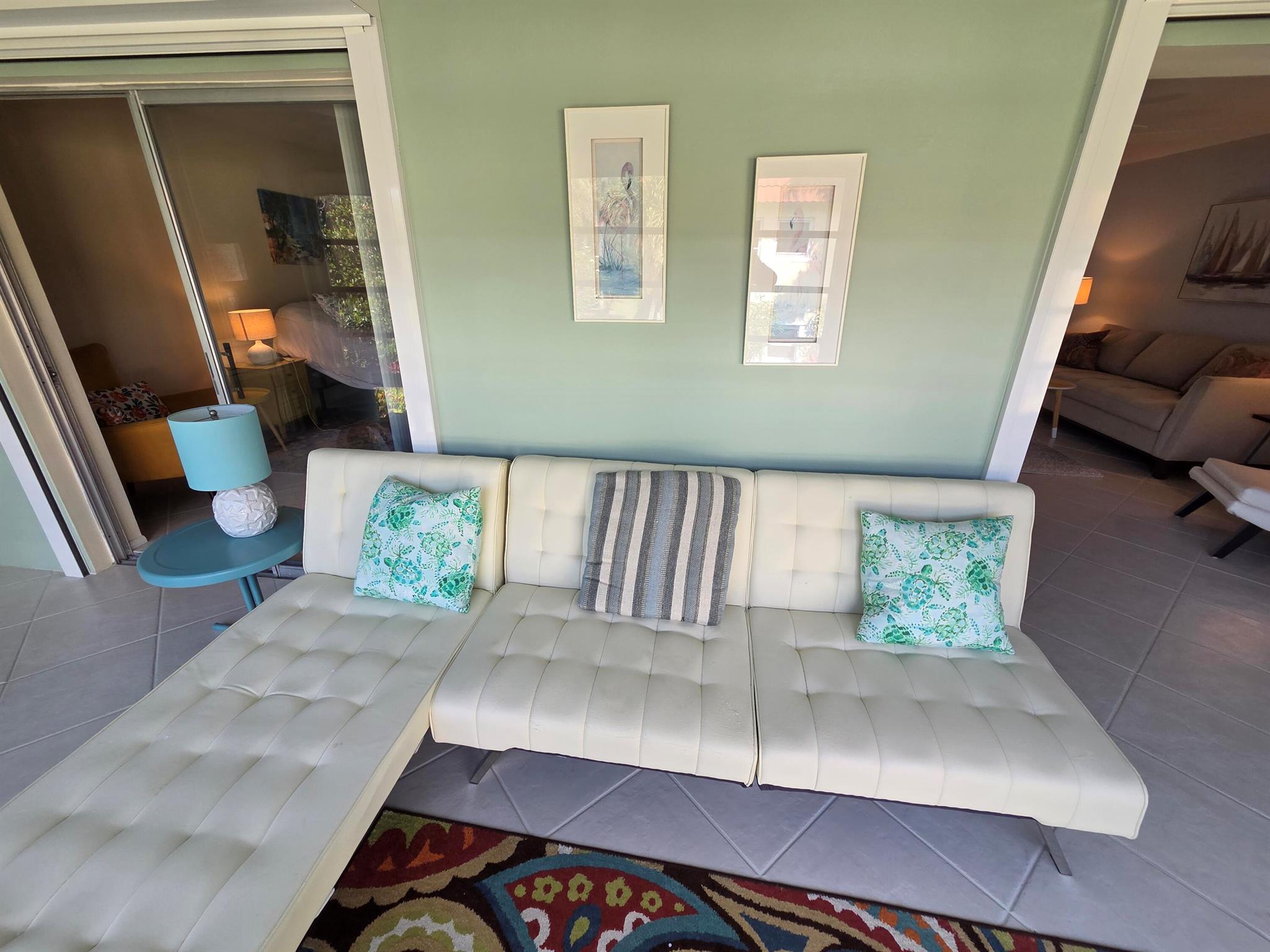 Completely remodeled and furnished (TURNKEY)2nd floor annual rental,just bring your toothbrush and fishing pole! Adjustable beds in both rooms with closet shelving and storage . Short walk to beach,restaurants,museum,jetty park and grocery.Quiet over 55 community with huge pool , clubhouse,pickle ball,shuffle board and activities. Boat dock access.