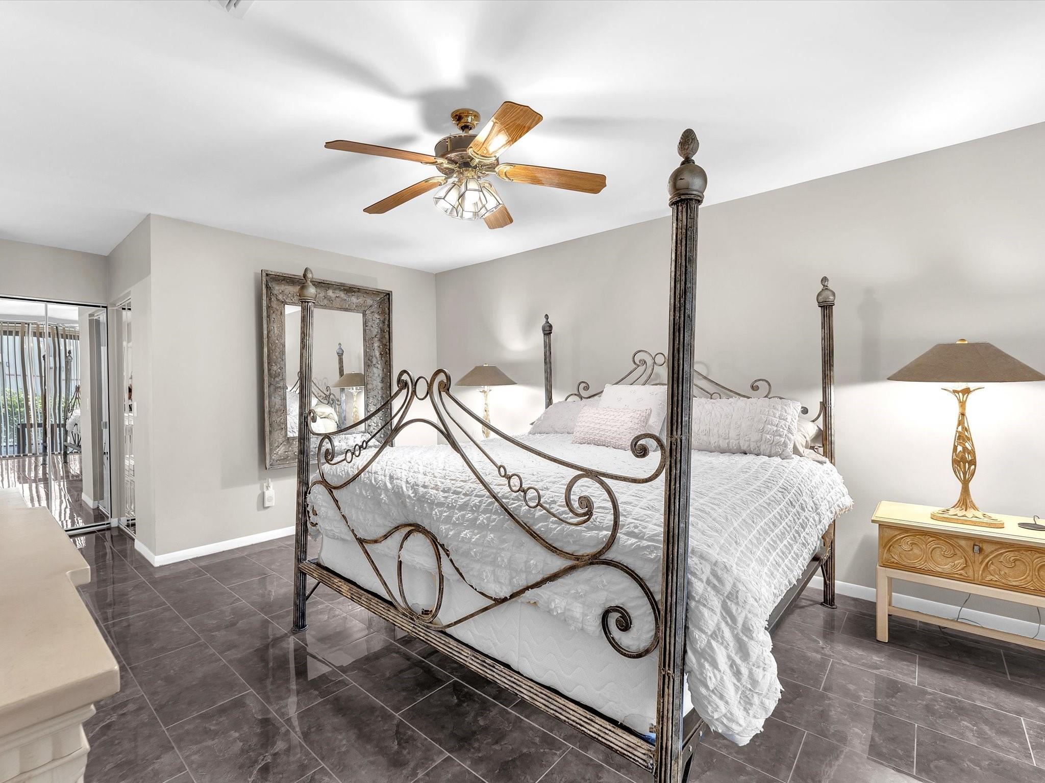 Immaculate 3 Bedroom/2 Bathroom FULLY FURNISHED Carrera Village condo in the beautiful Platina Community. Very spaciously designed, with 24x24 porcelain tile flooring throughout the main area of the Home. Eat-in Kitchen has wood cabinets & stainless steel appliances. Split floor plan, and Guest Bedrooms have use of a full Guest Bathroom with combo shower & tub. Full Dining and Living Room area with plenty of natural sunlight, as well as an enclosed Patio with washer & dryer. Large Main Bedroom has an en suite Bathroom with separate tub & shower. Screened Front Patio includes a storage closet. 24hr guard gate, with endless clubs & activities (See Attachments).