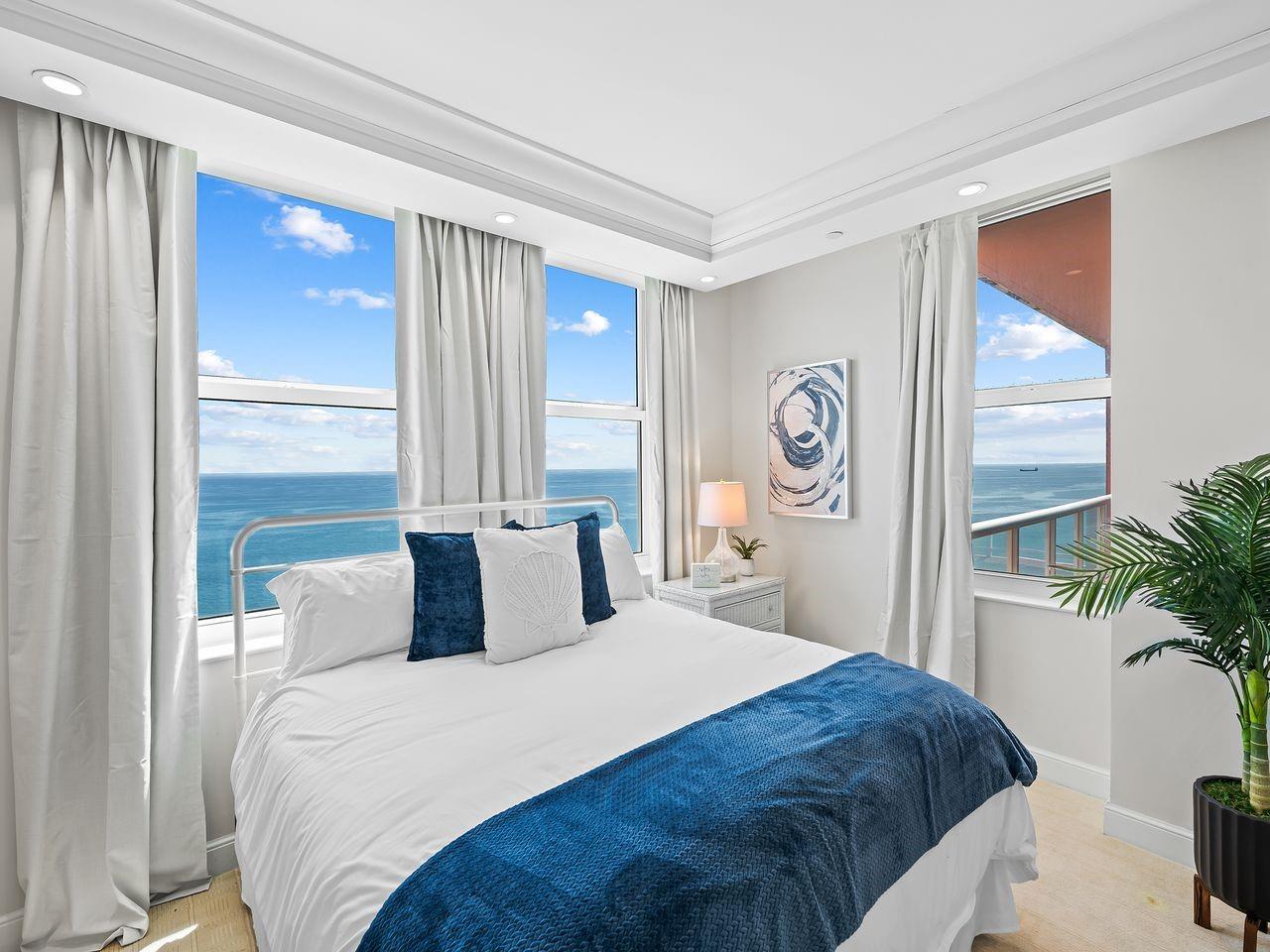 Owner will consider Annual or Seasonal rental. Gorgeous & Turnkey Luxury Oceanfront Residence at The Palms Fort Lauderdale Beach. Direct Ocean view from every room. Semi-private elevator with private foyer entry. Two wrap-around balconies. Beautifully furnished with three bedrooms. All 3 bedrooms have King size beds. Extra room with Office/work area. The Palms has resort amenities including Resort style pool with attendants, 450 feet of beachfront with chair/umbrella services and attendants, two story fitness center, indoor racquetball/basketball court, sauna, steam room, club room, lap pool, billiards room, valet parking, guard gated, doorman, and security. Easy walk to restaurants, attractions, new publix, and Birch State Park.