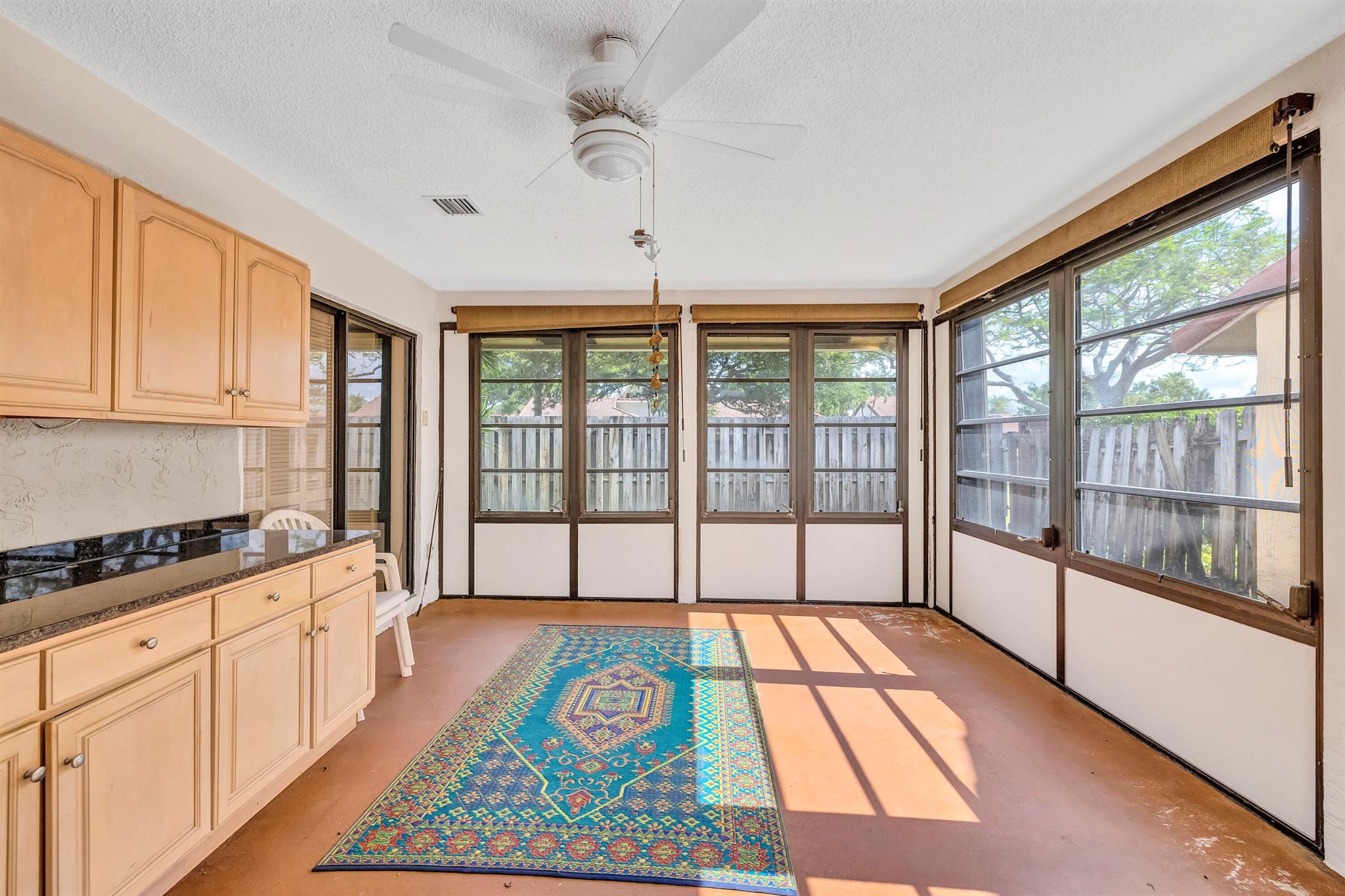 Renovated 3-bed, 2-bath home in pet-friendly Rainberry Lake! Features include a spacious primary suite with separate tub and shower, wood floors, a large kitchen with granite counters and stainless steel appliances.The bright air conditioned Florida room opens to a charming paver patio--perfect for outdoor entertaining. There's also a green space ideal for your pet. Just a short distance to the community pool!Community offers 2 pools, tennis, pickleball, and scenic trails with pet waste stations around a natural lake. Close to shopping, dining, medical facilities, and just a bike ride to world famous Atlantic Ave and the beach!This is South Florida living at its best--don't miss out!