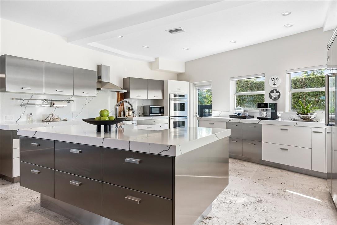 At this bespoke Coral Ridge waterfront estate, every detail is curated to make the most of every moment of each day. A privately gated home with two entrances, Bayview Drive and NE 24th Ct. Enjoy a west-facing courtyard, two verandas, a private dock with ocean access and no fixed bridges, a primary downstairs bedroom & 4 bedrooms upstairs, a grand living room, & a chef’s kitchen that is carefully laid out in a floor plan that allows for large gatherings as well as intimate corners for a book or quiet contemplation. The backyard faces southeast and offers long canal views. This is the perfect private oasis in the Bayview school district, just minutes from Fort Lauderdale Beach & Las Olas Blvd. Some furniture pieces are different from the pictures. Boat Seahunt 24 ft is included in the rent.