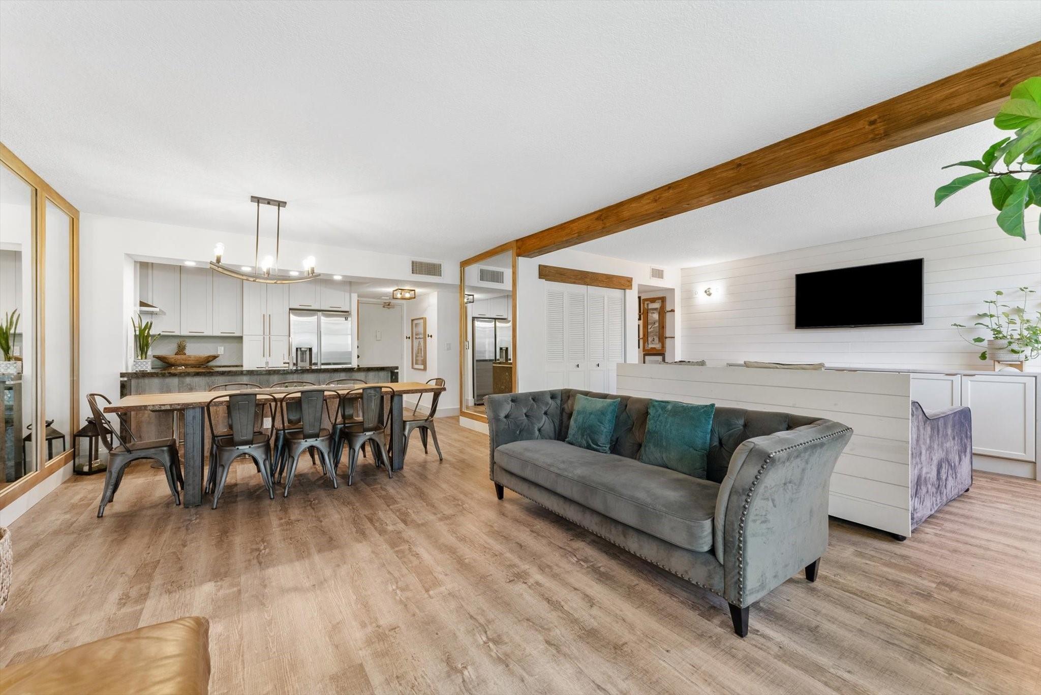 Step into effortless luxury in this fully furnished 1-bedroom, 2-bath boutique, oceanfront condo building in South Palm Beach. Originally a 2-bedroom, this reimagined layout offers an open-concept design perfect for entertaining, with flexible space. Completely renovated, the unit features a sleek kitchen with high-end finishes, custom cabinetry, and premium appliances. Both bathrooms are updated, and impact windows provide comfort. Enjoy direct beach access and resort-style amenities including a heated beachfront pool, gated garage parking, on-site management, fitness center, clubhouse, billiards room, BBQ area, and more. Minutes from Publix, fine dining, luxury resorts, and world-class golf. Refined Coastal Living Condo, Available now!