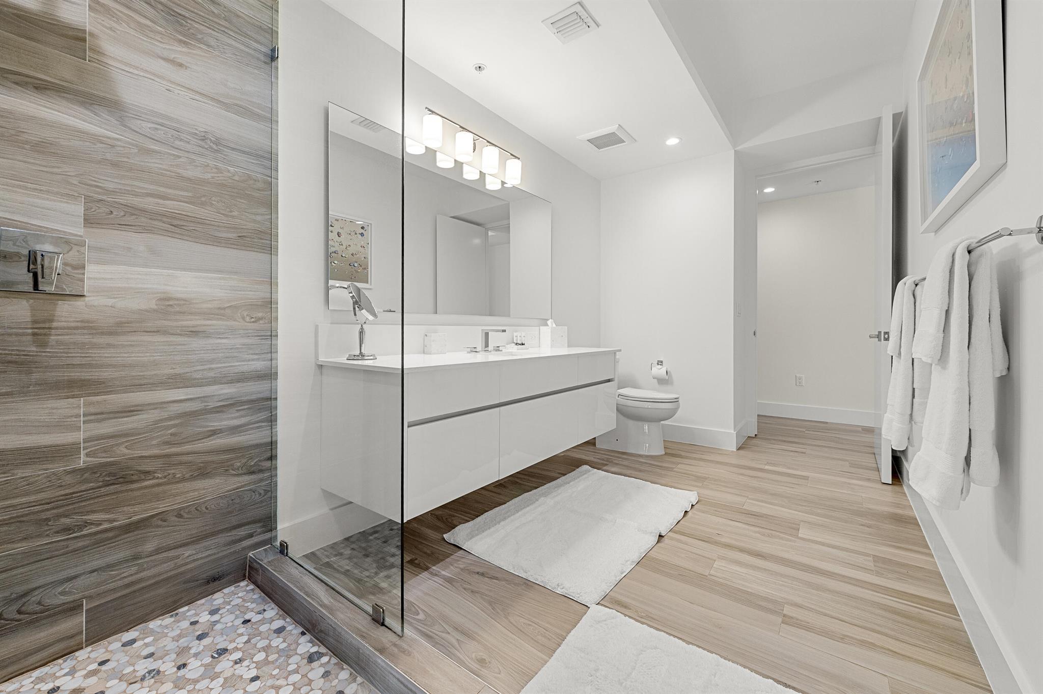 Upon entering this two bedroom + den residence directly via elevator, you welcomed with south facing views of the Palm Beach Inlet and Atlantic Ocean. Being on the first level, this condo lives like a villa just steps to the sand, and 15 min from PBI, Palm Beach and Jupiter. Enjoy morning sunrises and evening sunsets on the over-seized terrace, get some work done in the custom office built out in the den, and for the nights you decide to stay in, enjoy meals in the open concept gourmet kitchen. Built is 2017, Oceans Eighteen is a boutique modern development located in the charming beach town of Palm Beach Shores and offers residents under-ground parking, a pool and fitness center. 60 day min lease - please inquire for rates on longer terms. No Pets. Laundry in-unit.