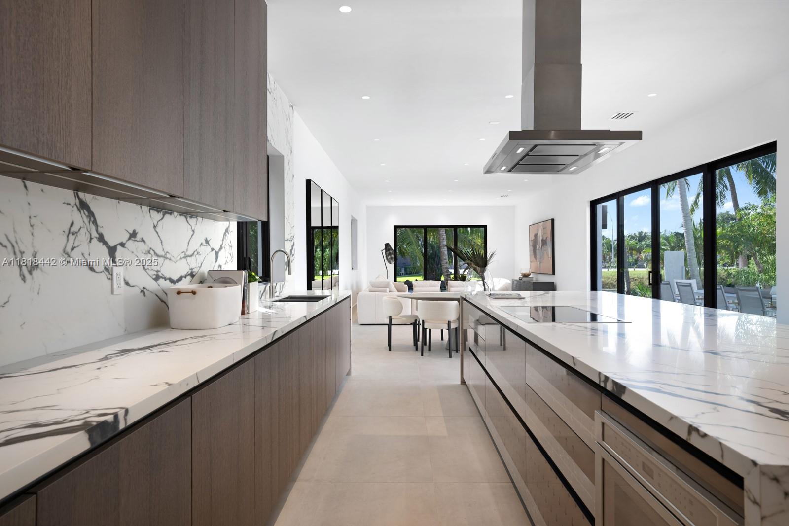 WATERFRONT BRAND NEW CONSTRUCTION STEPS FROM MIAMI COUNTRY DAY PRIVATE SCHOOL. A TROPICAL LUXURY ESTATE ON 20K+ LOT METICULOUSLY DESIGNED BY WORLD RENOWNED ARCHITECT KOBI KARP. SEAMLESS INDOOR/OUTDOOR LIVING ENCOMPASSING 5,775 SF 5 BEDROOMS PLUS OFFICE/DEN + 5 FULL BATH AND 2 HALF BATHS. MILLWORK BY ITALKRAFT WITH STUNNING MASTER CLOSET WITH GLASS DOOR SHOWCASES AND LED LIGHTING. OVERSIZED KITCHEN ISLAND WITH ALL GAGGENAU APPLIANCES INFINITY EDGE POOL + JACUZZI WITH CABANA BATH AND OUTDOOR SHOWER OVERLOOKING THE TRANQUIL 100 FT OF CANAL FRONTAGE WITH DUCKS AND TURTLES. TWO LARGE PRIMARY SUITES AND SECOND FLOOR BALCONY WITH BOOK MATCHED STONE IN BATHROOMS. DRAMATIC CEILING HEIGHTS THROUGHOUT WITH VAST LIVING AREAS. EXPERT LANDSCAPING WITH IRRIGATION SYSTEM AND EXPANSIVE DRIVEWAY.