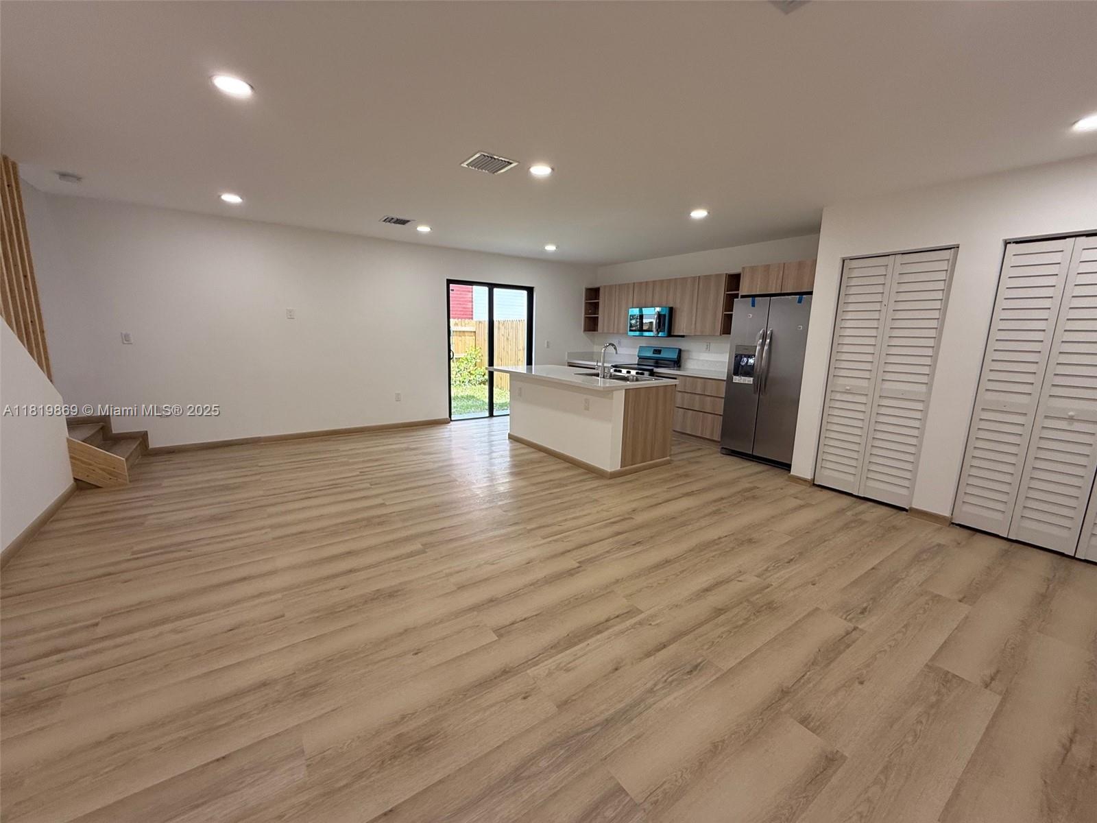 Beautiful New Construction Townhome in Florida City! Be the first to live in this stunning, spacious two-story townhome offering modern design & comfort throughout. Enjoy open-concept living areas with gorgeous oak-colored laminate flooring that flows seamlessly from room to room. The stylish kitchen features stainless steel appliances, white cabinetry, and sleek quartz countertops, perfectly positioned to overlook the inviting living spaces—ideal for everyday living & entertaining. Step outside to a cozy private patio, perfect for gatherings with friends or simply relaxing. This home offers 4 generously sized bedrooms and 3 full bathrooms, providing ample space for family or guests. Additional highlights include impact windows throughout & the convenience of an in-unit washer and dryer.
