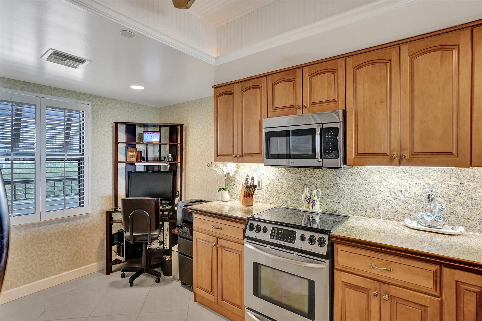 Wake Up to Panoramic Intracoastal Views & Coastal Luxury Living! Step into this beautifully updated residence and enjoy stunning panoramic views of the Intracoastal Waterway, stretching east to Singer Island & the Ocean. Watch boats drift by and golfers play from your expansive 29 ft. patio, complete with floor-to-ceiling sliding glass doors that bring the outdoors in. Hurricane/Shade Screens w/remote controls offer premium protection without sacrificing the view. Inside, the unit has been thoughtfully upgraded for style and comfort. Brand new luxury vinyl wood flooring in both bedrooms, perfectly complementing the neutral 20'' diagonal tile that flows through the main living & dining areas. The modern kitchen features stainless steel appliances, granite countertops & an open layout. More
