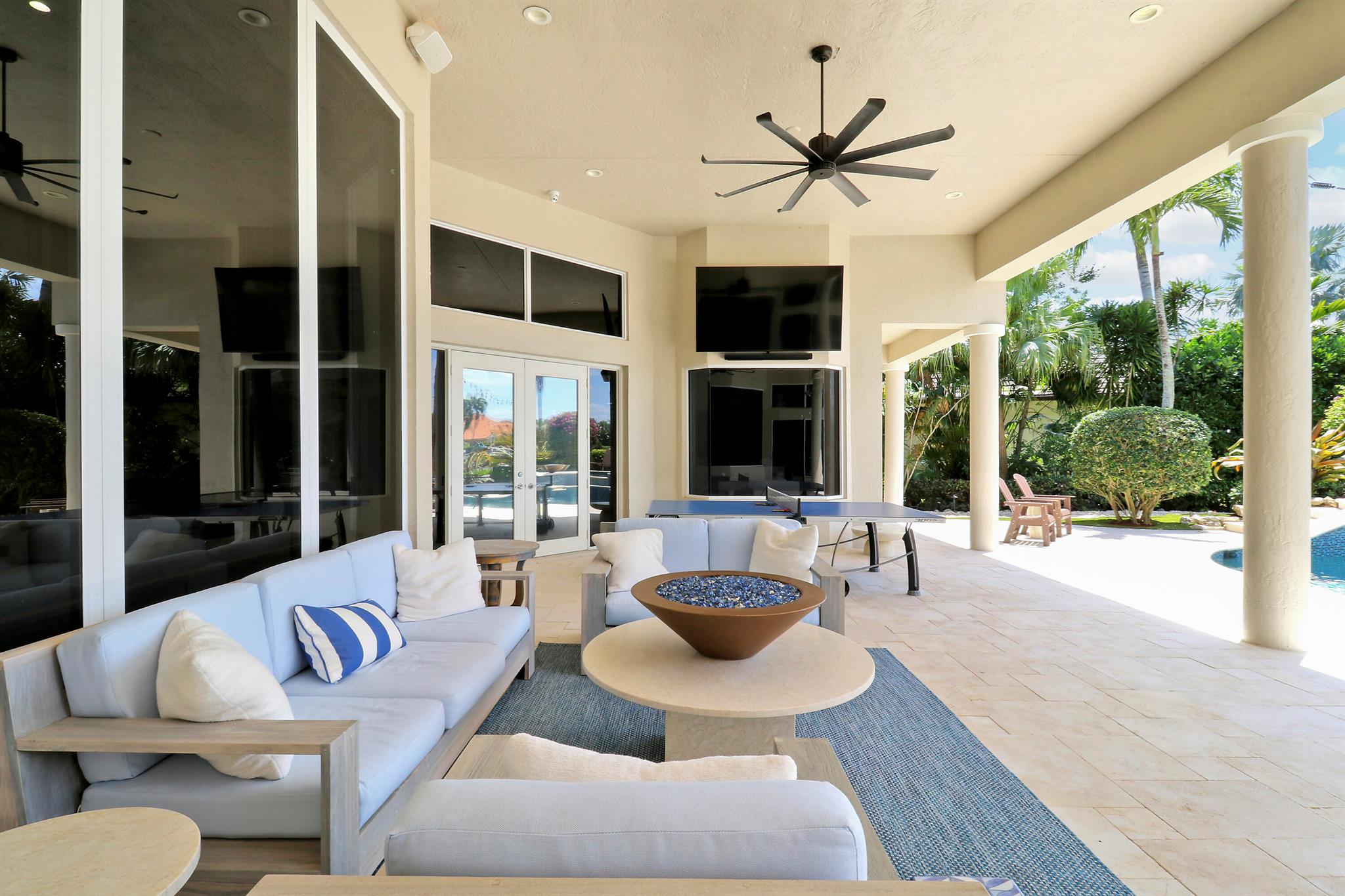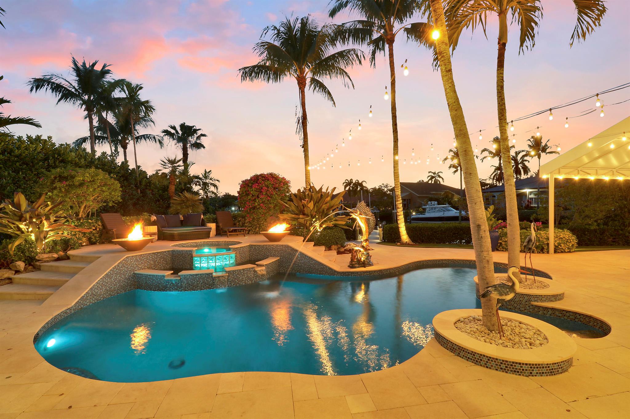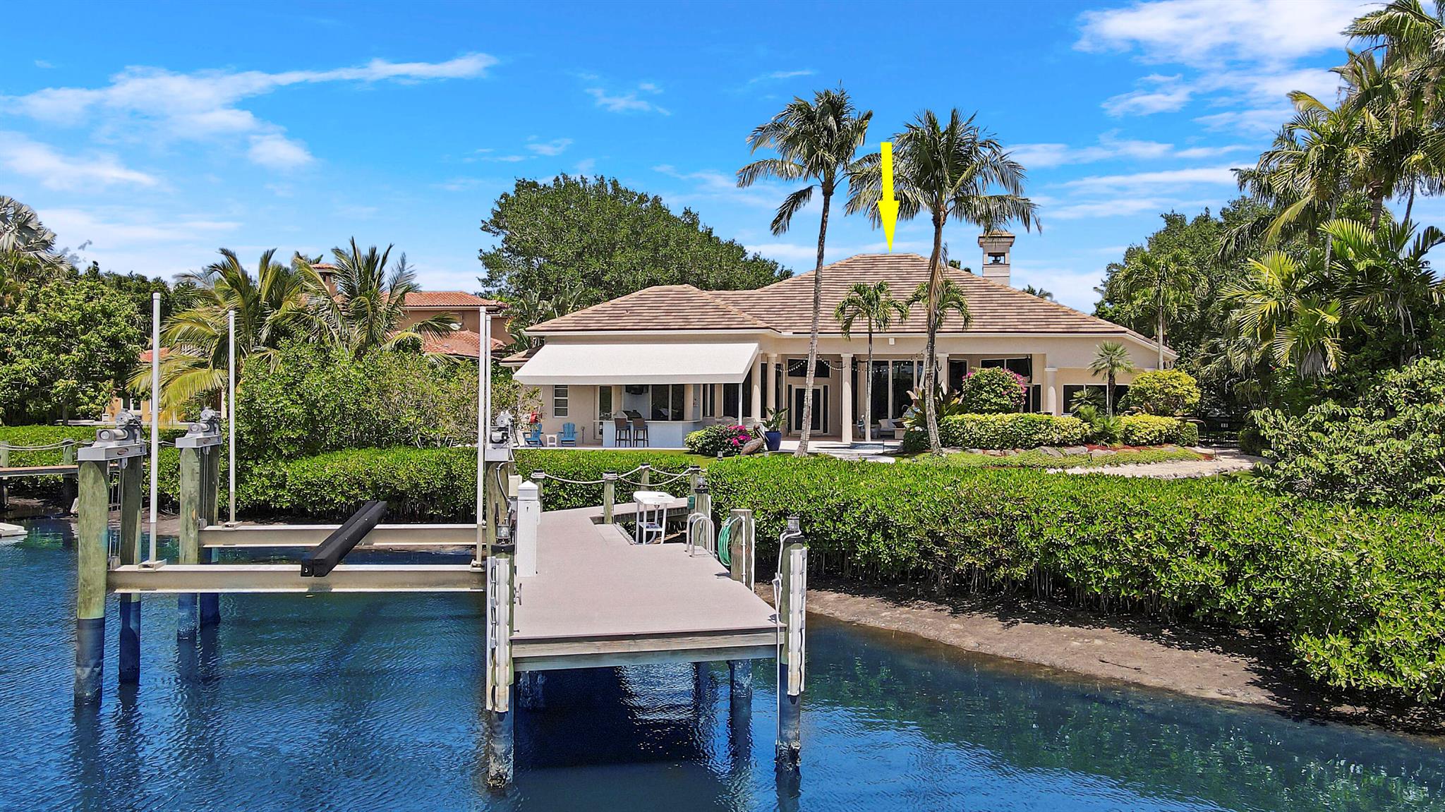 AVAILABLE for Remainder of 2025! Embrace the ultimate waterfront lifestyle in this exquisite 4,336 sq. ft. home, offering over 100 feet of prime Loxahatchee River frontage & direct access to the Atlantic Ocean within just 15 minutes. This stunning property, set on 2/3 of an acre, features 4 bedrooms, 5 bathrooms, and an array of luxurious amenities designed for both comfort and elegance. Step outside and discover unmatched outdoor living with gorgeous gas fire features in the backyard, creating the perfect ambiance for evening gatherings. The property boasts a recently built dock with a 40,000-pound boat lift, a heated spa and pool, and an expansive outdoor kitchen--ideal for hosting. Immaculate landscaping includes a turf yard, a four-hole putting green, & plenty of space for entertaining