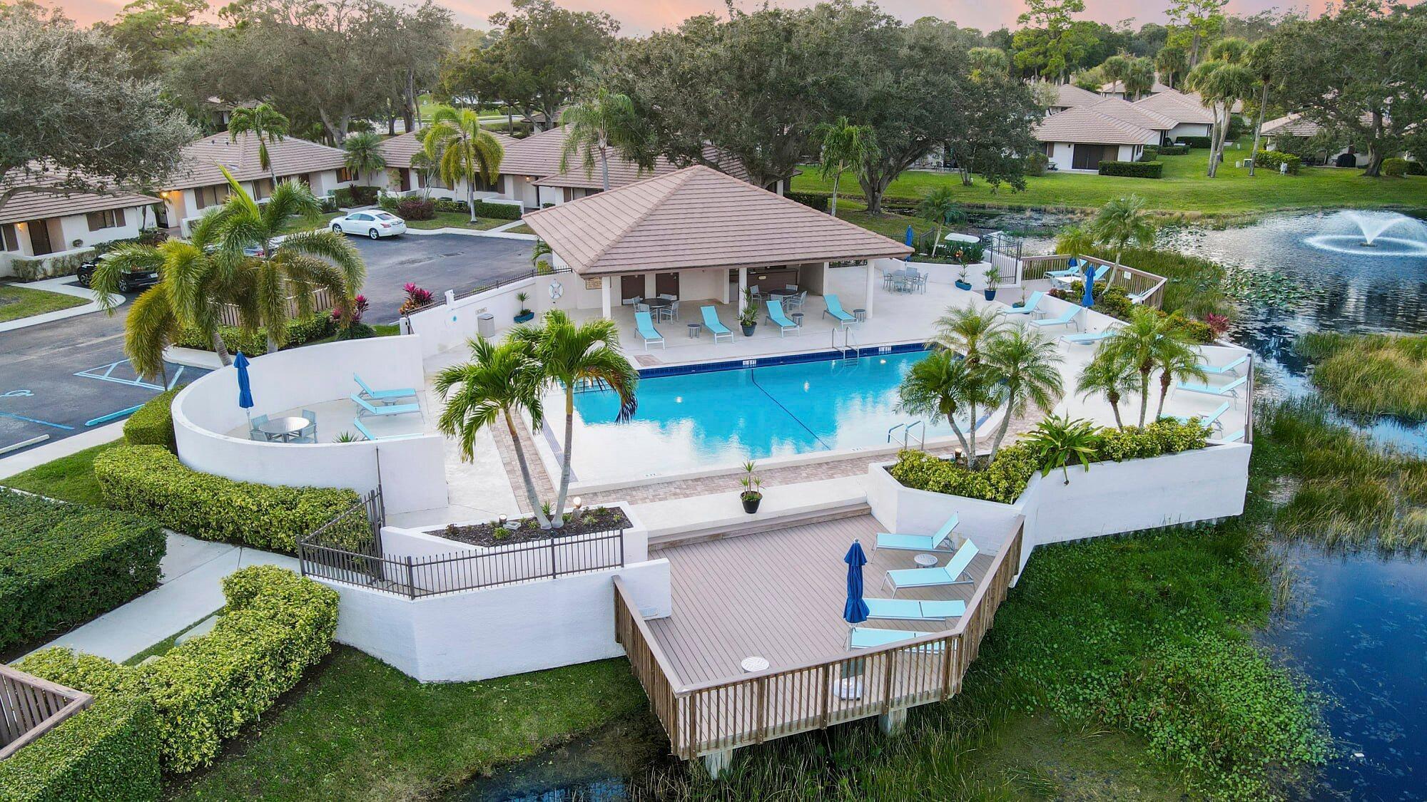 Wow! Available Now for 2026 Season. Perfectly renovated, very private Club Cottage with wood flooring throughout. Soaring ceilings. All the comforts of a single family home. Awesome location! Walk to the Club Cottage Pool and Pavilion. Cross the Cottage Bridge to the PGA Resort, Spa and Restaurants. The Mirasol/Publix shopping center is across from the PGA National entrance. World-class shopping and dining around the corner and down the street in the Gardens Mall. Electric; WIFI and Basic Cable Included. A King bed in the primary and two queen beds in the guest room. Private back patio with a grill. Overlooking a waterway that attracts beautiful, tropical birds. Surrounded by lush, mature landscaping. Miles of walking paths that begin at your front door. PBI Airport in 20 minutes!