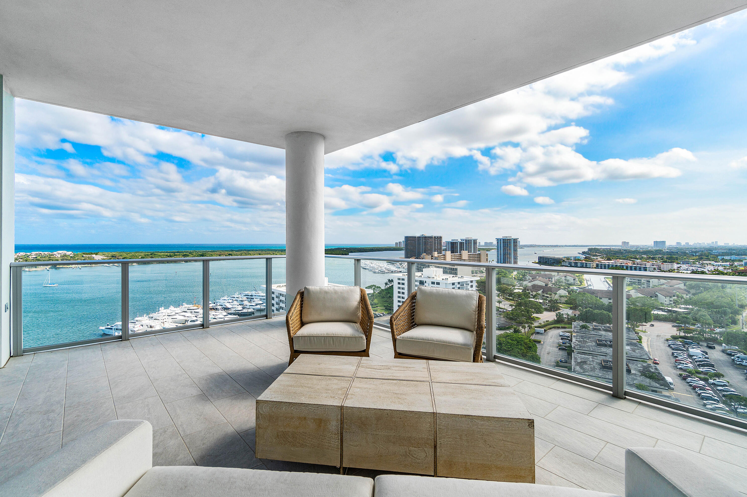 FULLY FURNISHED RENTAL IN THE SKY. Exquisite 18th Floor Residence in the Sky in The Palm Beaches. Introducing the stunning 3 Water Club Way, an exceptional opportunity to own Encore's most desirable Sapphire Floor Plan with captivating Southern Exposure. This luxurious 3-bedroom, 3.5-bathroom residence plus den/office offers the perfect blend of elegance and comfort with just over 2900 Sq Ft under air. As you enter, you are greeted by high ceilings and an inviting private foyer that opens directly into the residence. The chef's gourmet kitchen features top-of-the-line appliances and ample space for culinary creativity, making it the perfect hub for entertaining.