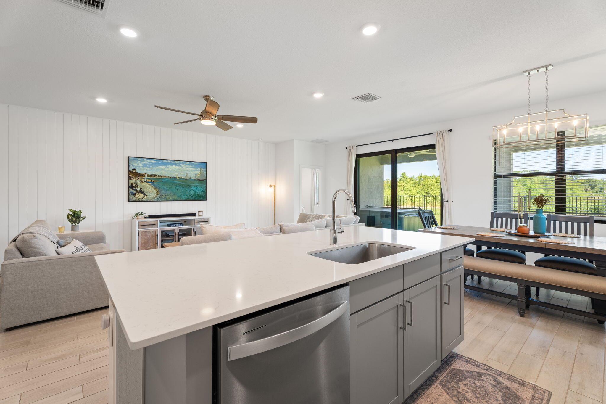 Now available for rent--this 2024-built 4-bedroom, 2-bath home is located in a gated community with a pool and cabana, and includes landscaping in the rent. With over 2,000 sq/ft of living space, it features impact glass, custom trim work including shiplap accents, and a spacious, open layout perfect for comfortable living. Enjoy incredible lake views from the fully fenced backyard.Move-in ready and easy to show. First, last, and security required at move-in.Refrigerator currently in the home does not convey. The original fridge that came with the house (now located in the garage) will be reinstalled in kitchen prior to move-in.
